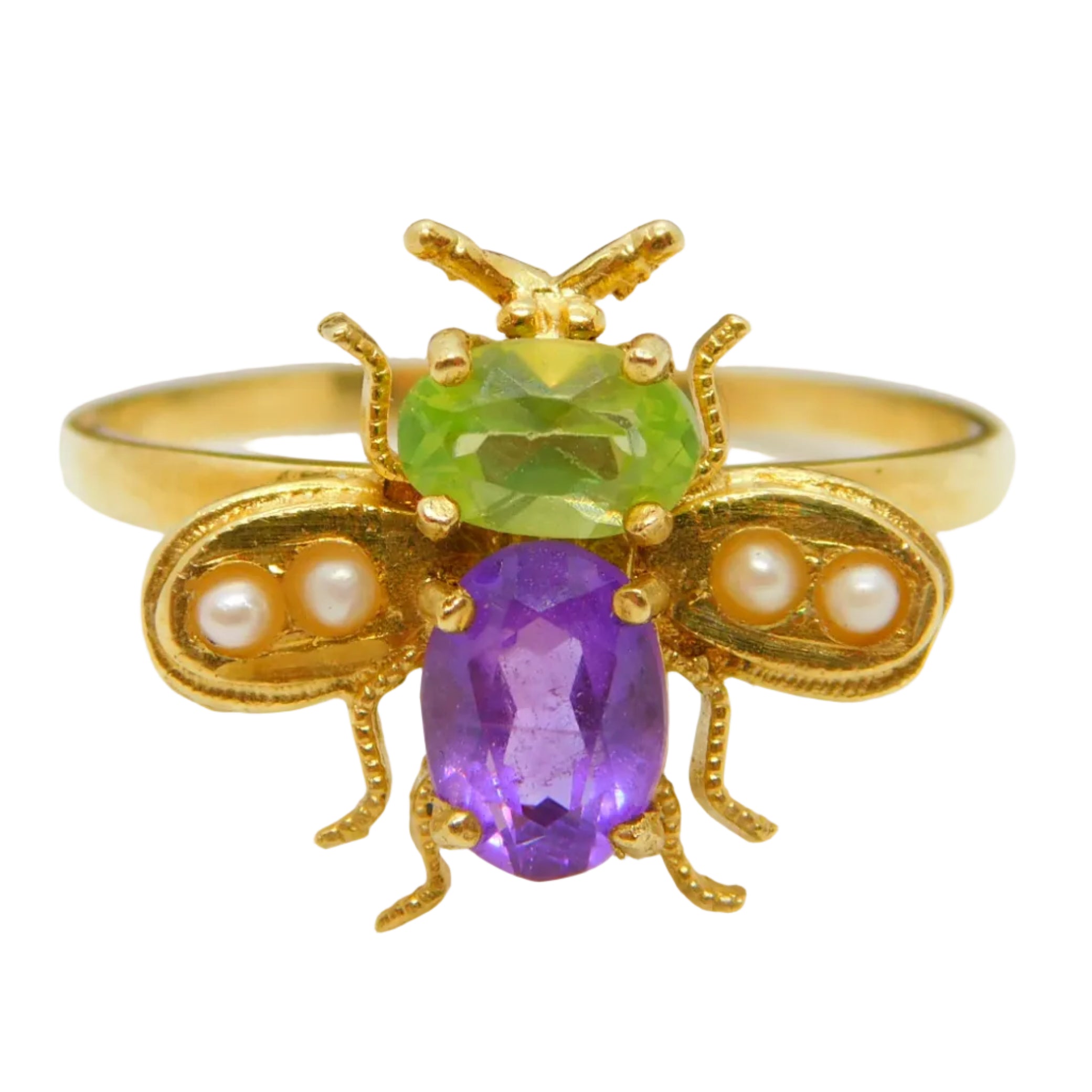 Edwardian Style Sterling Silver Gilt Peridot Amethyst Suffragette Bug Band Ring