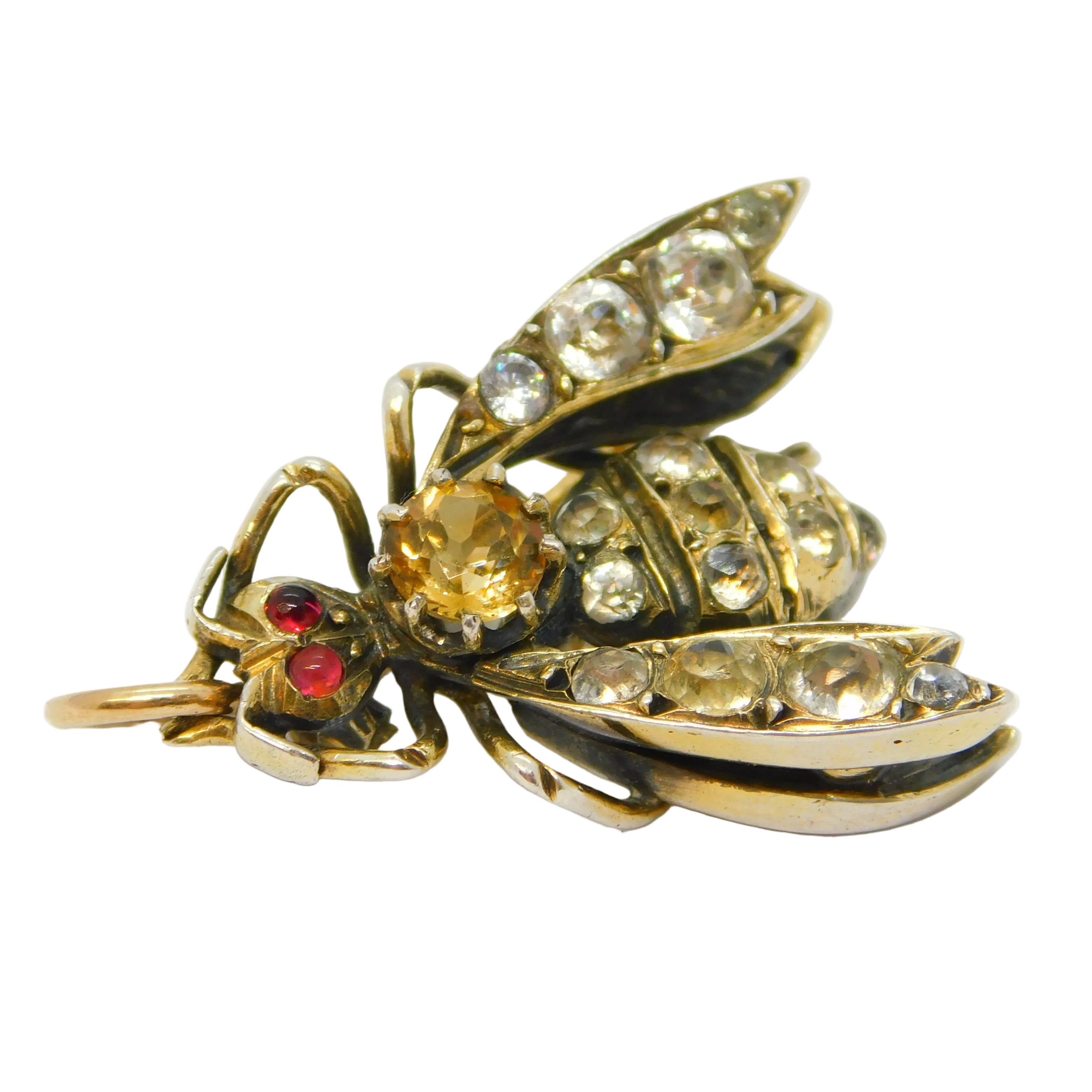 Victorian Sterling Silver Gilt, Paste, Citrine, Garnet Fly Bug Pendant Antique