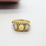 9ct Yellow Gold, Water Opal & White Spinel Victorian Style Boat Ring 1962