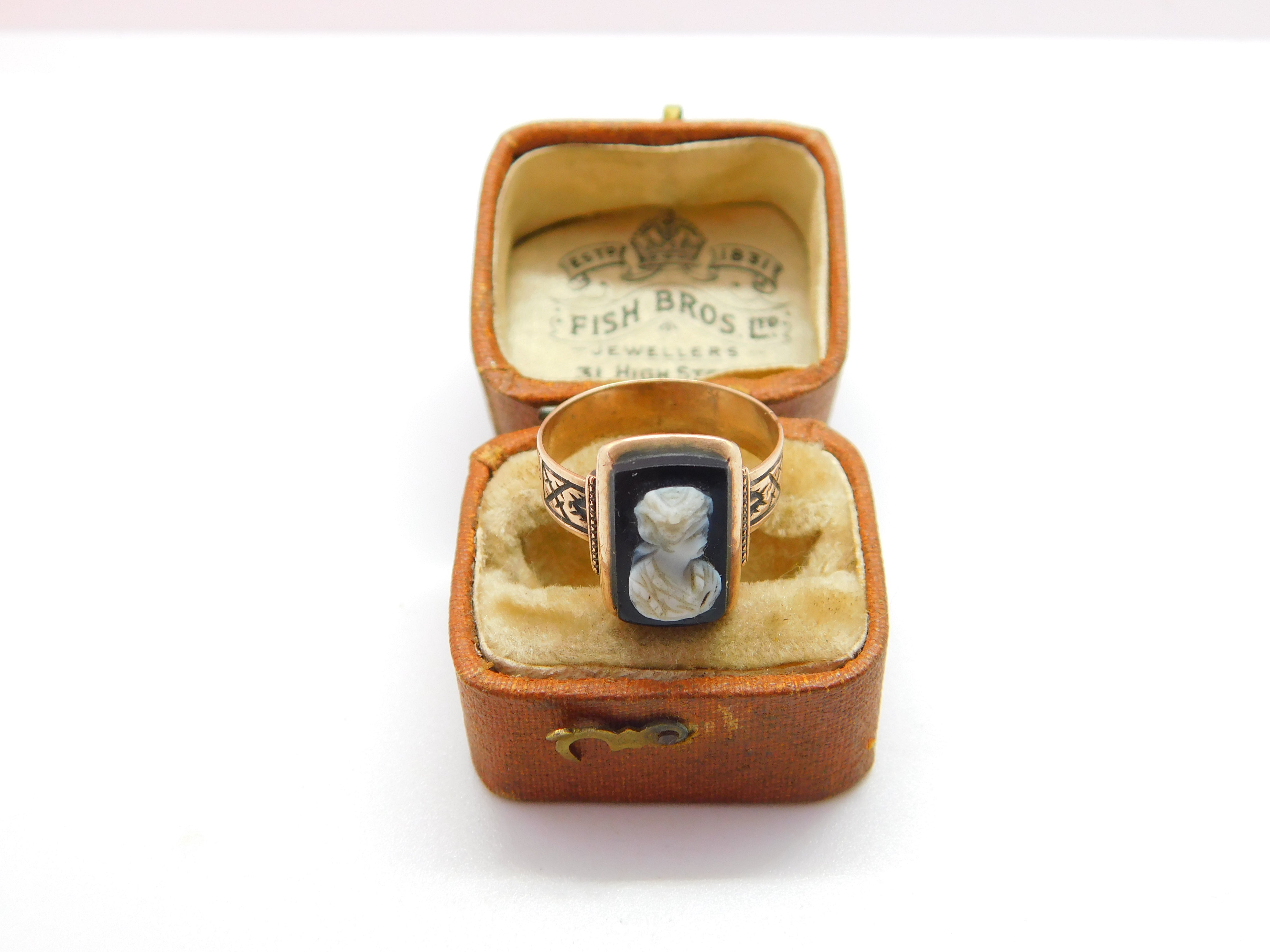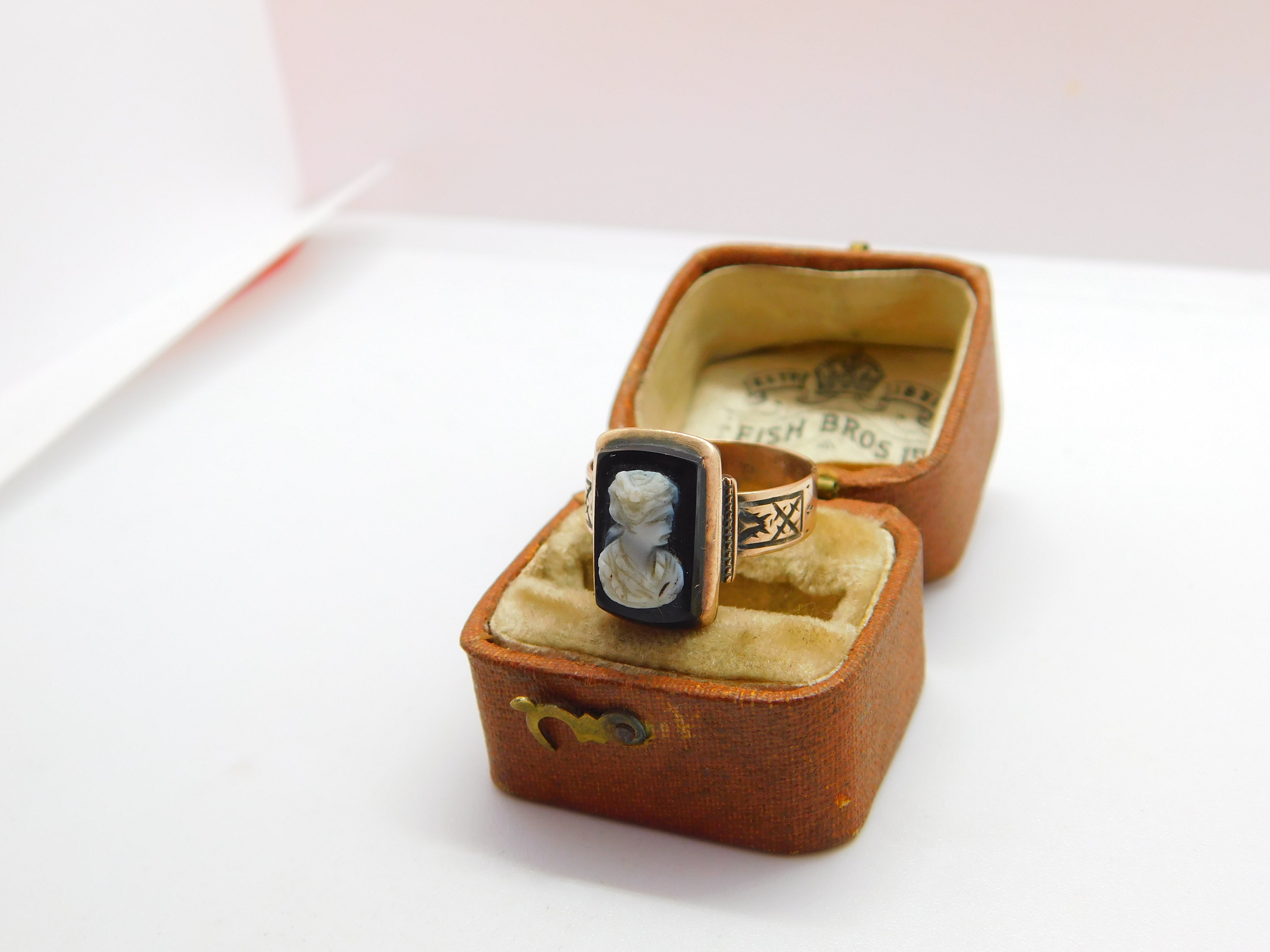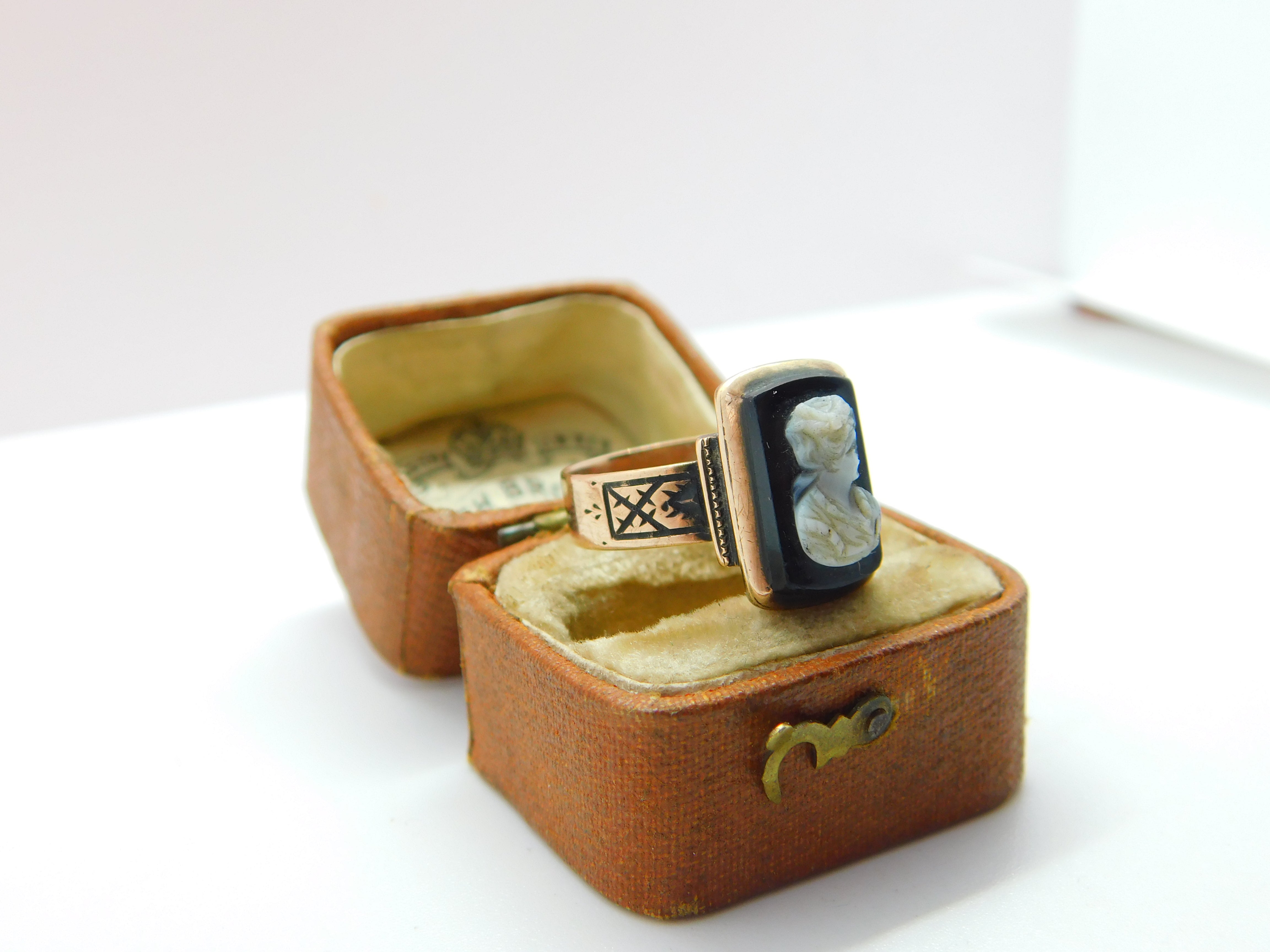 Details: A fantastic and wonderfully designed antique Victorian 14ct rose gold and carved jet cameo mourning ring with charming detailing throughout including floral shoulders c1850. The gold has been XRF tested as it is unmarked. This is a wonderful item that would make a perfect gift or addition to any collection. The BOX pictured is for PRESENTATION ONLY and is NOT included in the listings but used to frame the pictures unless specifically stated otherwise.