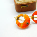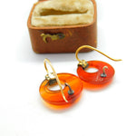 Early Victorian 14ct Yellow Gold Carved Carnelian Disc Hook Earrings c1850