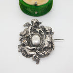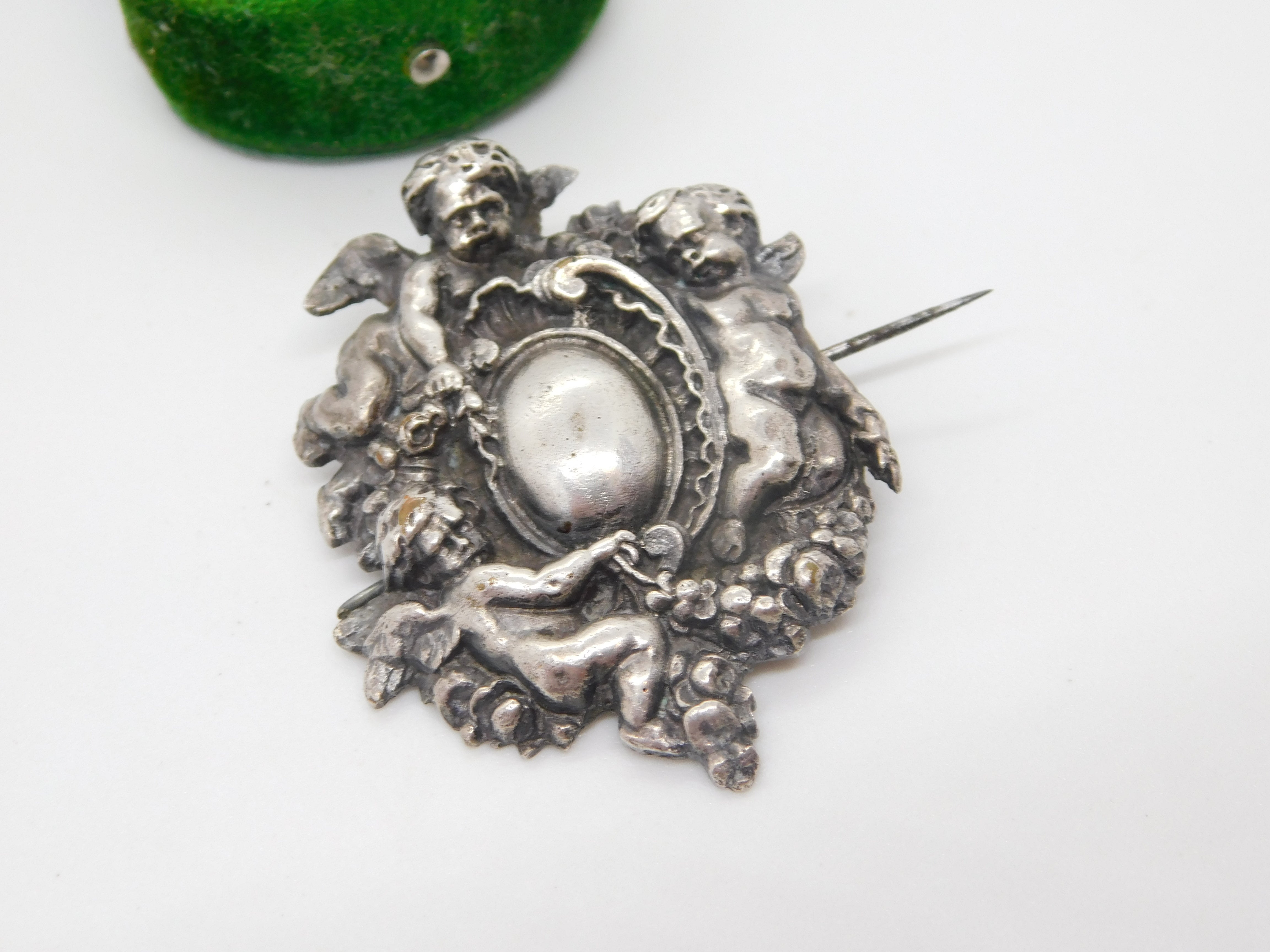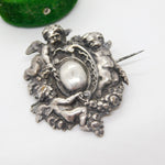 Early Victorian Cast Sterling Silver Neo-Classical Cherub Brooch c1840 Antique