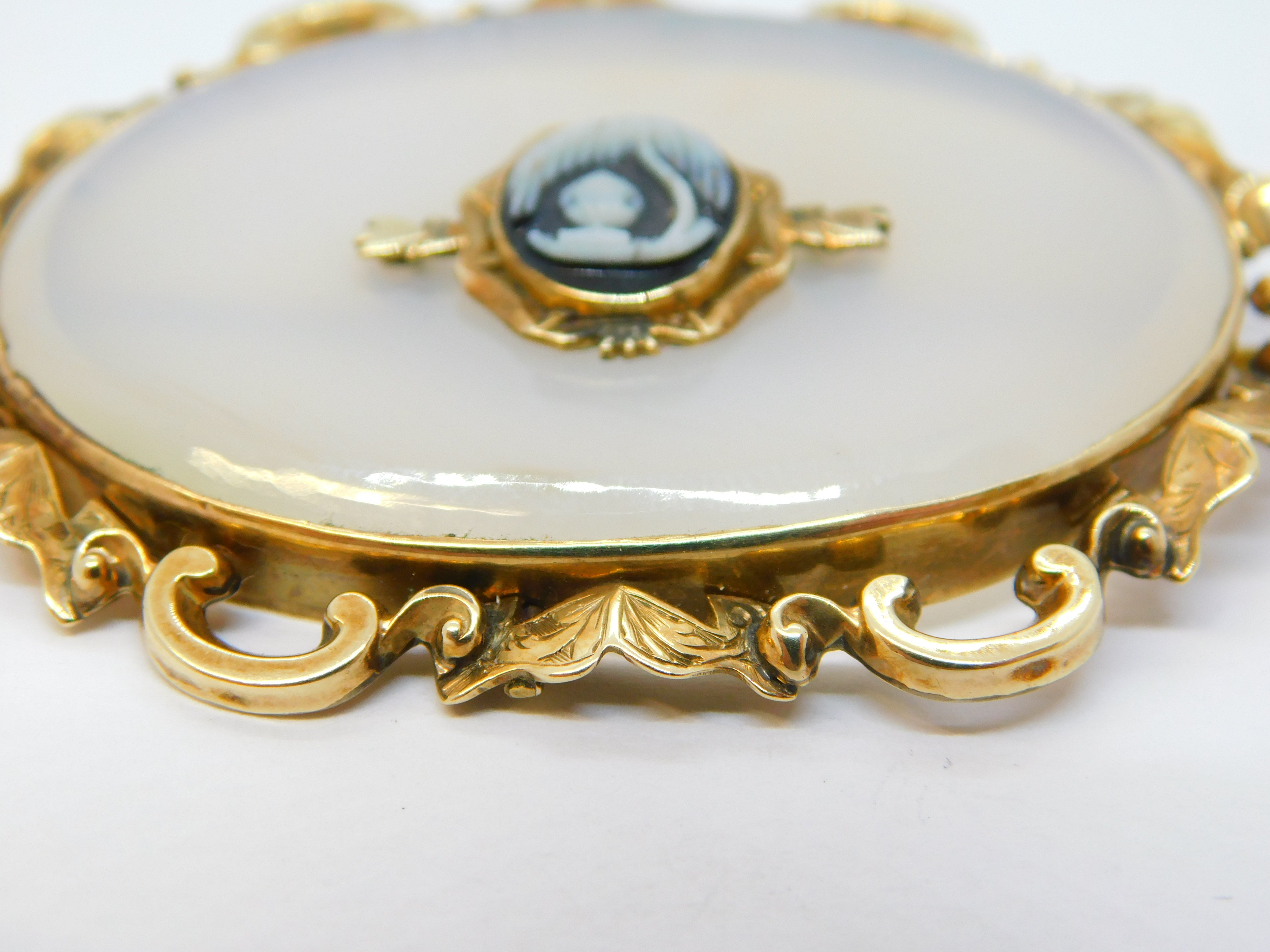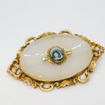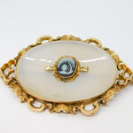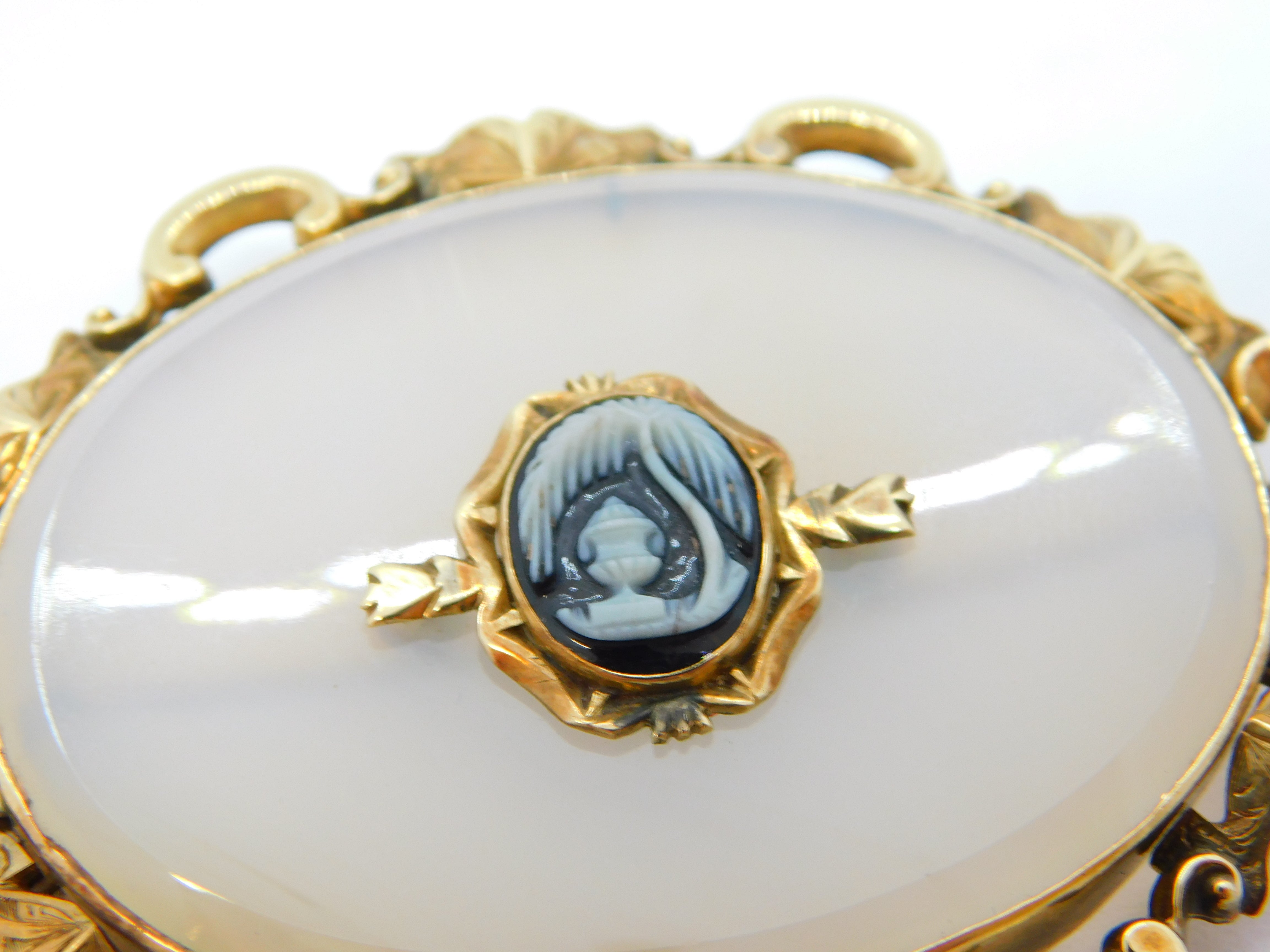 Victorian 15ct Gold, Chalcedony Agate & Hardstone Urn Mourning Brooch Antique c1860