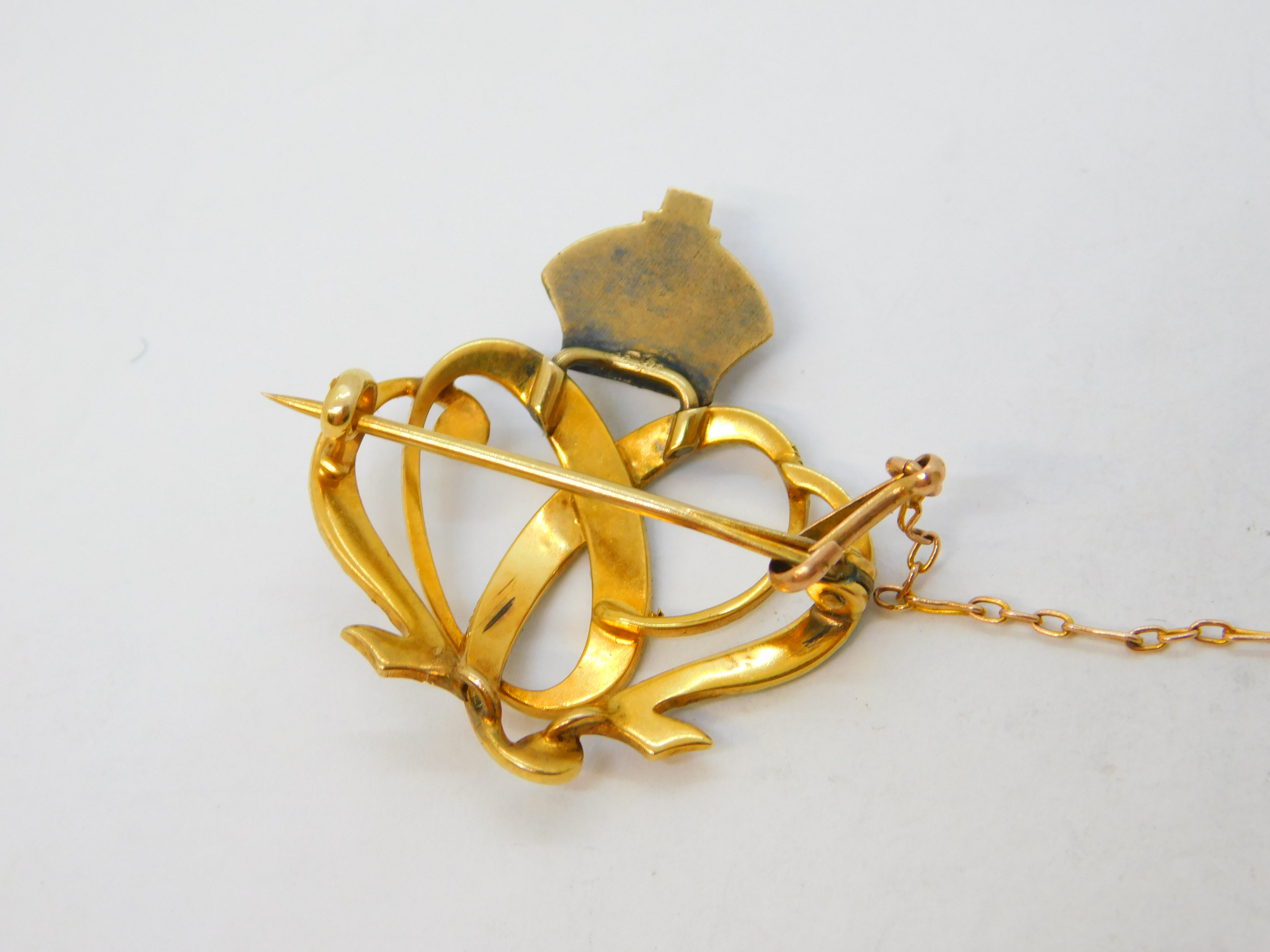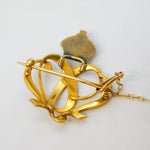 Victorian 15ct Gold, Enamel, Seed Pearl & Turquoise Sweetheart Brooch Antique