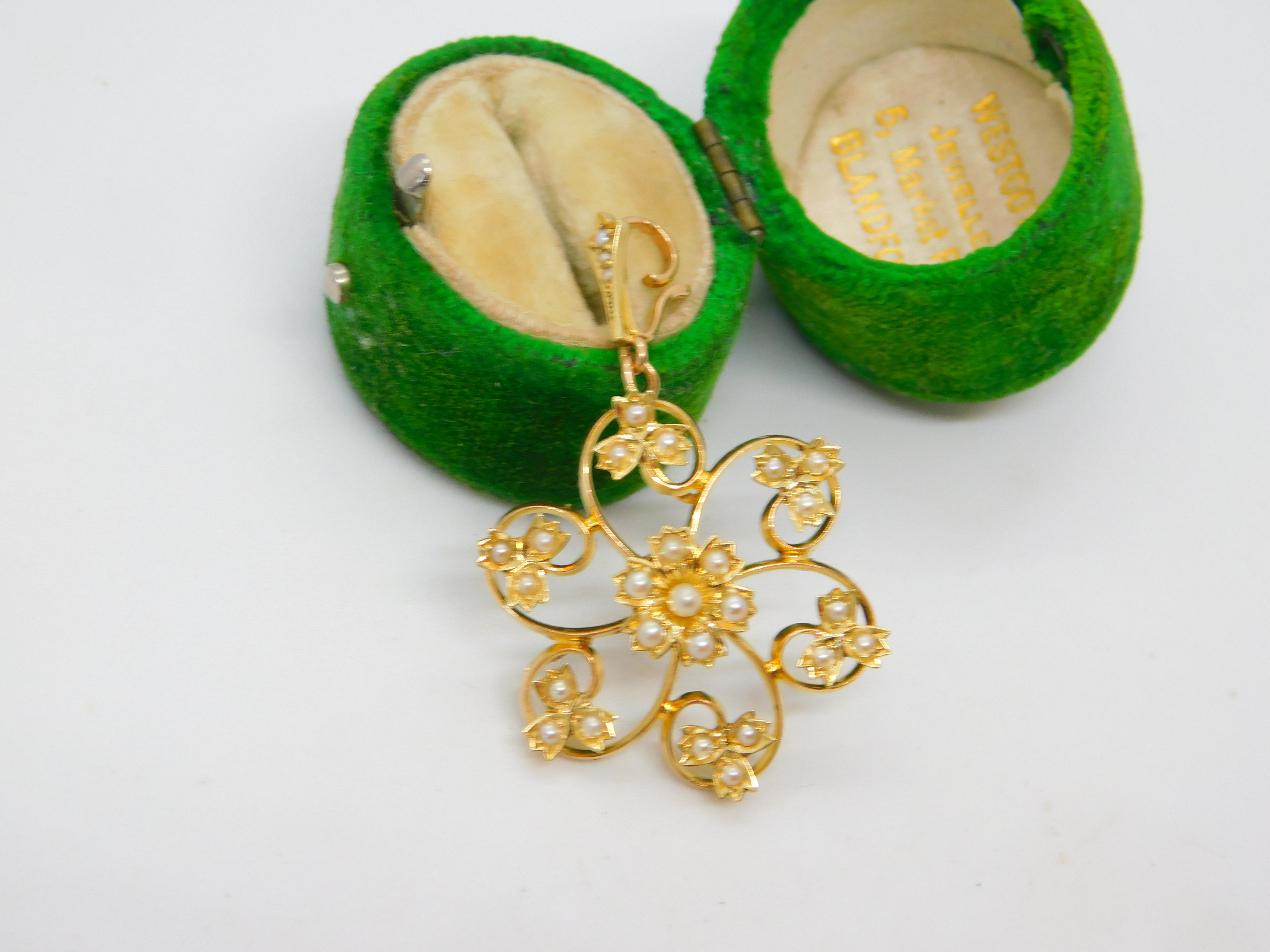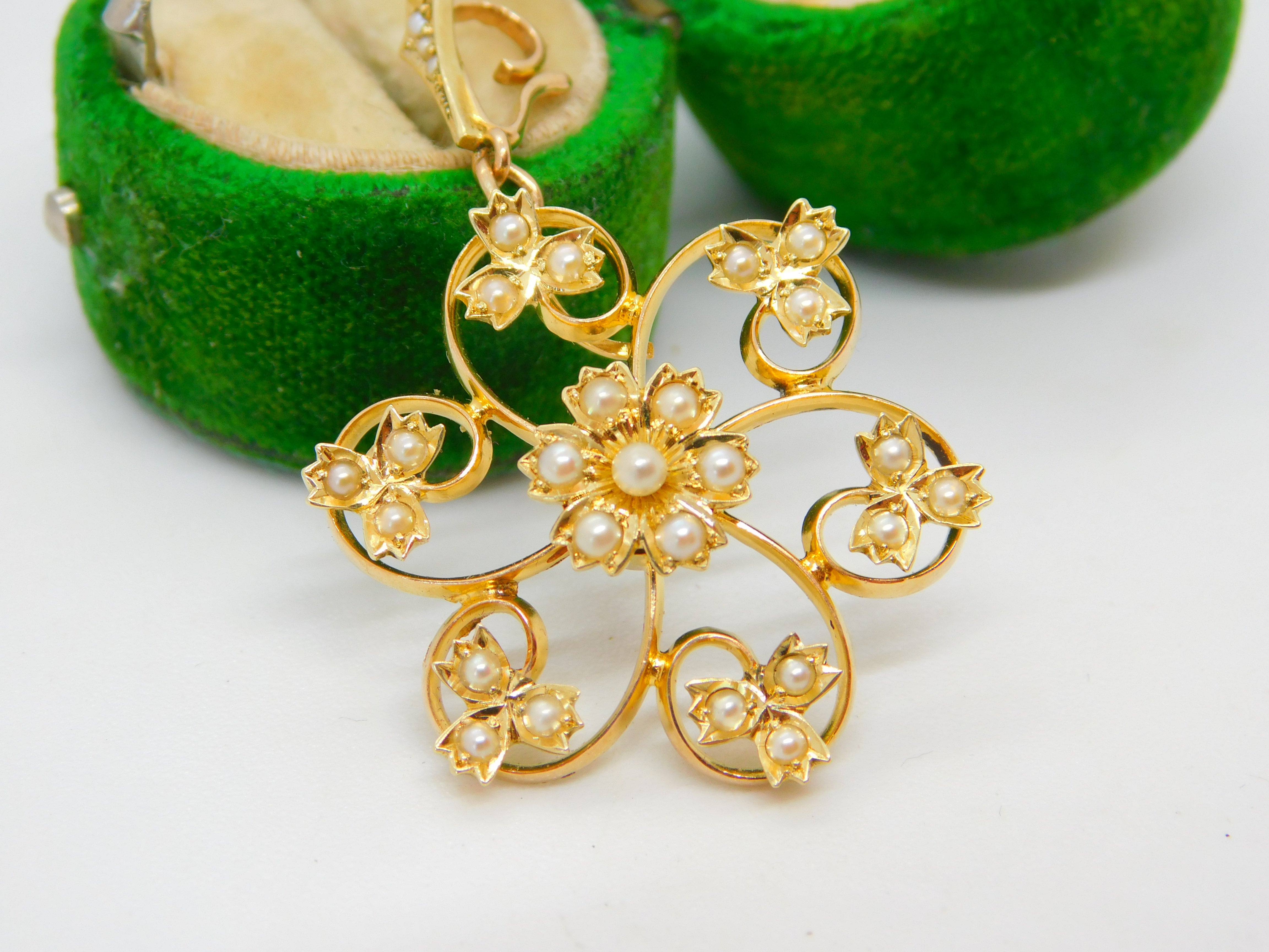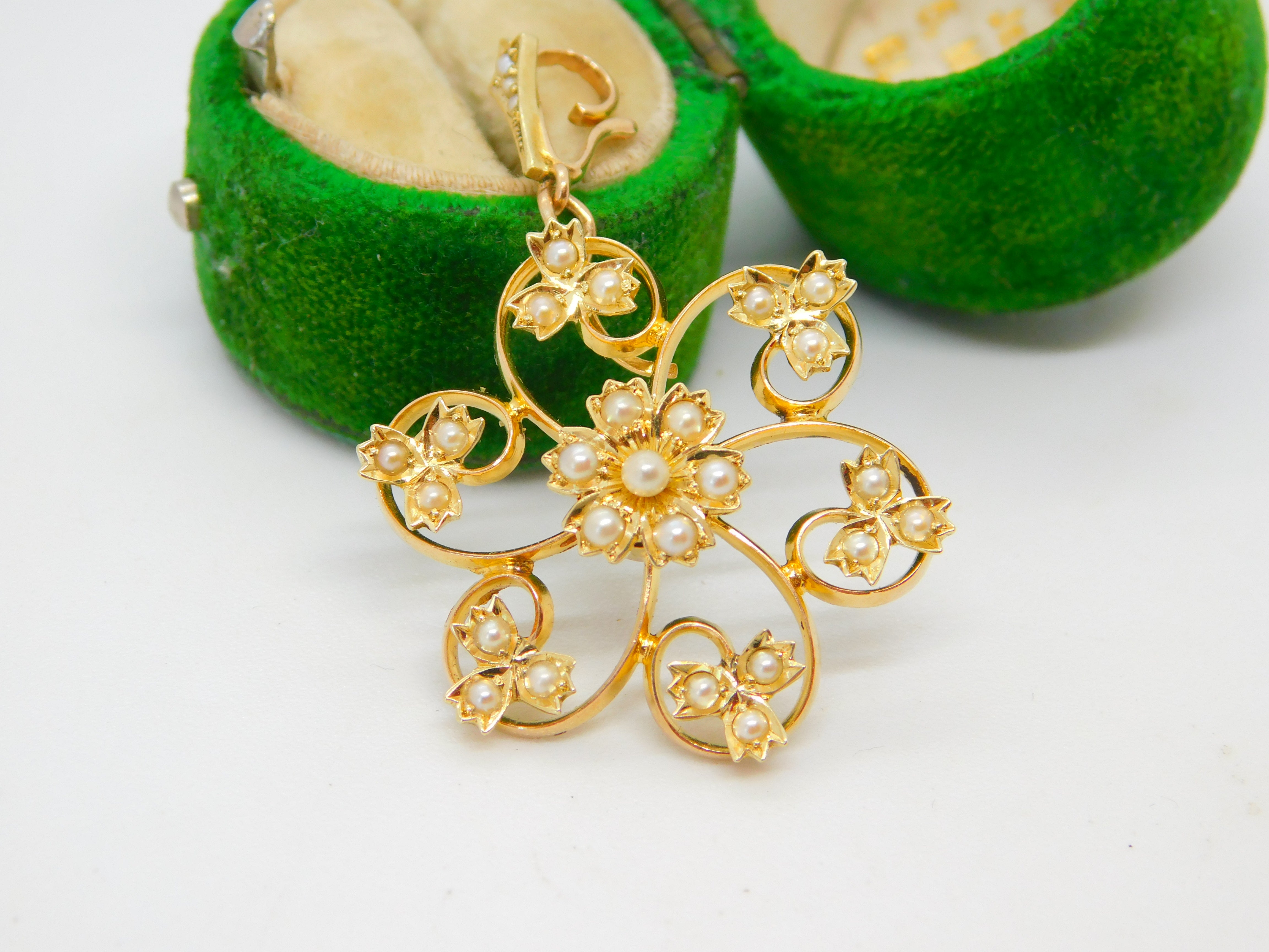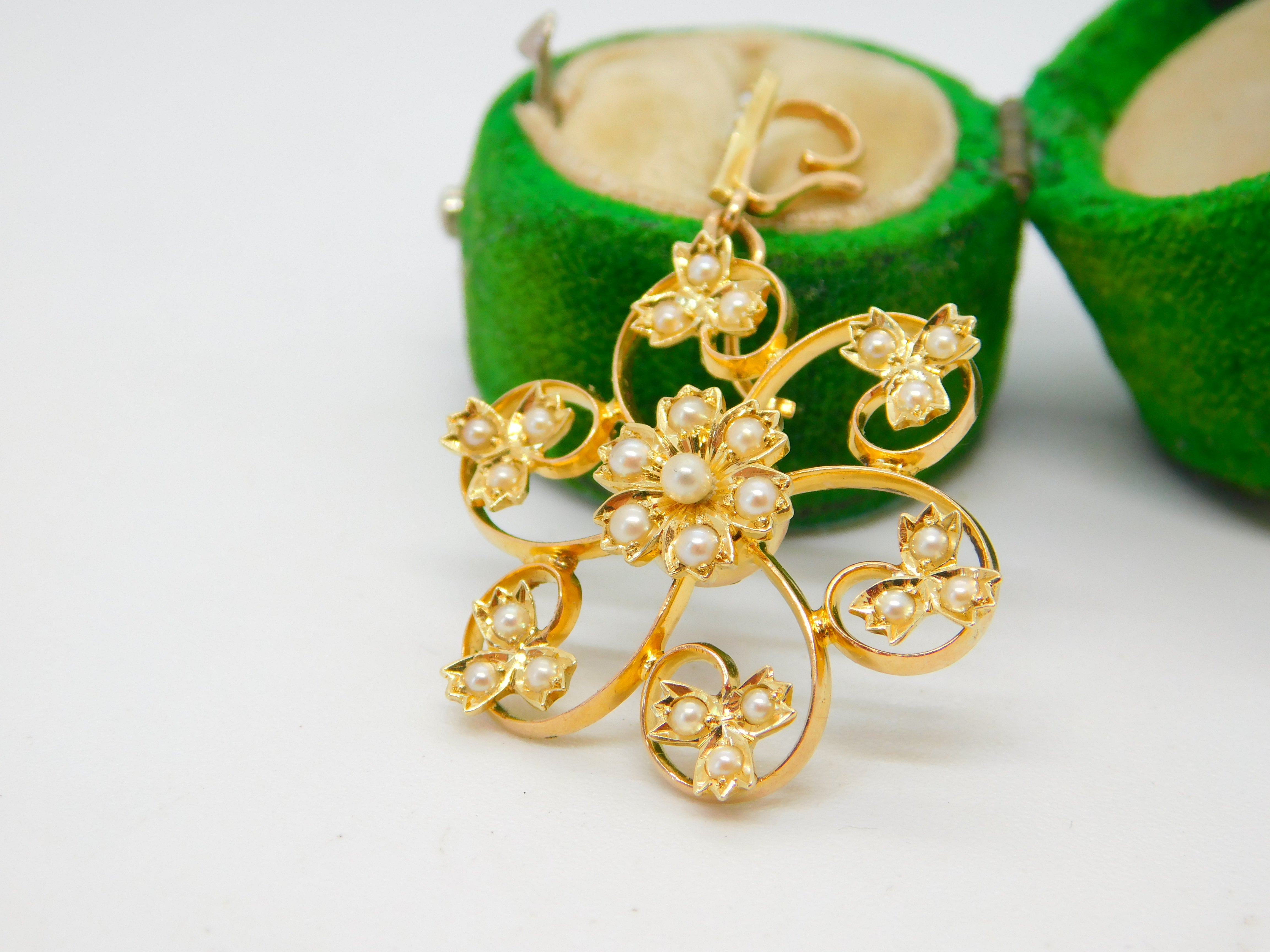 Details: A fantastic and wonderfully designed antique Victorian 15ct yellow gold & seed pearl set floral mourning pendant set with a woven plait of hair to a locket in the reverse hallmarked '15ct' to the bale c1890. A stunning and unique example we have never encountered a mourning pendant of this style. This is a wonderful item that would make a perfect gift or addition to any collection. The BOX pictured is for PRESENTATION ONLY and is NOT included in the listings but used to frame the pictures unless specifically stated otherwise.