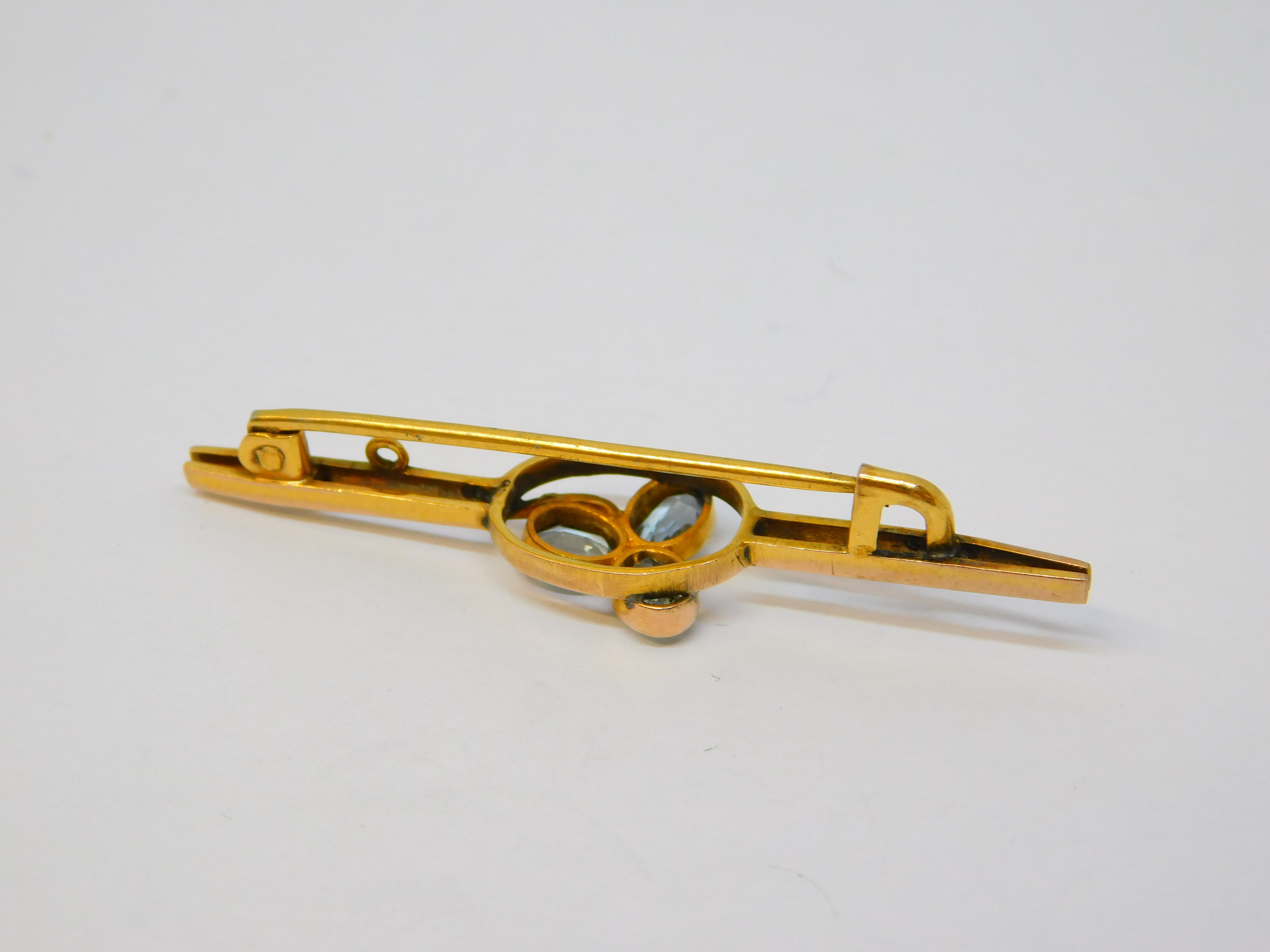 Victorian 15ct Yellow Gold & Aquamarine Floral Sweetheart Brooch Antique c1890