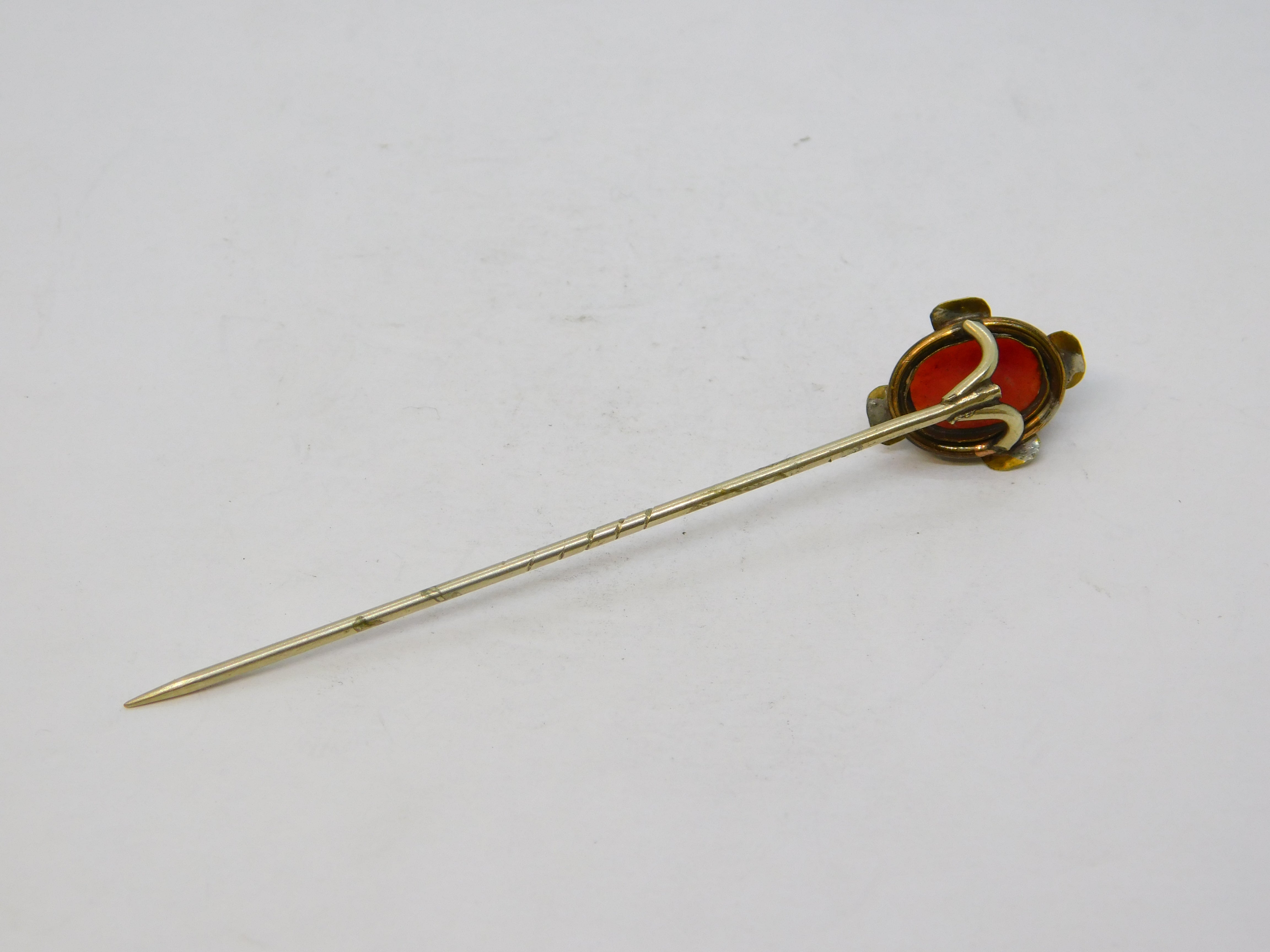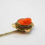 Victorian 15ct Yellow Gold Carved Red Coral Cameo Stick Pin Antique c1860