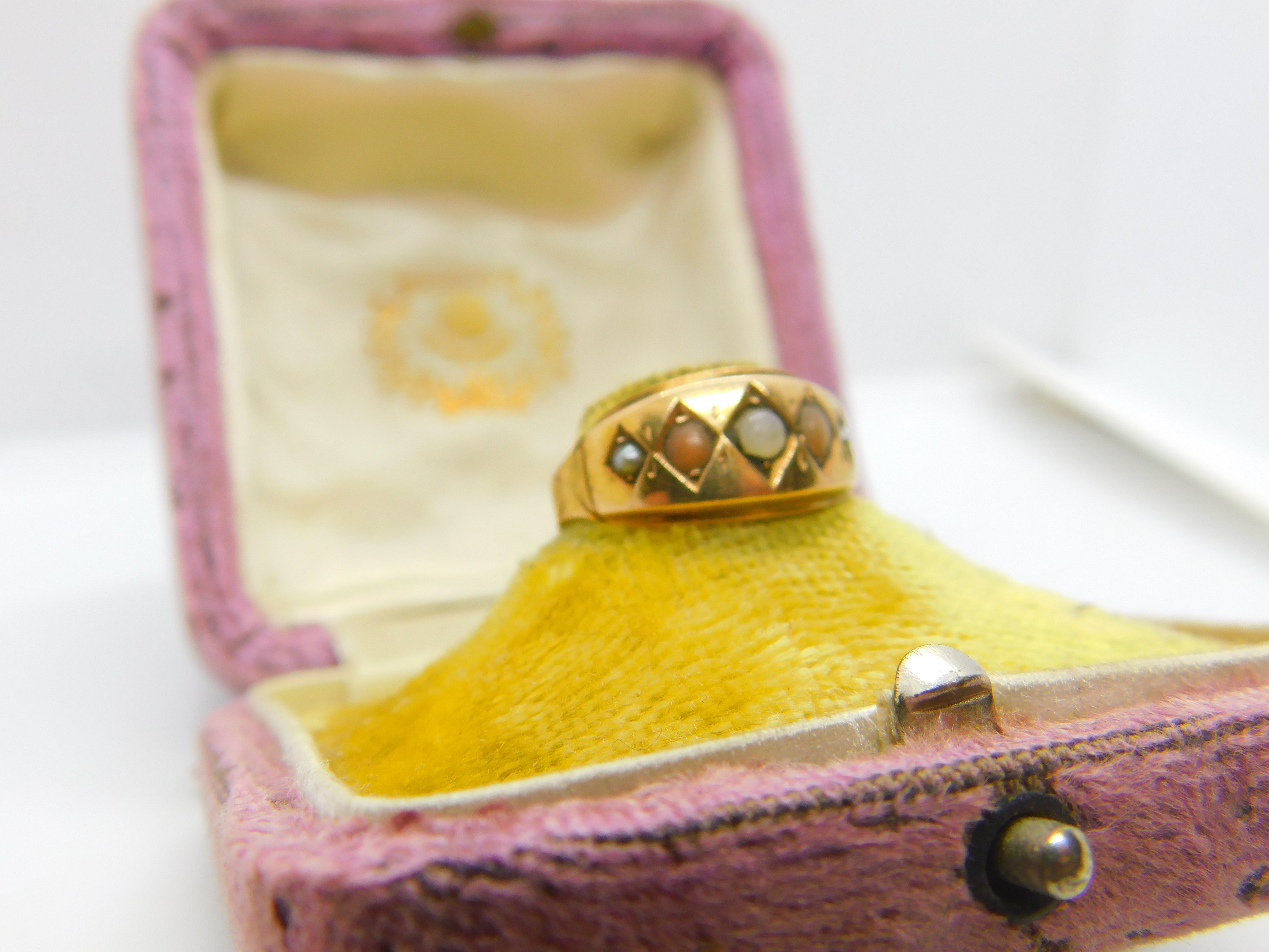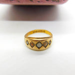Victorian 15ct Yellow Gold, Seed Pearl & Coral Boat Ring 1886 Chester Antique
