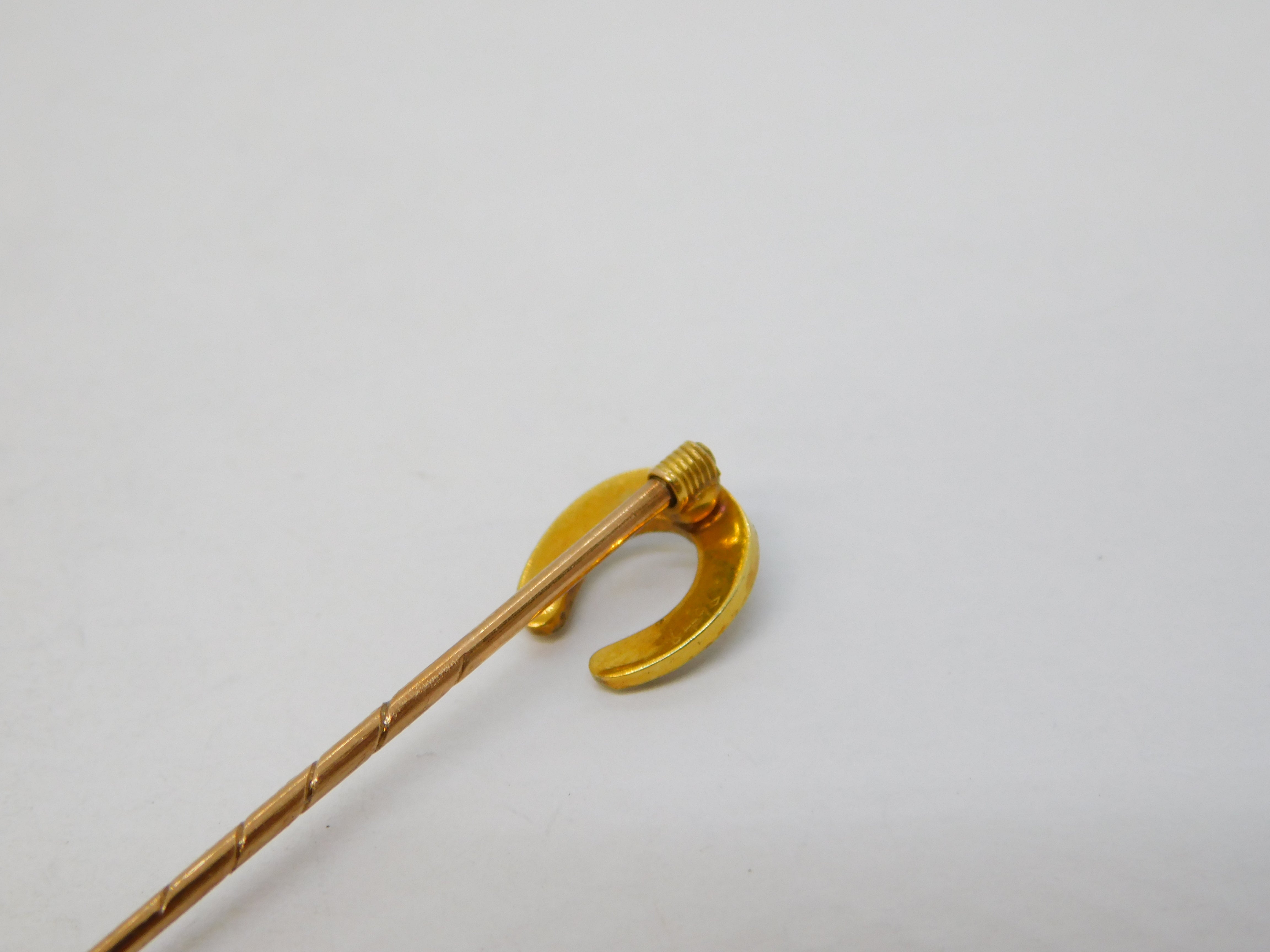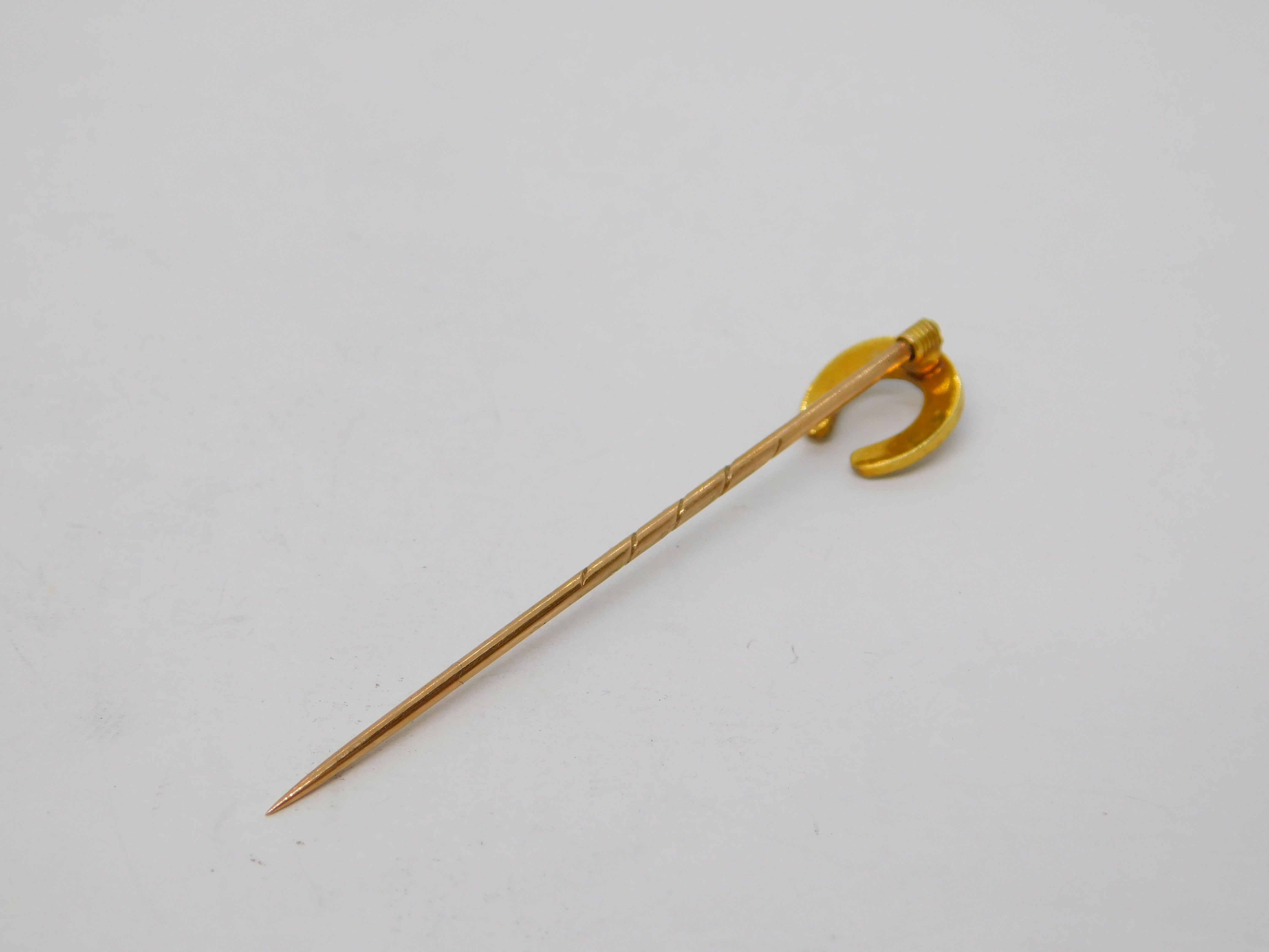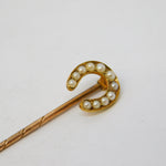 Victorian 15ct Yellow Gold Seed Pearl Set Horseshoe Stick Pin Antique c1860