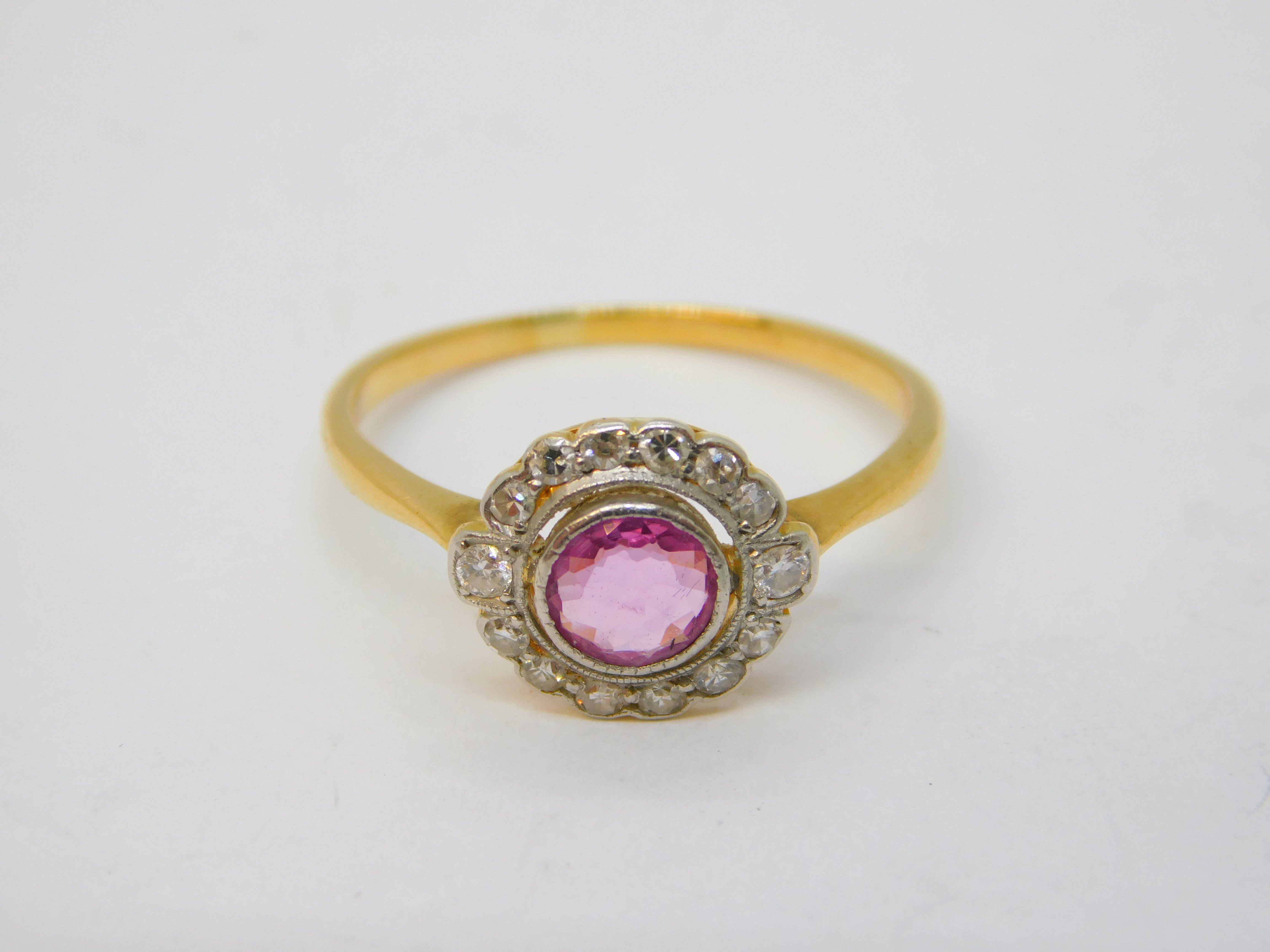 Victorian 18ct Gold, 0.5ct Pink Sapphire & Diamond Engagement Ring Antique