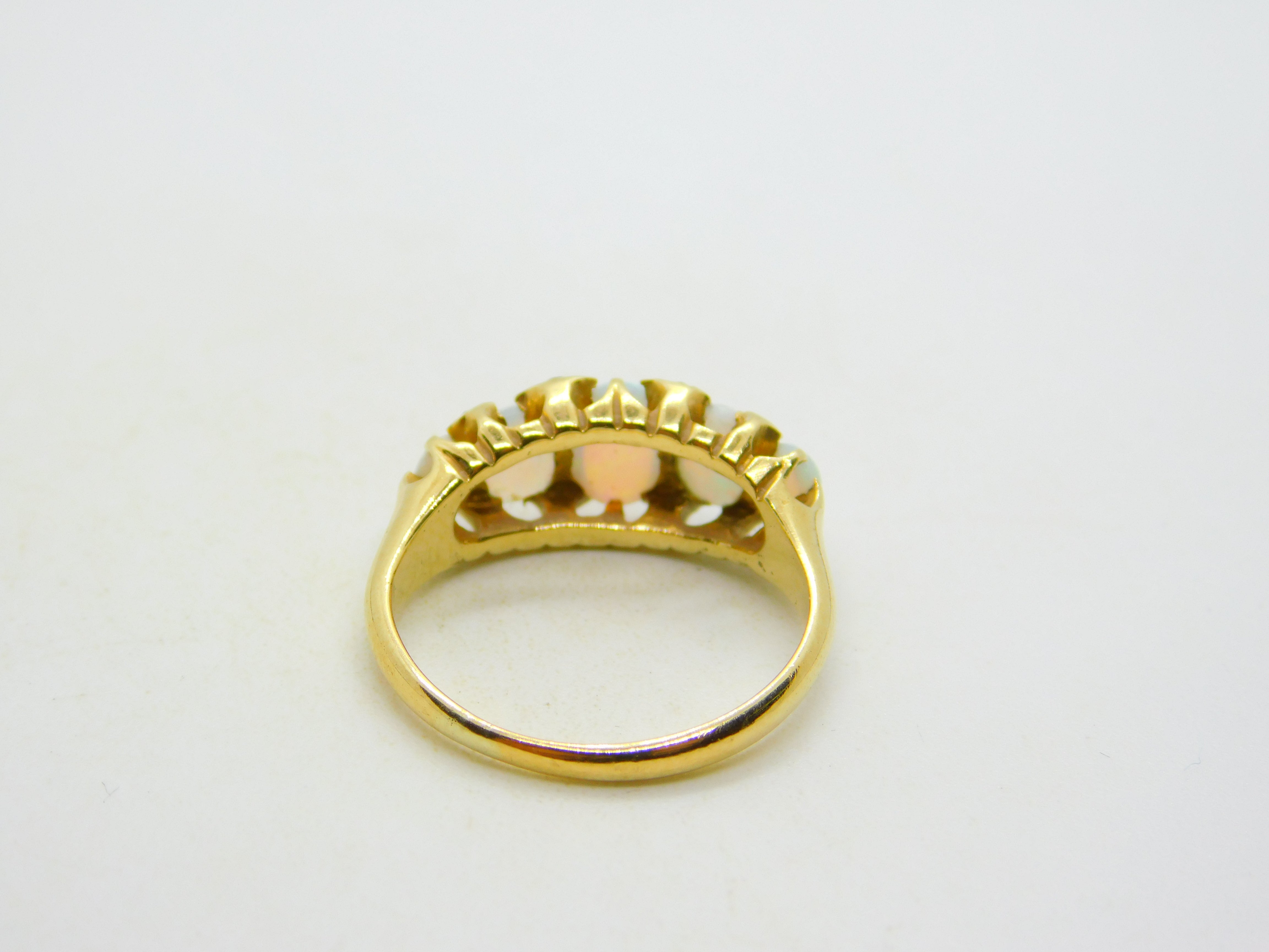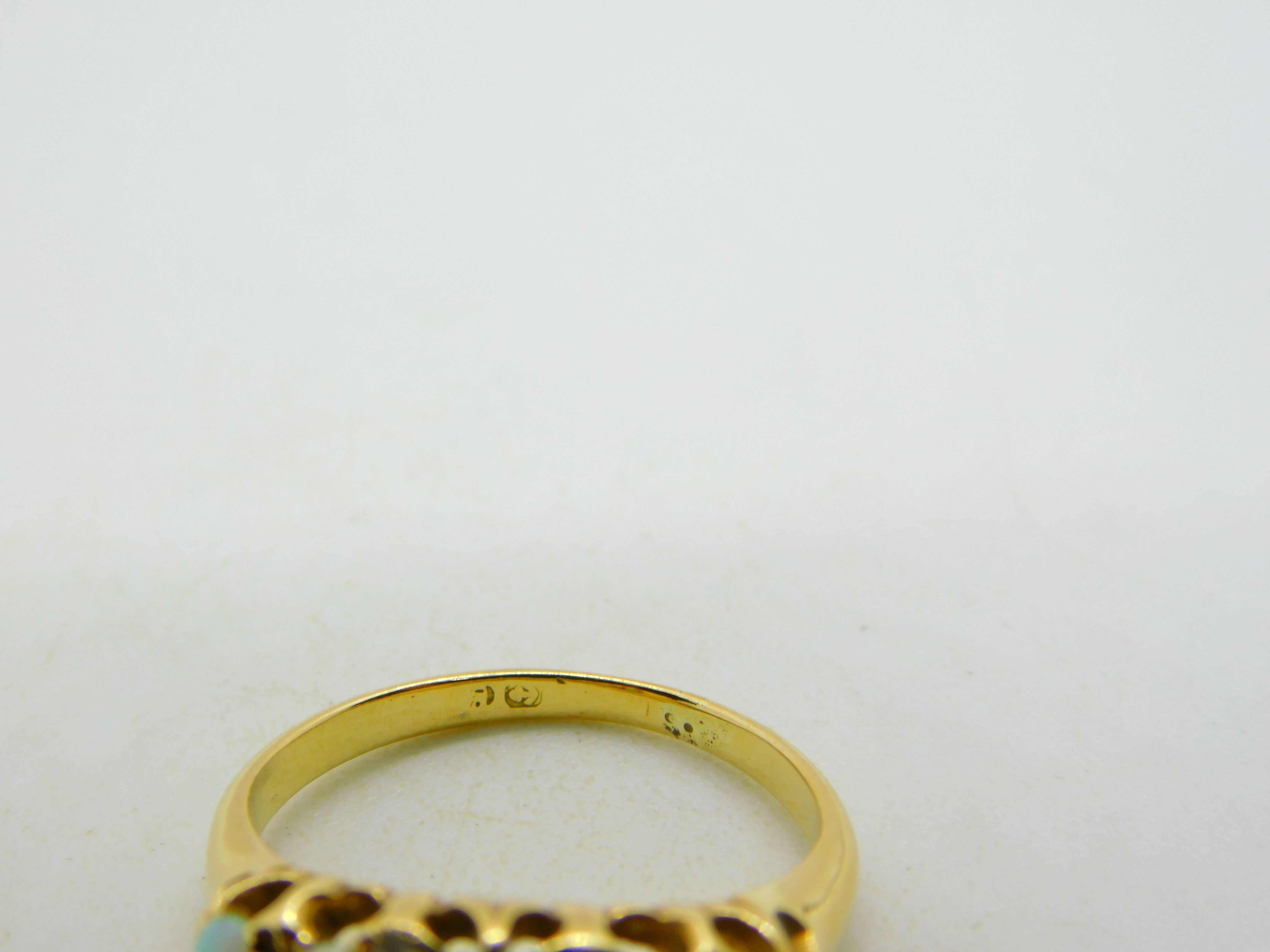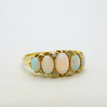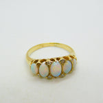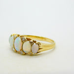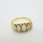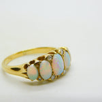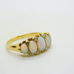 Victorian 18ct Gold Graduating Five-Stone Opal & Diamond Boat Ring Antique c1880