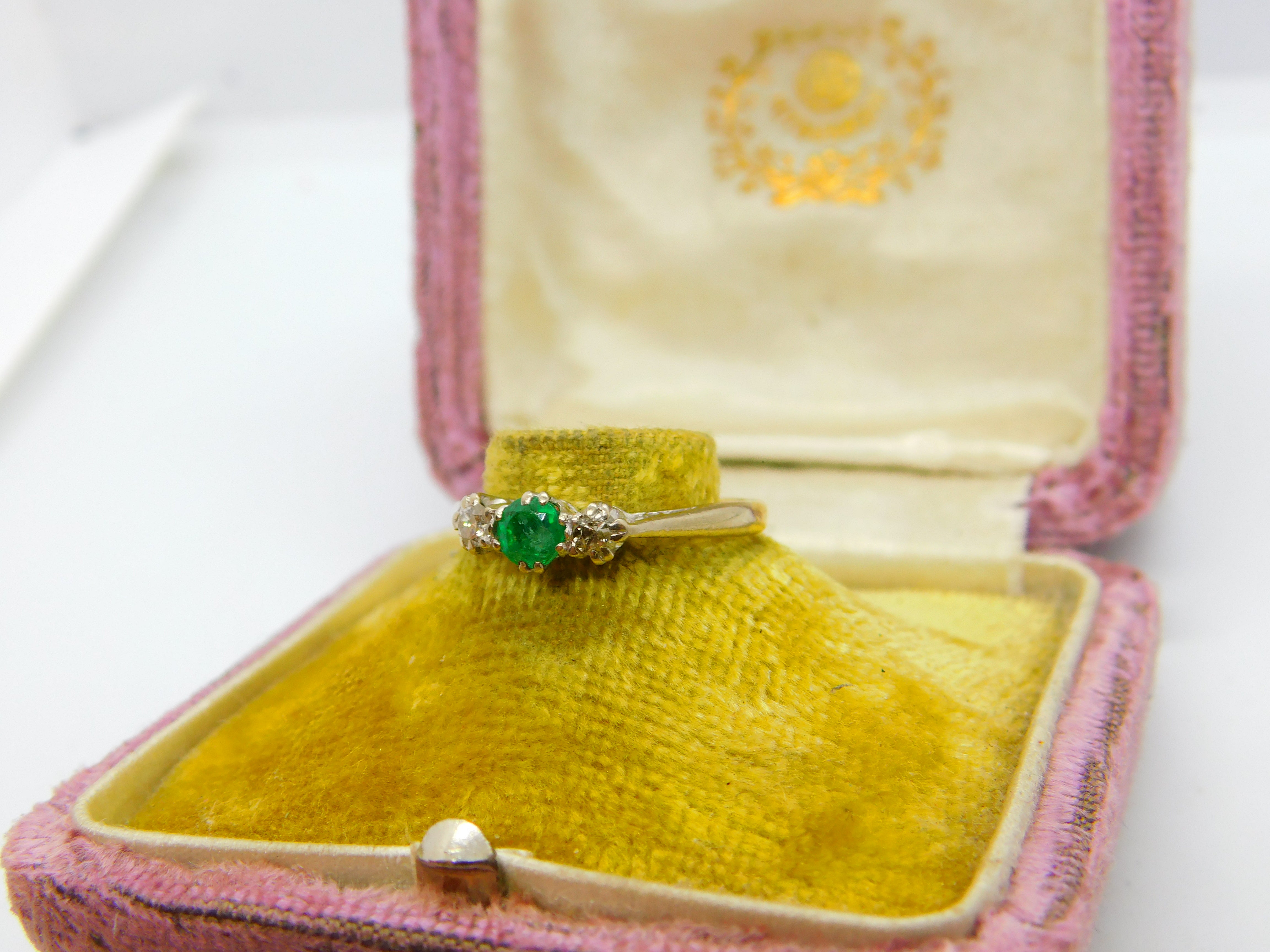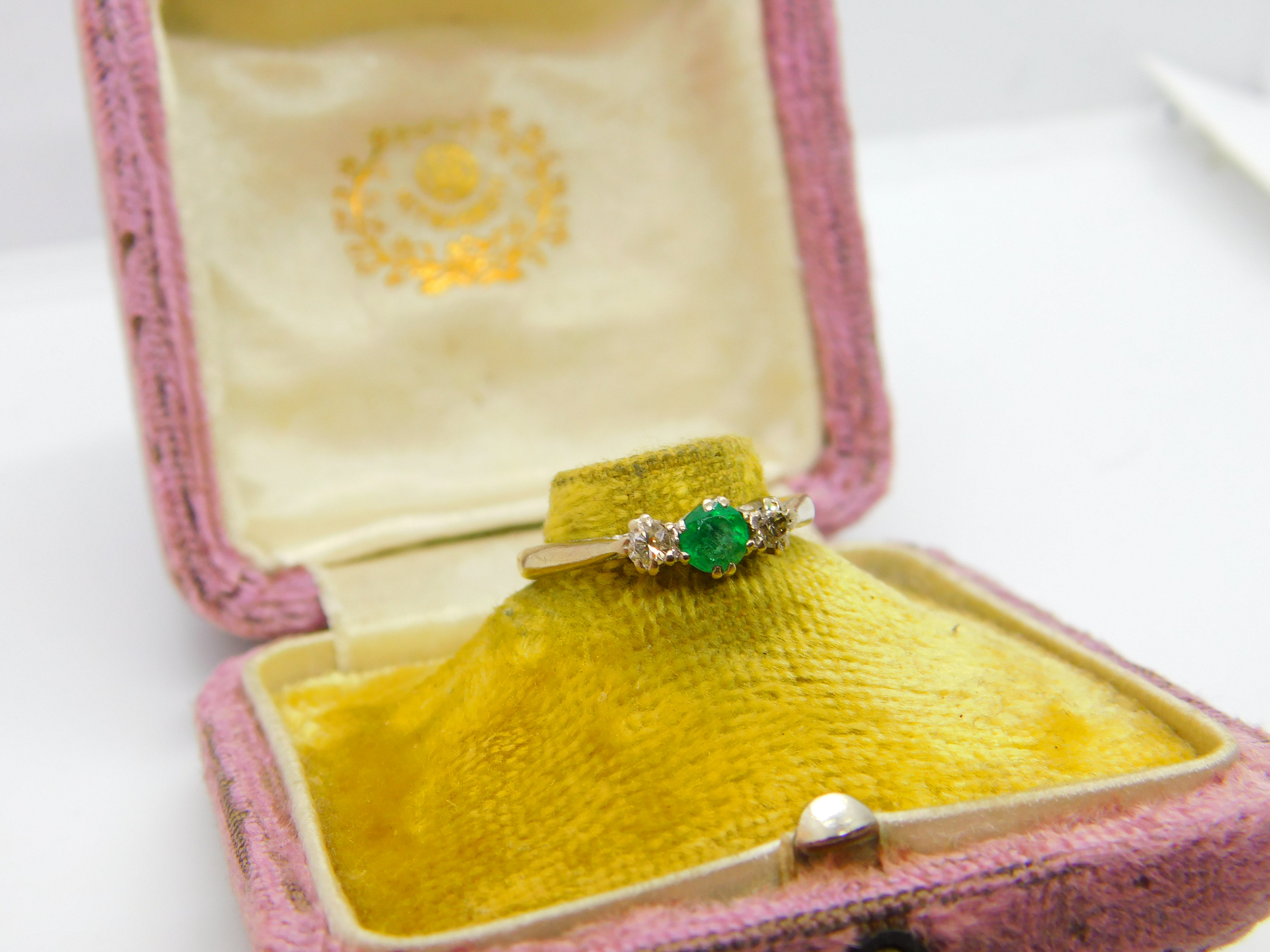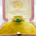 Victorian 18ct Yellow Gold, 0.25ct Emerald & Diamond Dress Ring c1900 Antique