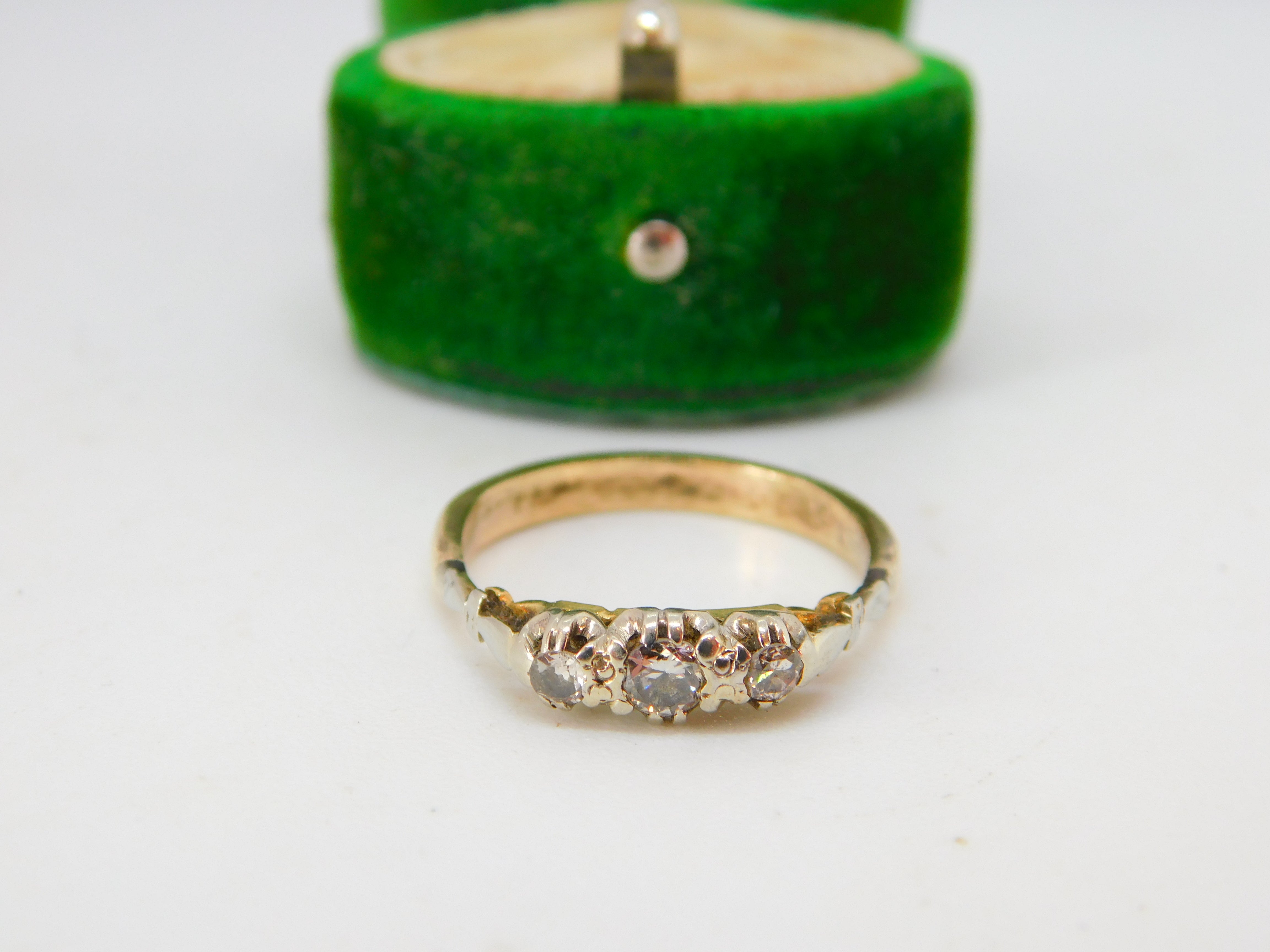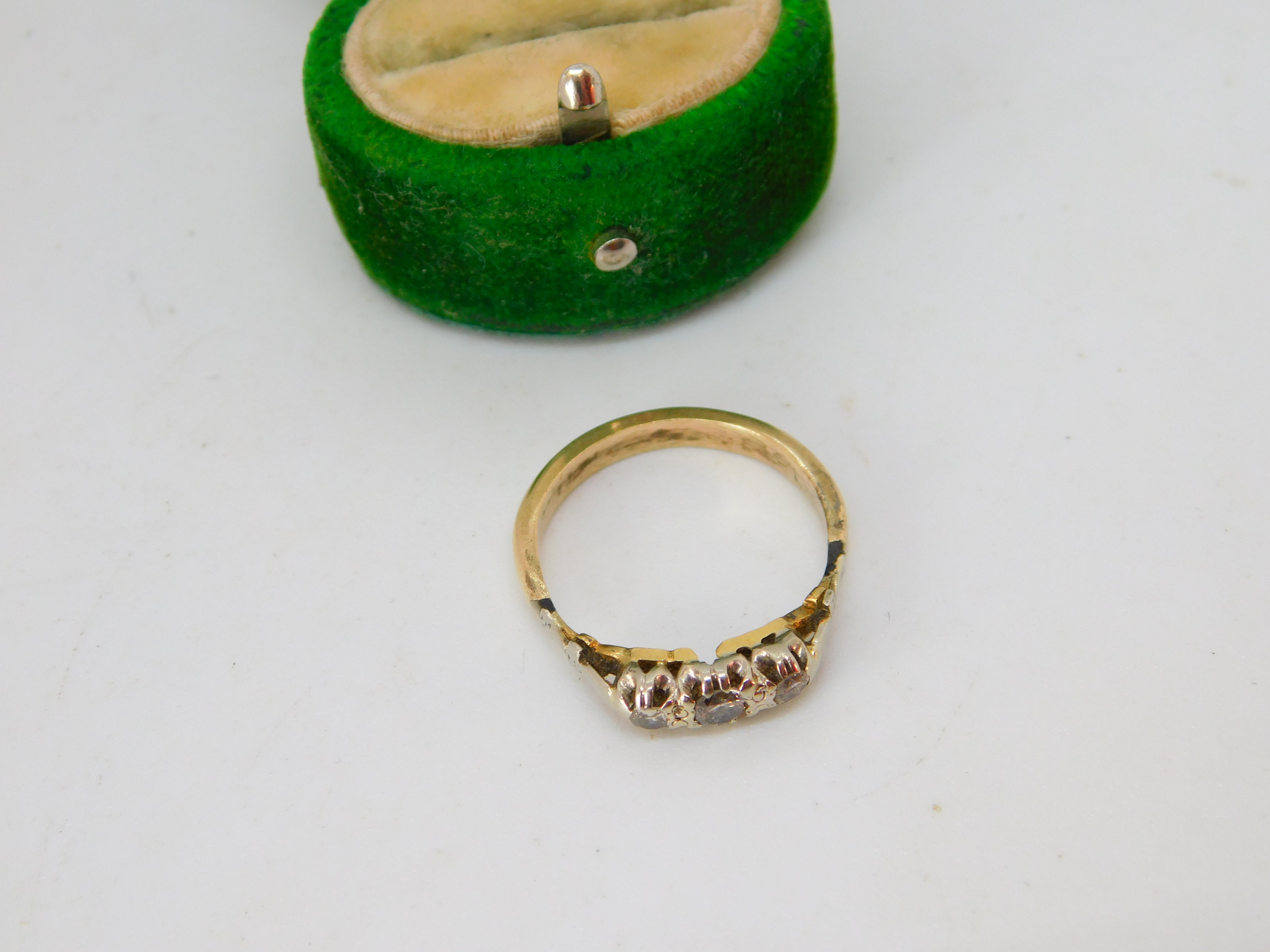 Victorian 18ct Yellow Gold & 0.2ct Diamond Three-Stone Ring Antique c1890