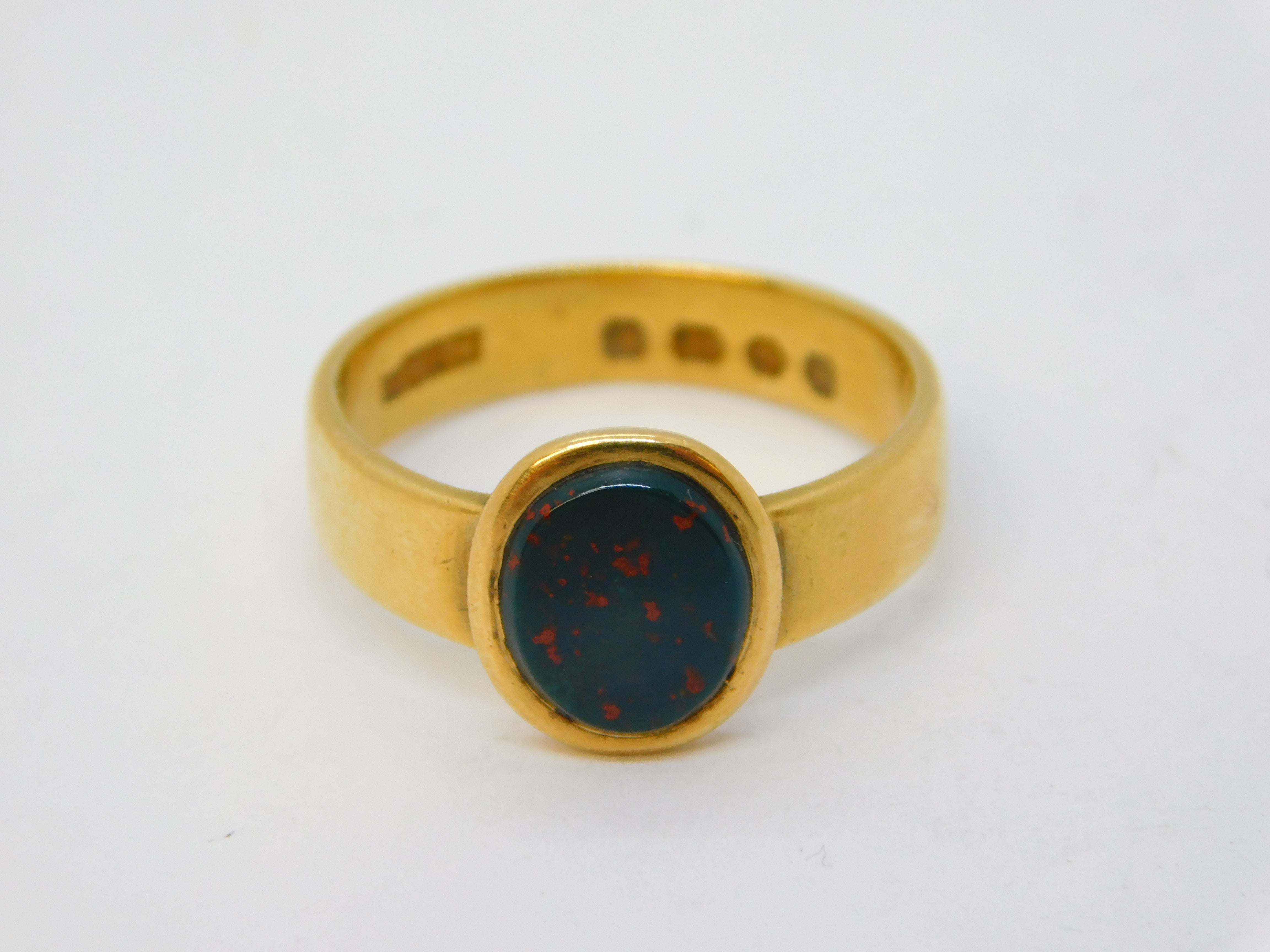 Victorian 18ct Yellow Gold & Bloodstone Signet Ring Antique 1875 London