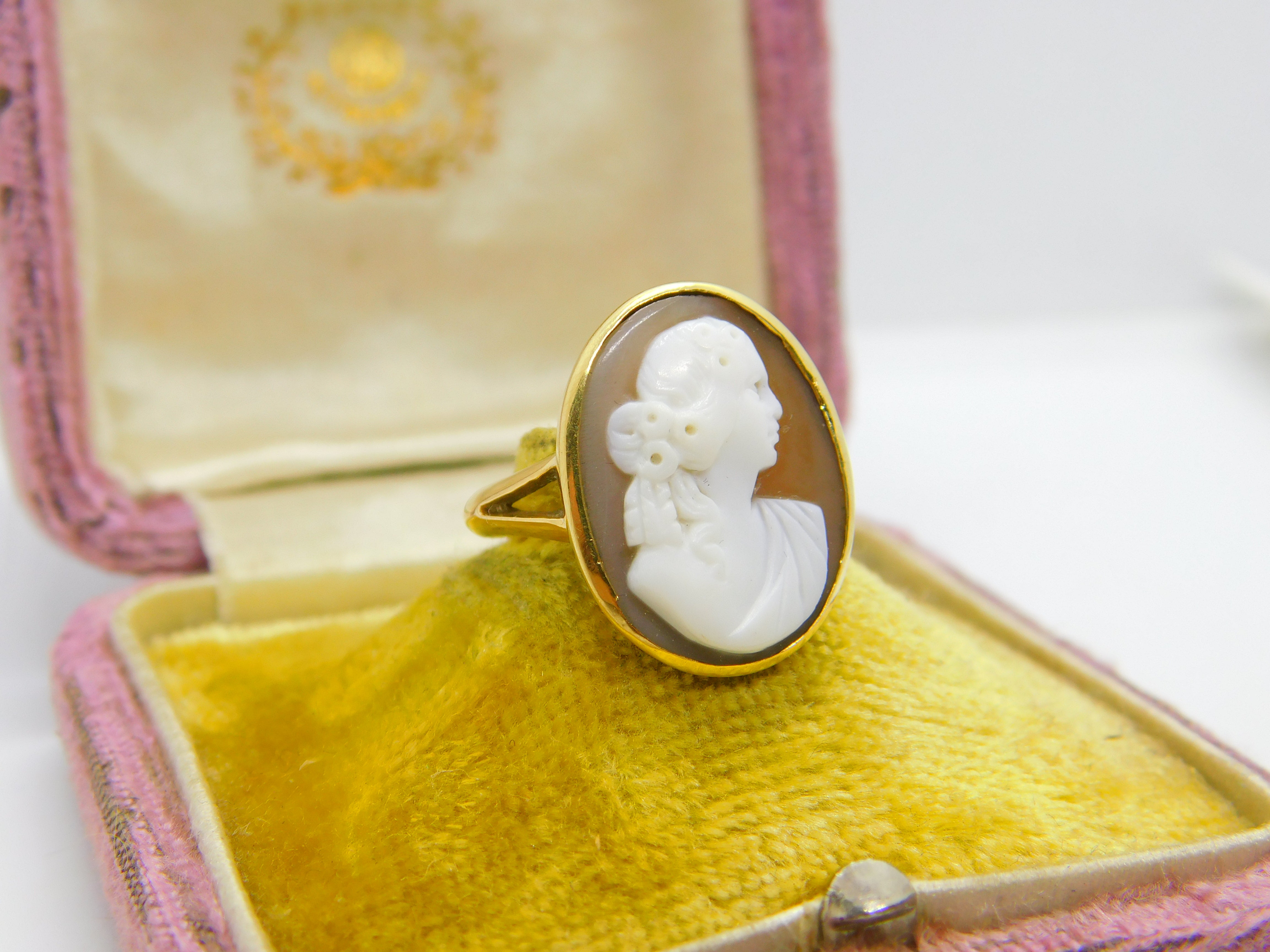 Victorian 18ct Yellow Gold Classical Female Shell Cameo Antique c1890 Birmingham
