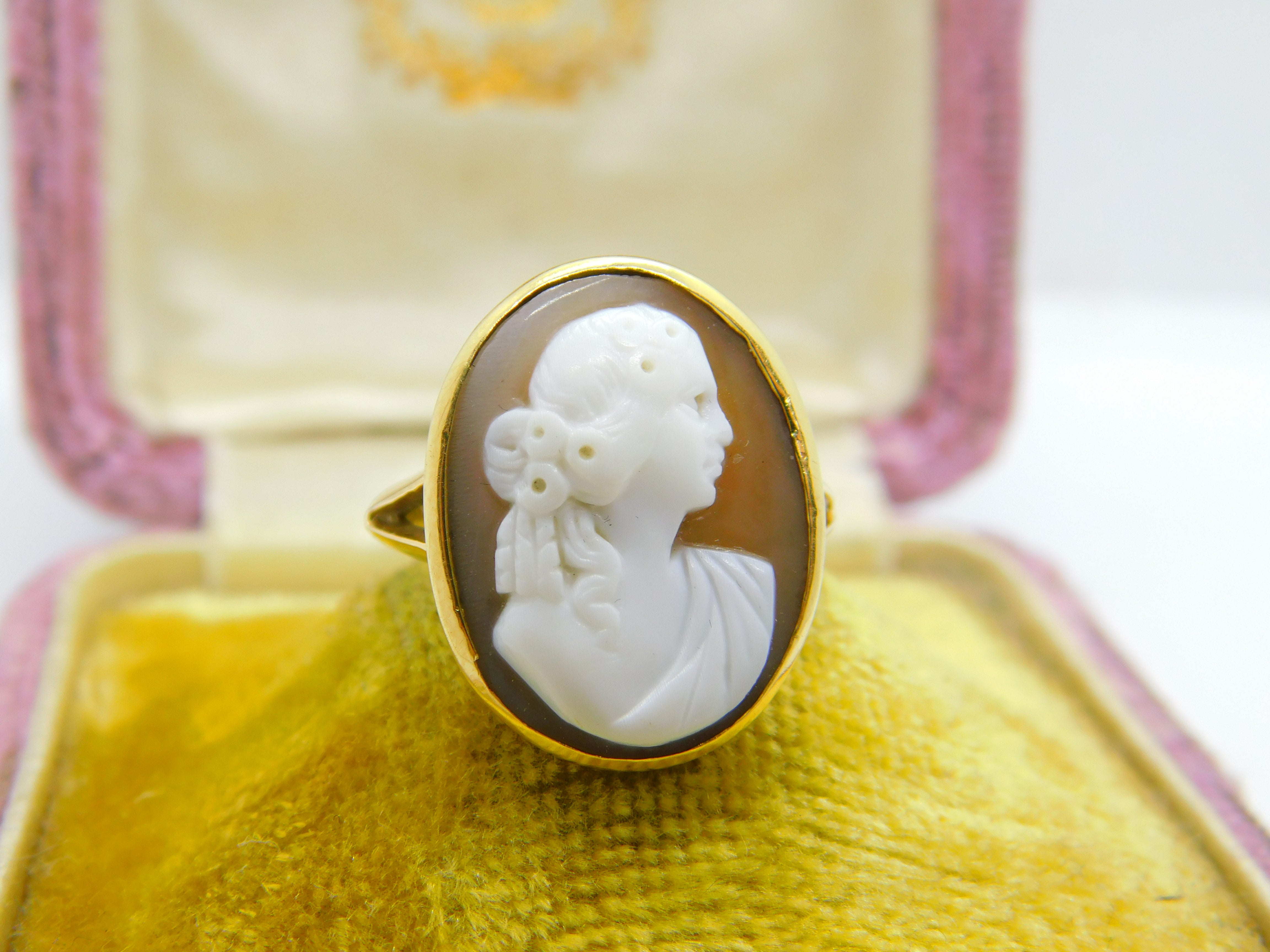 Details: A fantastic and wonderfully designed antique Victorian 18ct yellow gold carved classical shell cameo dress ring hallmarked Birmingham c1890 to the interior. This is a wonderful item that would make a perfect gift or addition to any collection. The BOX pictured is for PRESENTATION ONLY and is NOT included in the listings but used to frame the pictures unless specifically stated otherwise.