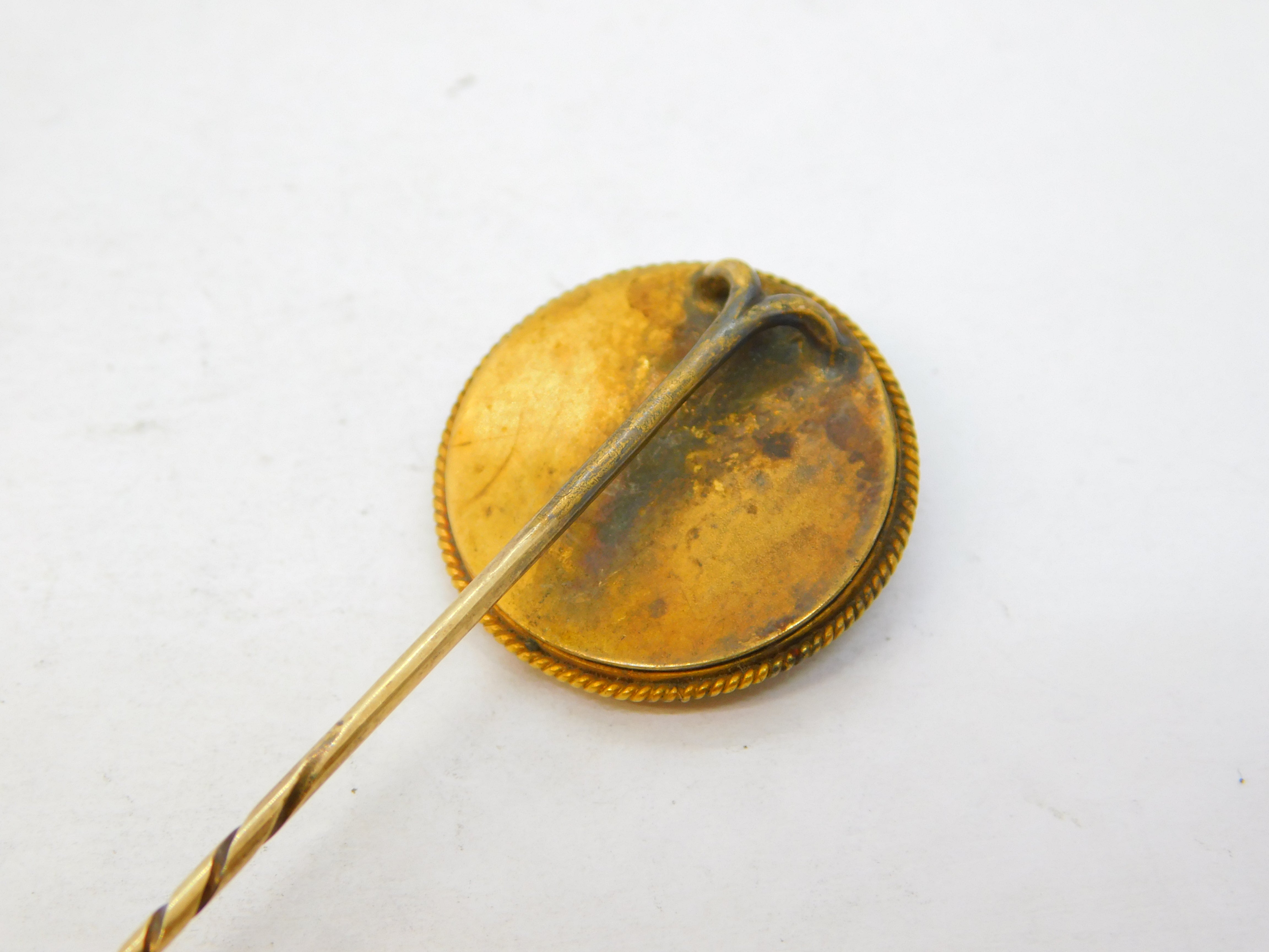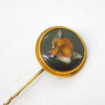 Victorian 18ct Yellow Gold Mounted Enamel Fox Mask Stick Pin Antique c1860