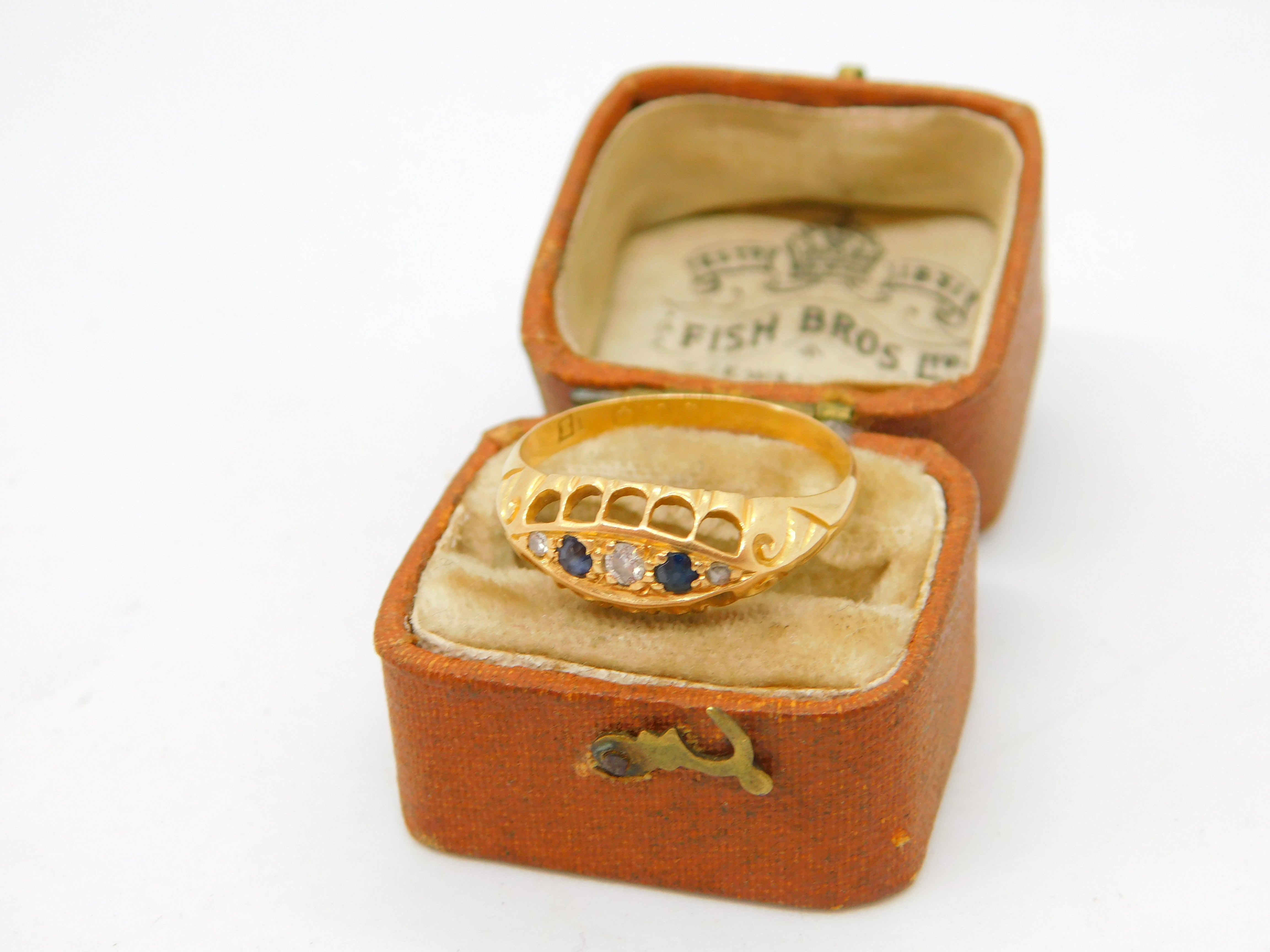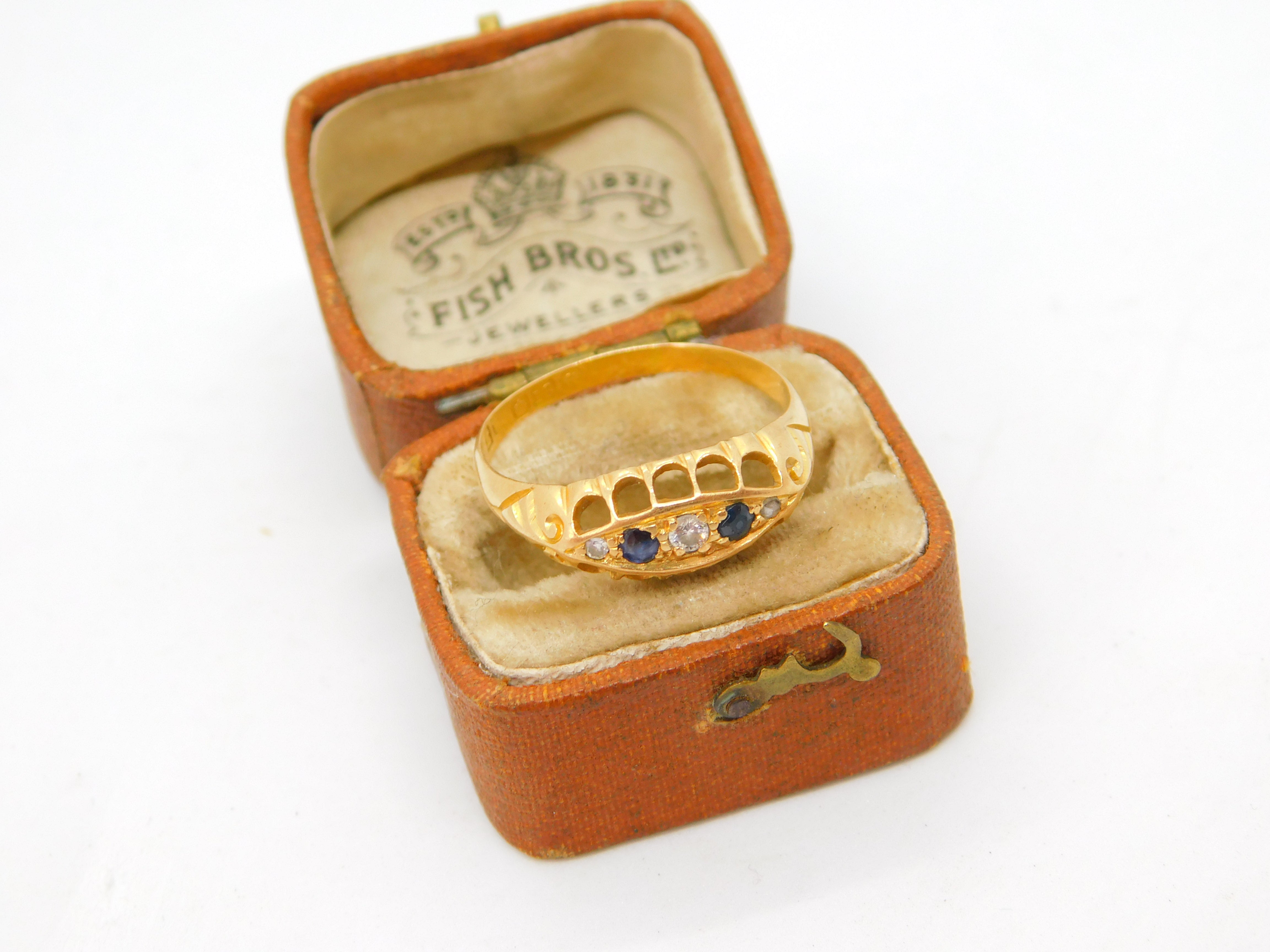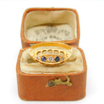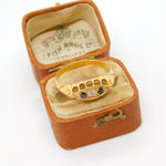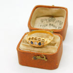 Victorian 18ct Yellow Gold, Sapphire & Diamond Boat Ring Antique 1864 Birmingham