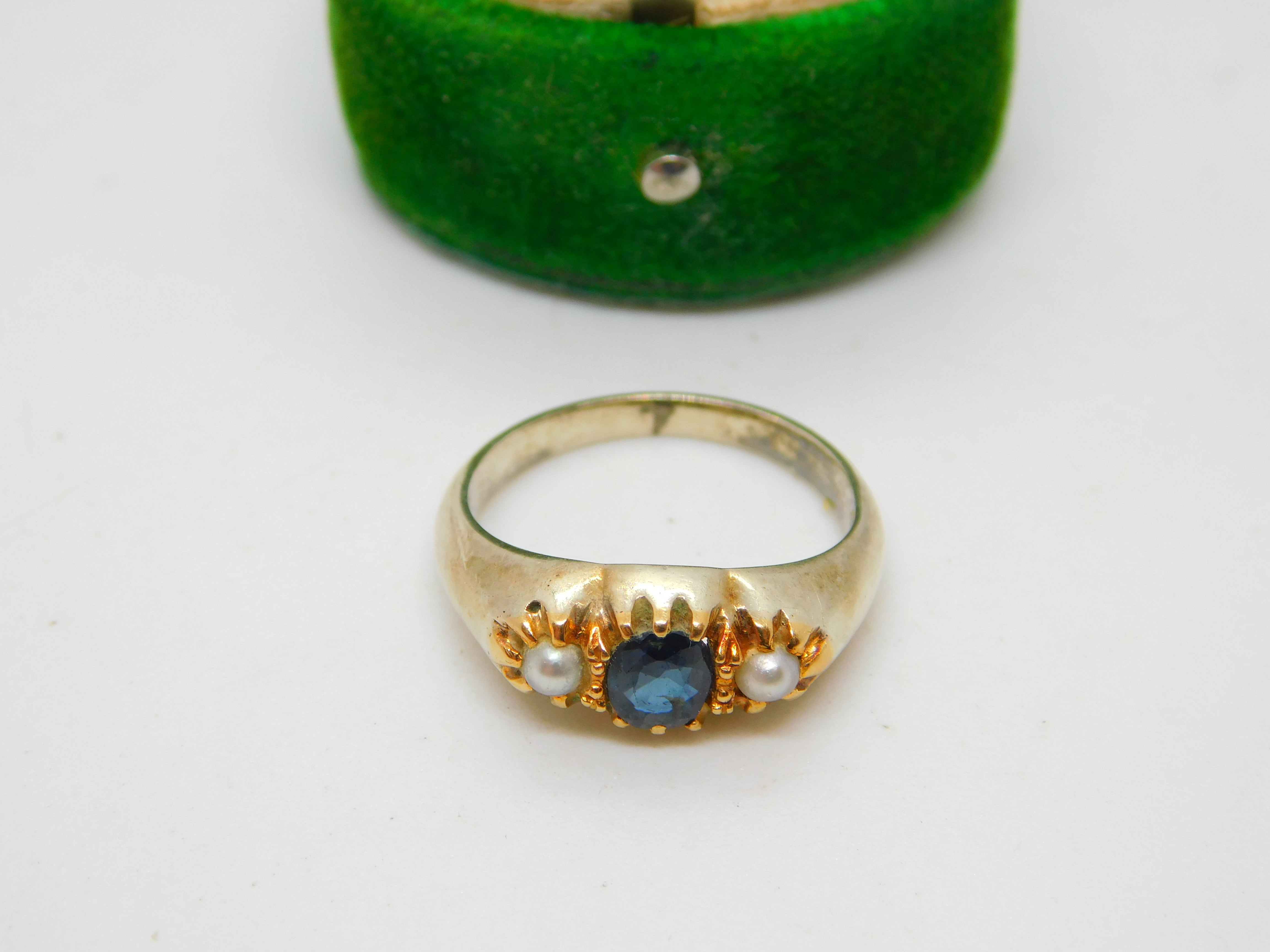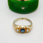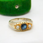 Victorian 18ct Yellow Gold, Sapphire & Pearl Set Boat Ring Antique c1890