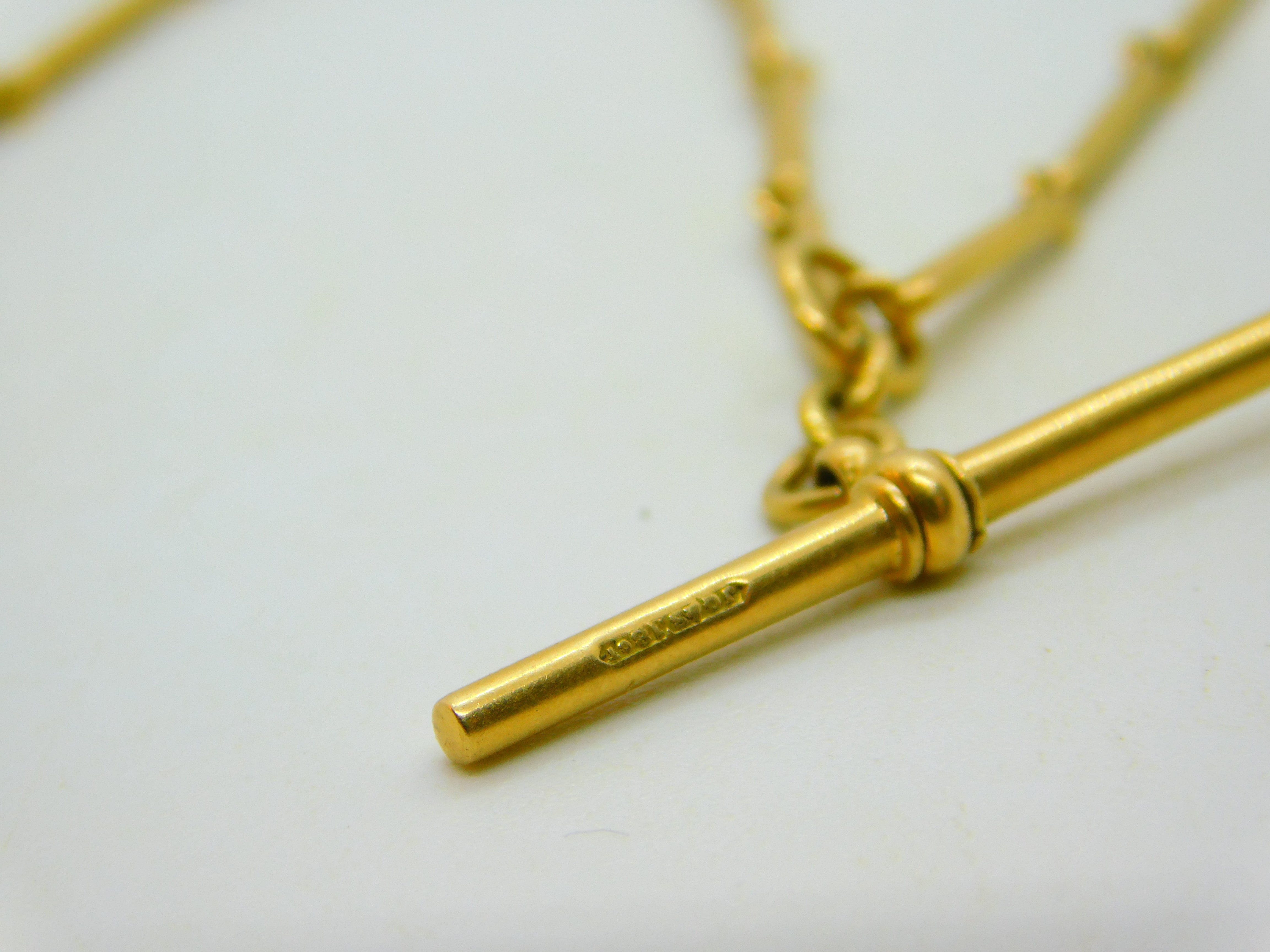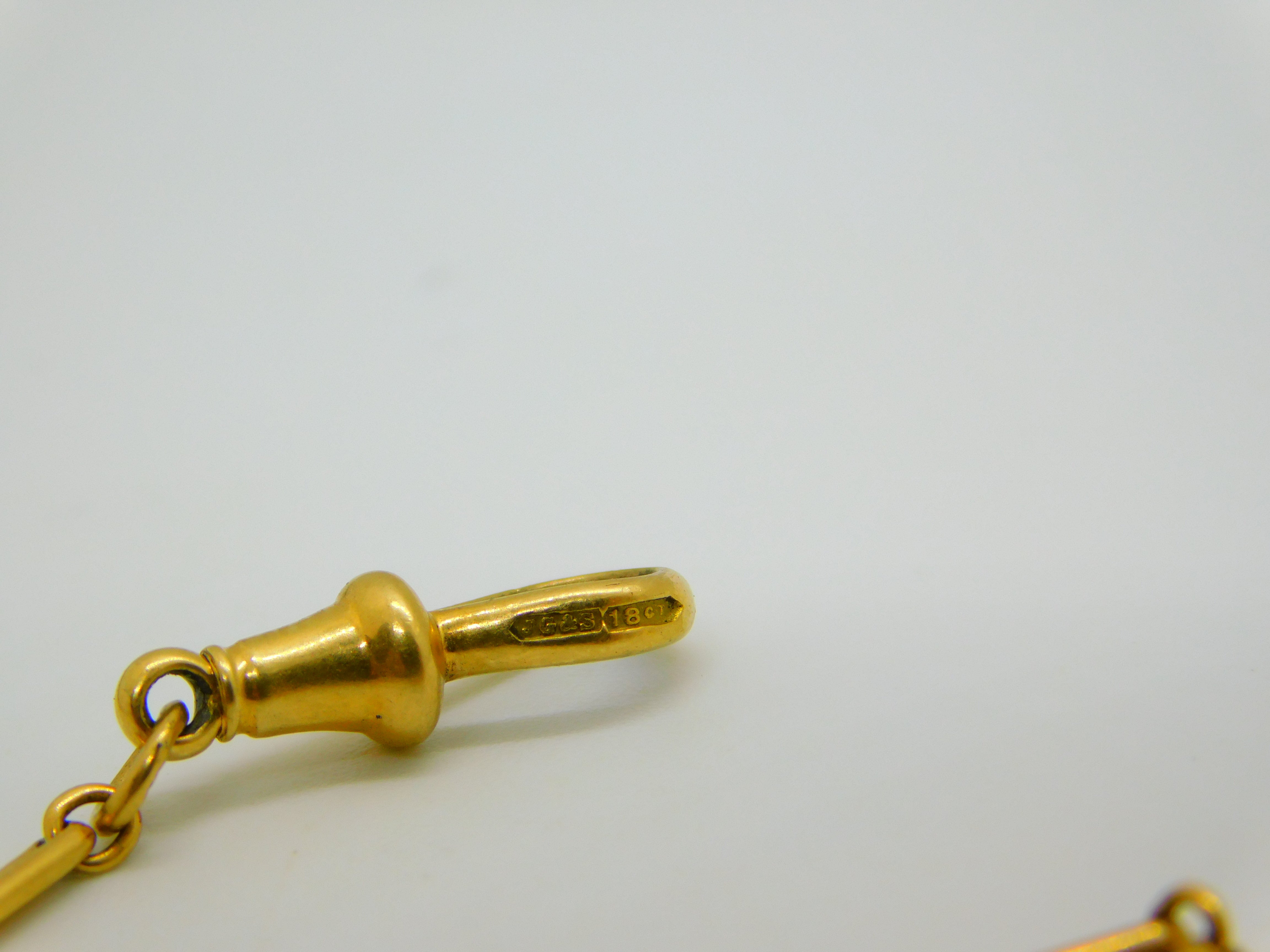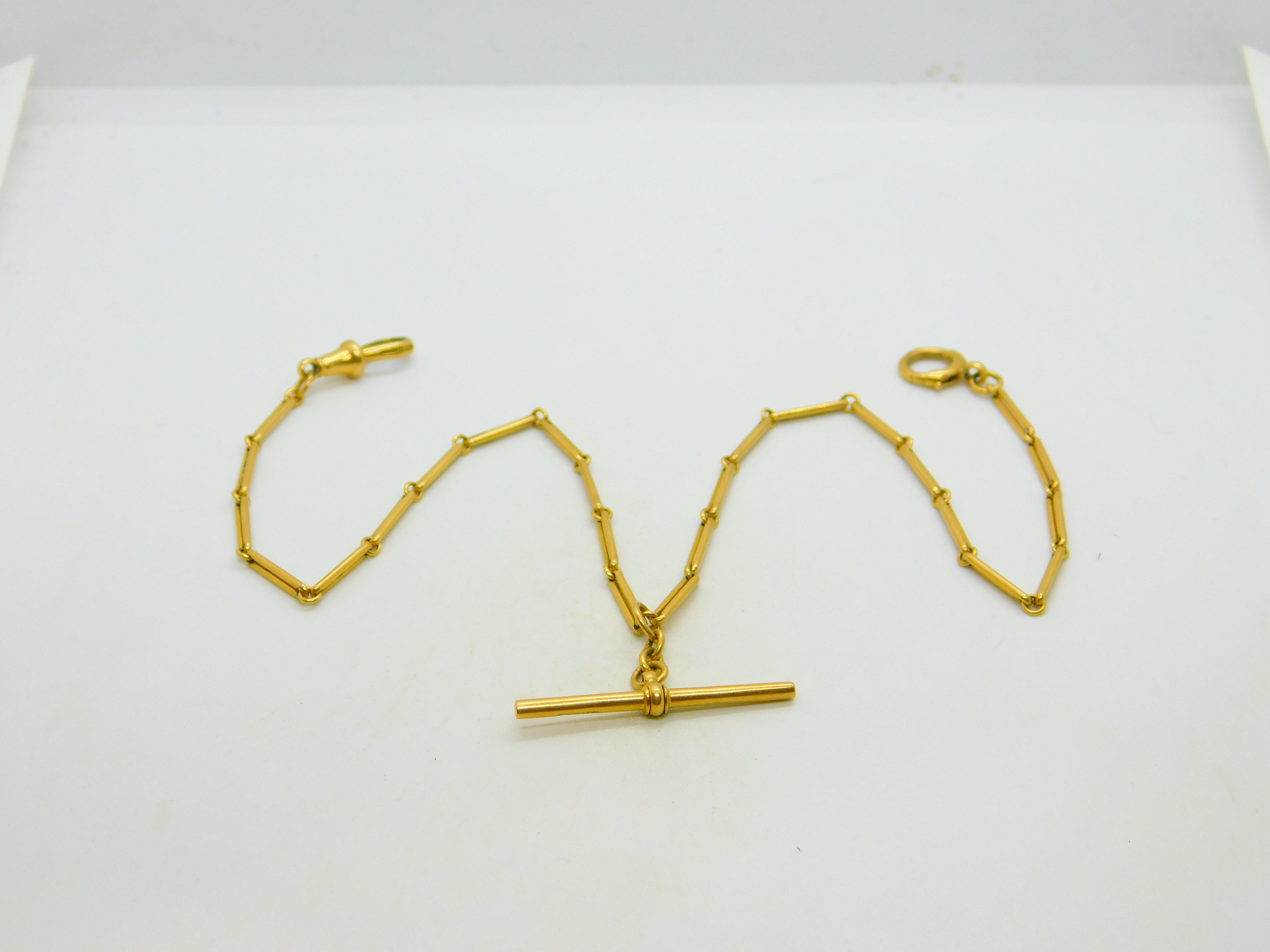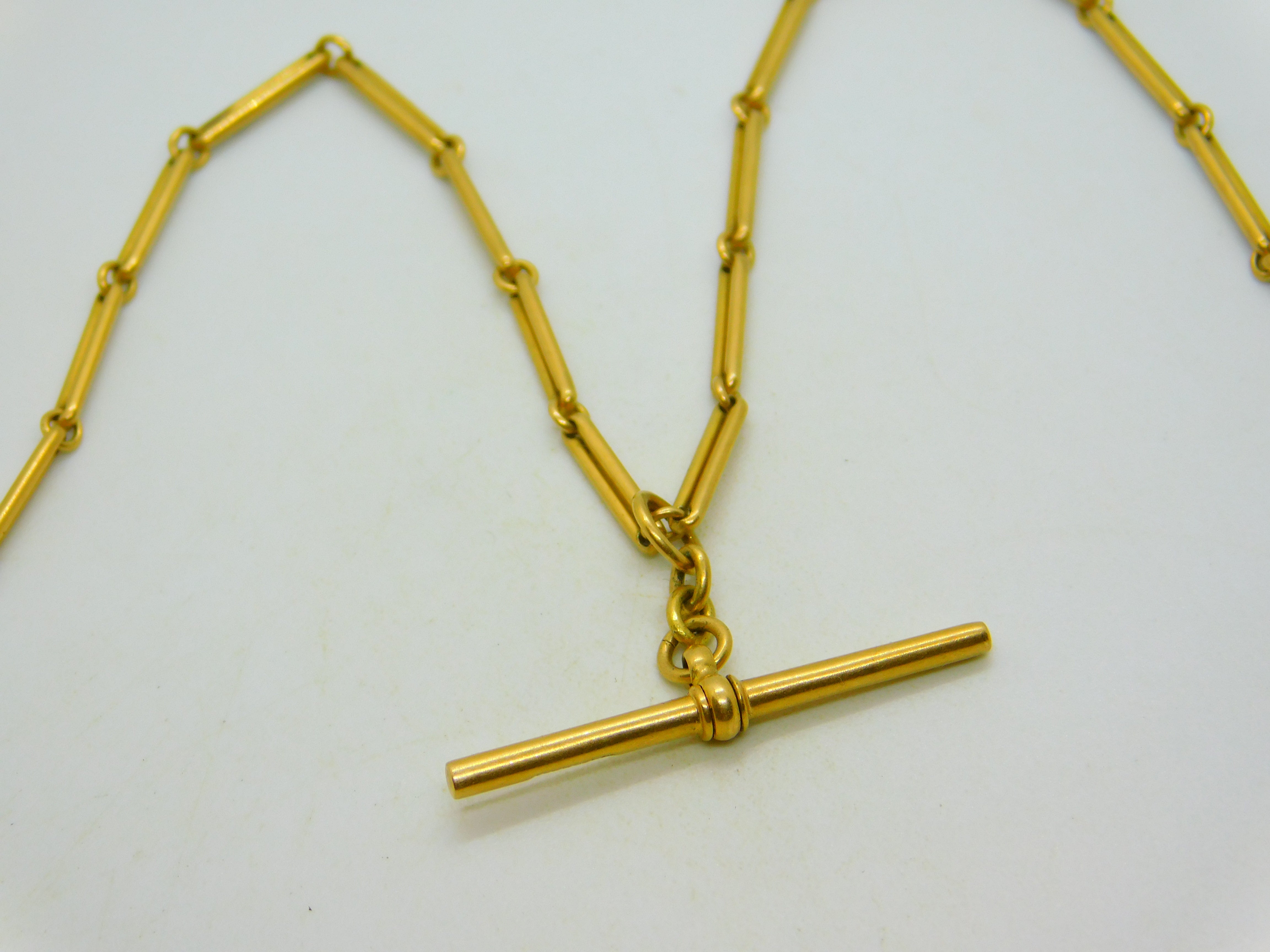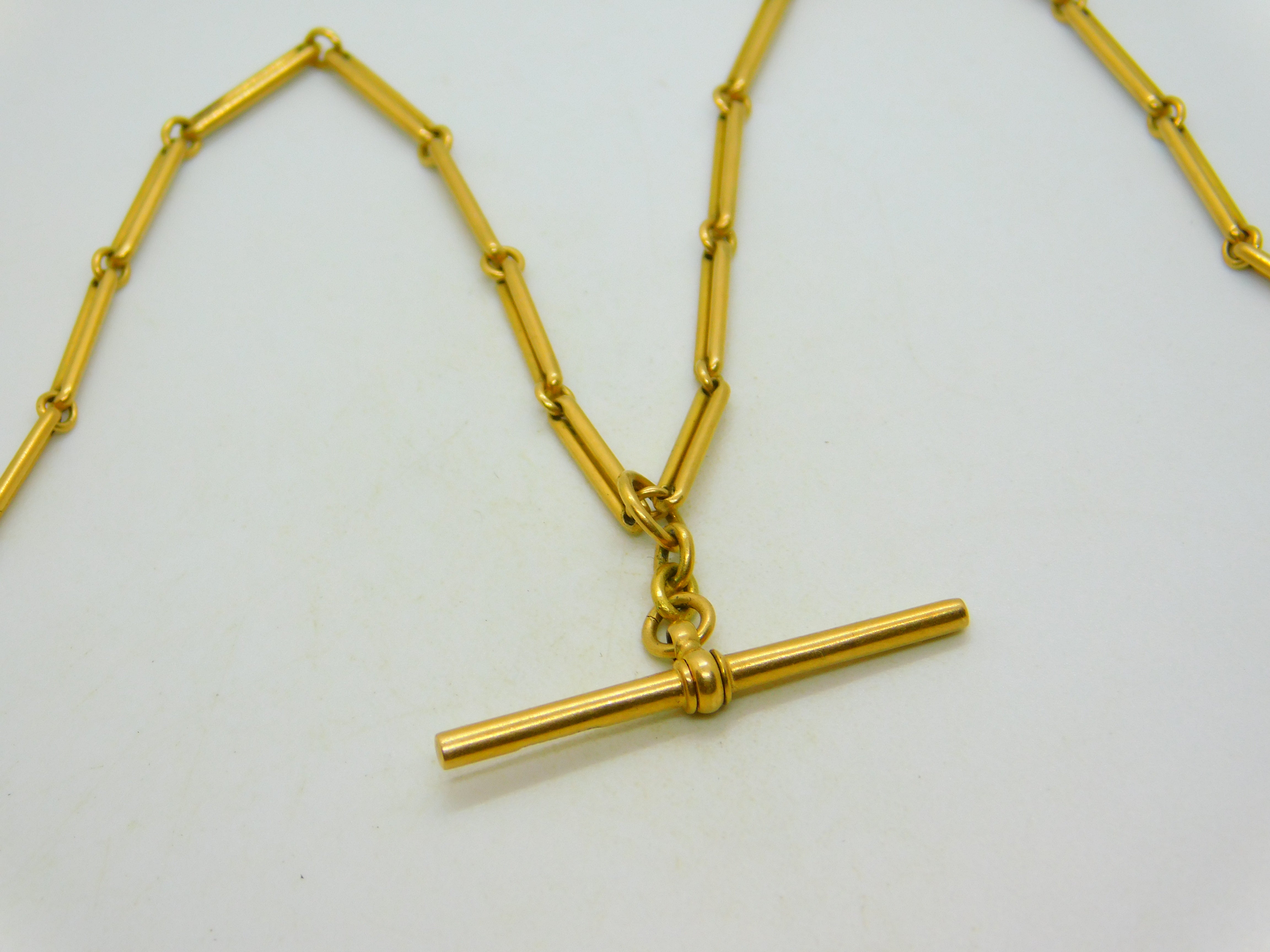 Details: A fantastic and wonderfully designed antique mid-Victorian 18ct yellow gold trombone link albertina watch chain with t-bar, bolt ring and dog clip clasp hallmarked to every aspect with lovely clear hallmarked c1860. Could be worn today as a short necklace but also as a watch chain as originally designed. This is a wonderful item that would make a perfect gift or addition to any collection. The BOX pictured is for PRESENTATION ONLY and is NOT included in the listings but used to frame the pictures unless specifically stated otherwise.