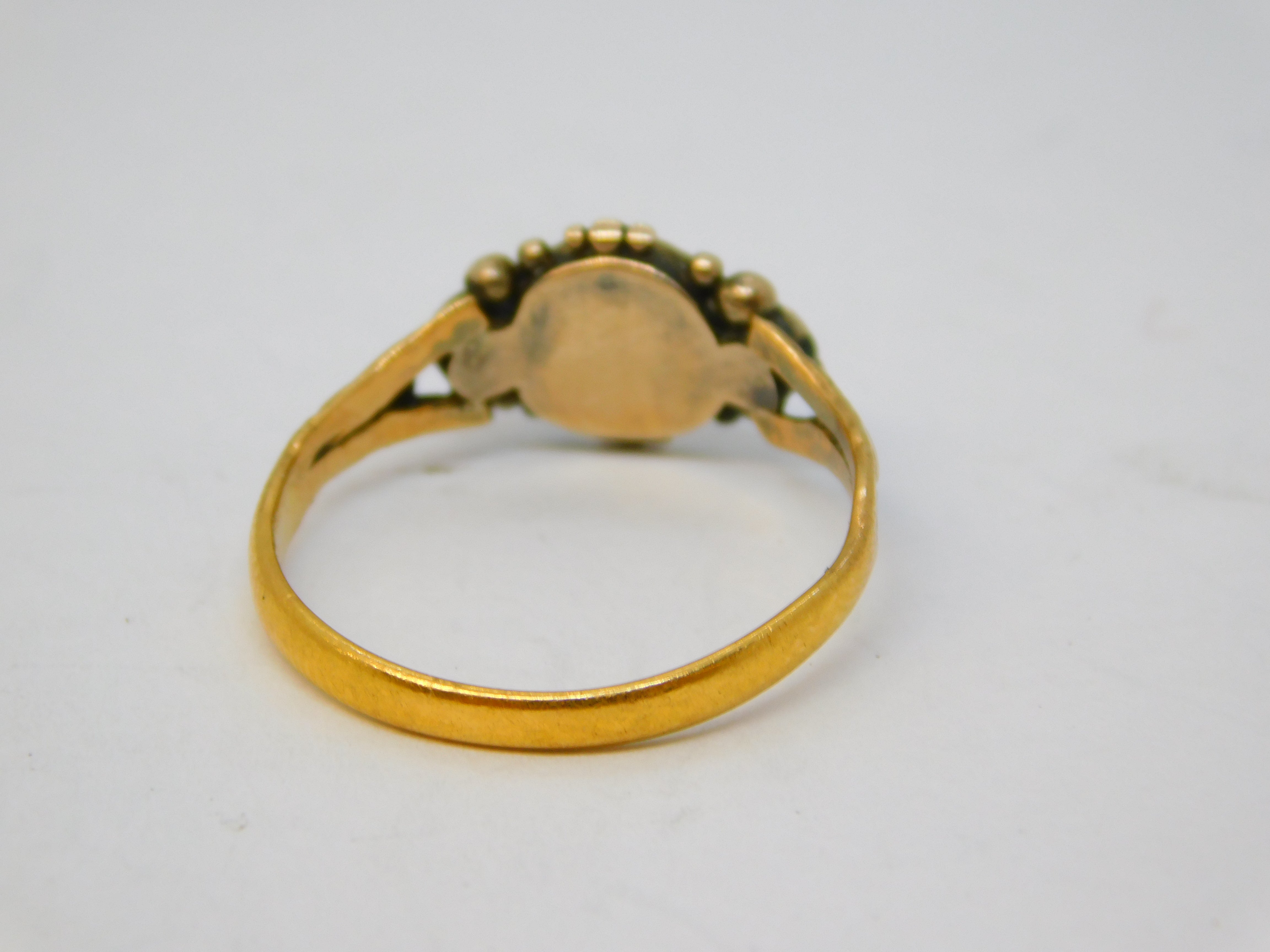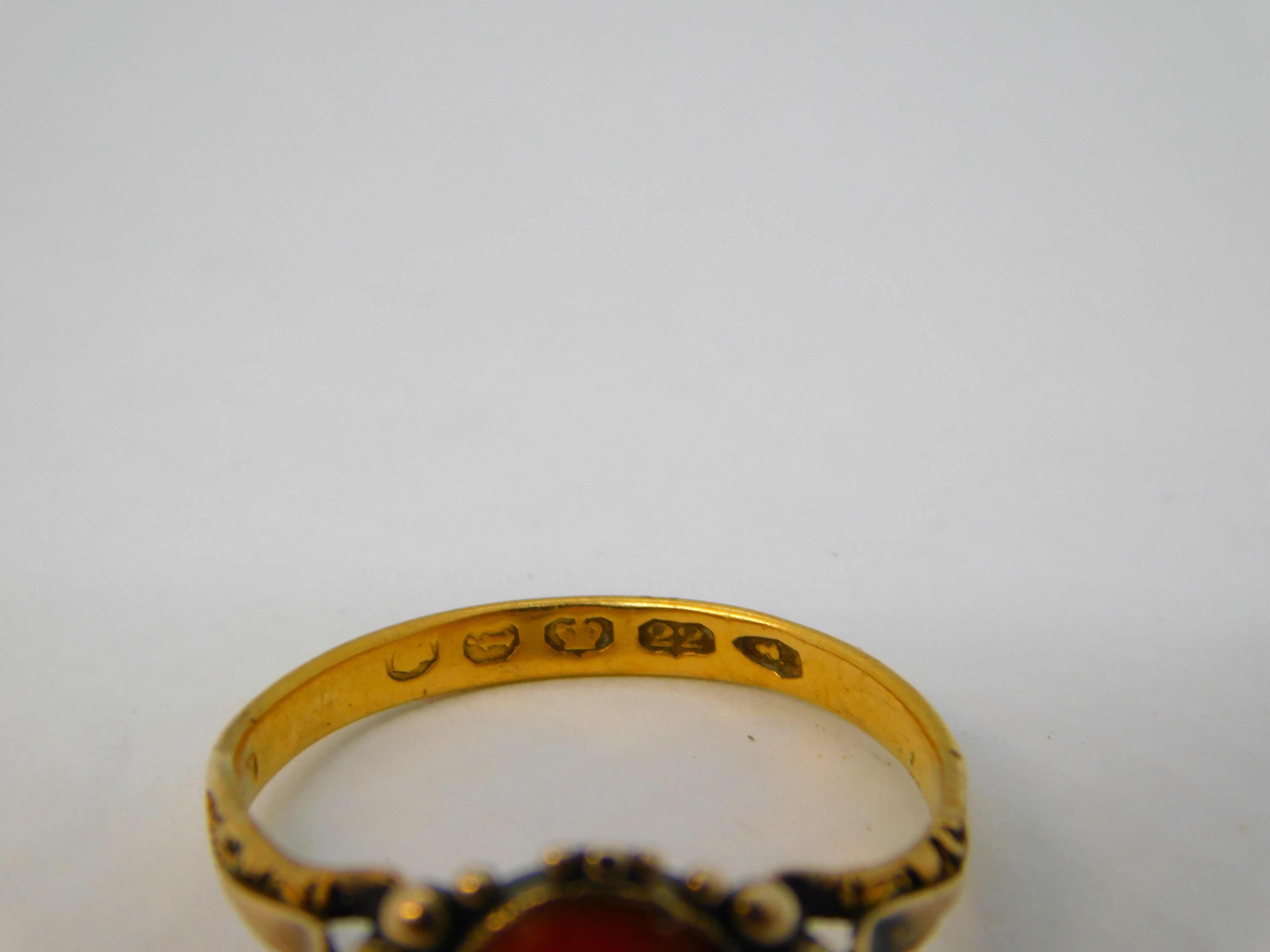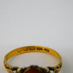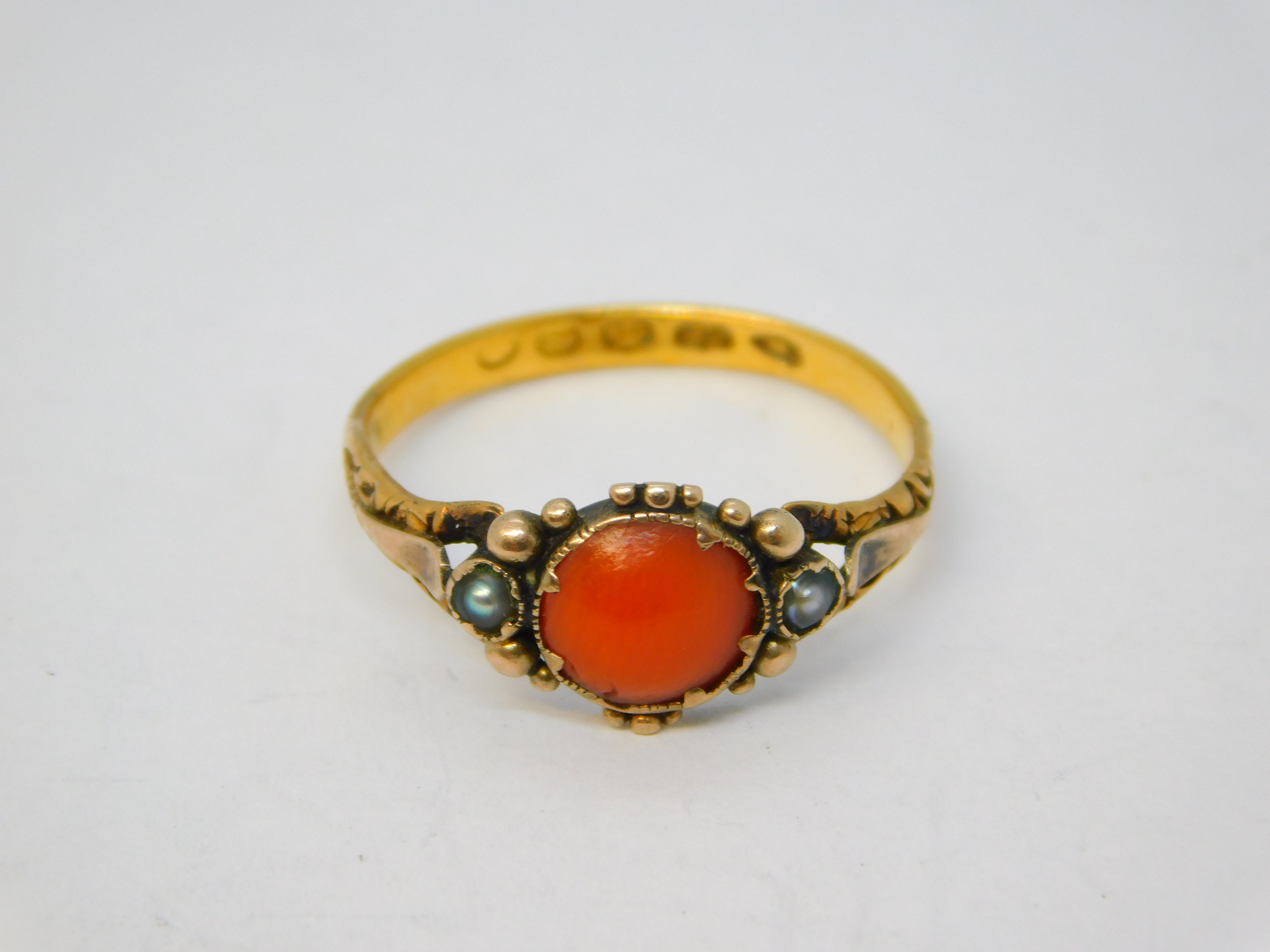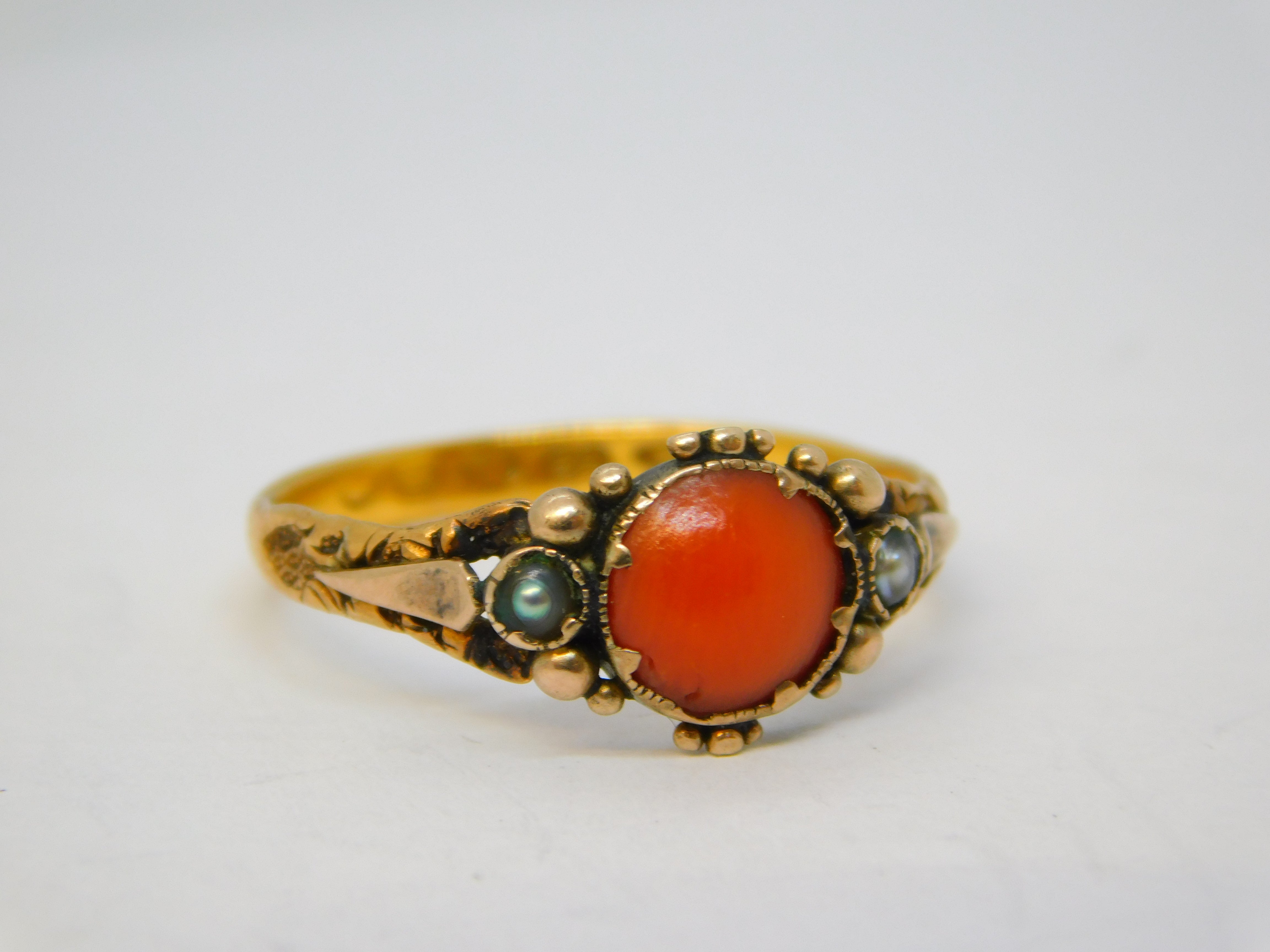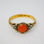 Victorian 22ct Yellow Gold, Coral & Seed Pearl Ring Antique 1864 London