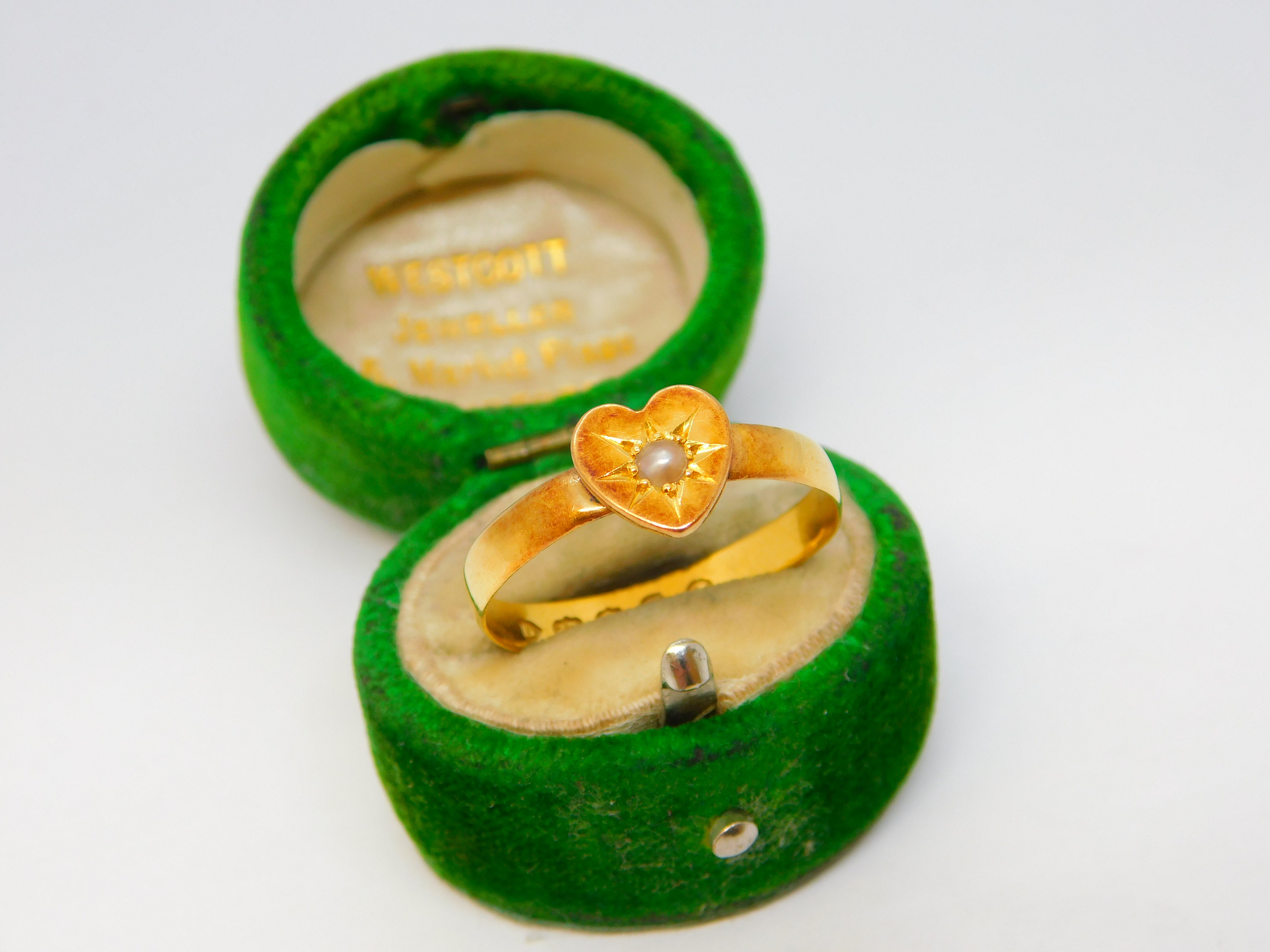 Victorian 22ct Yellow Gold Seed Pearl Set Sweetheart Ring Antique 1887 London