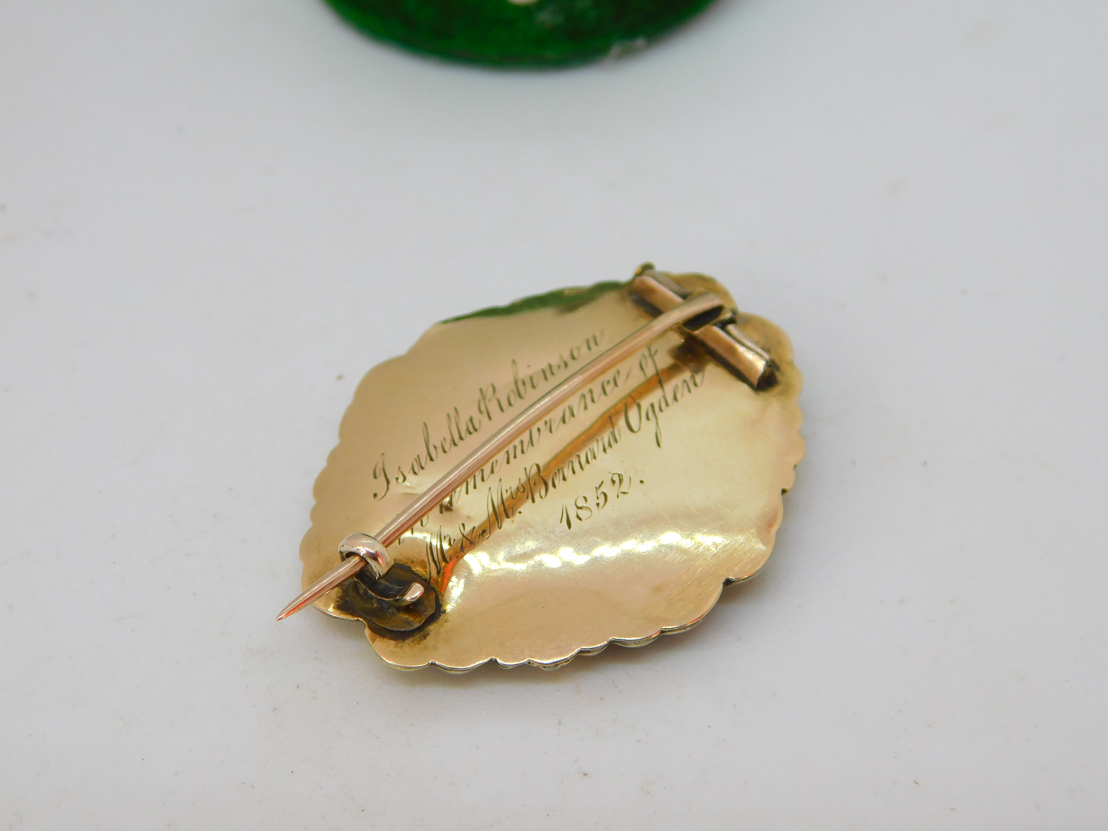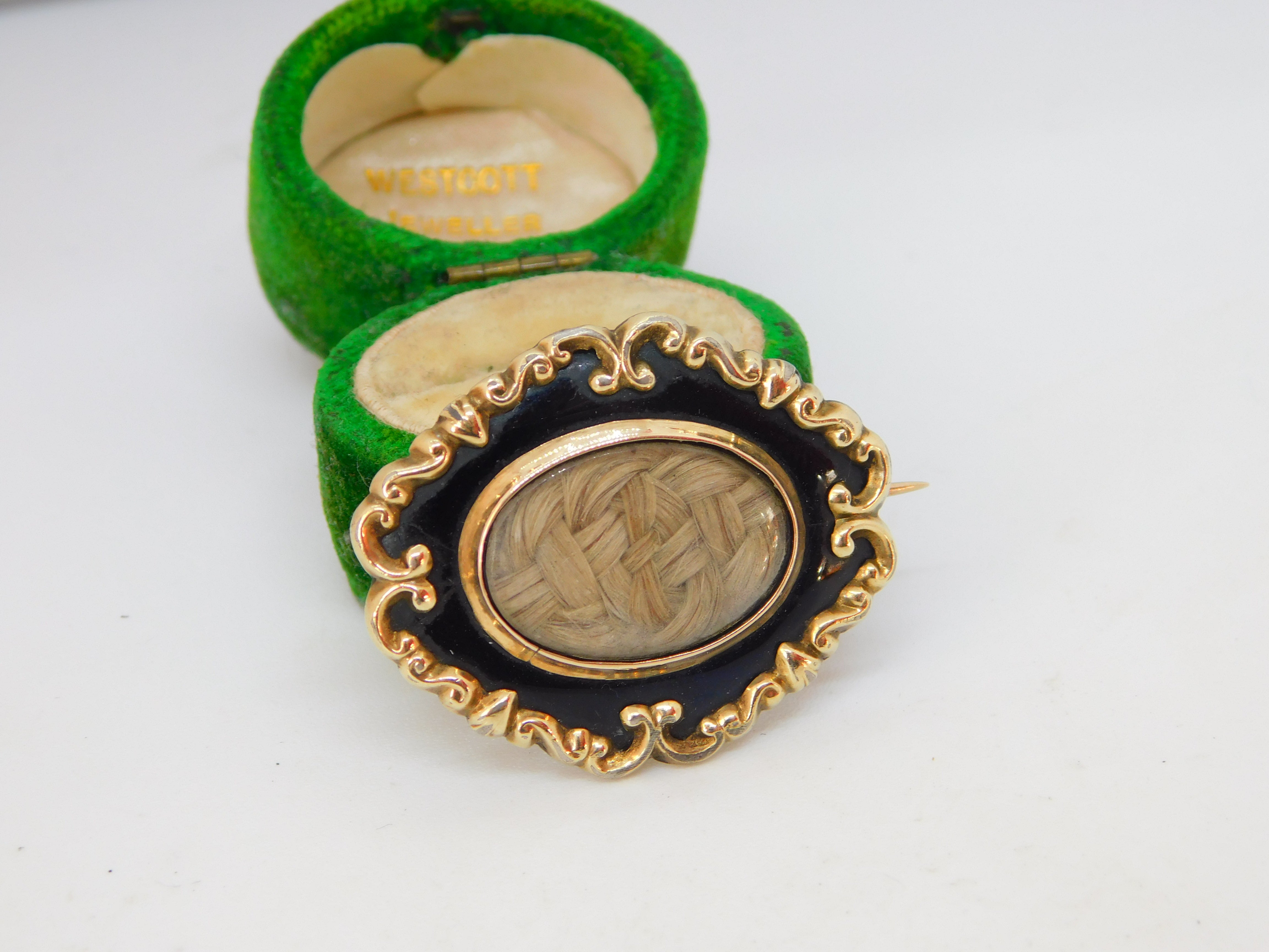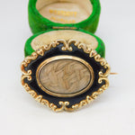 Victorian 9ct Gold, Black Enamel & Hair Mourning Brooch Antique 1852