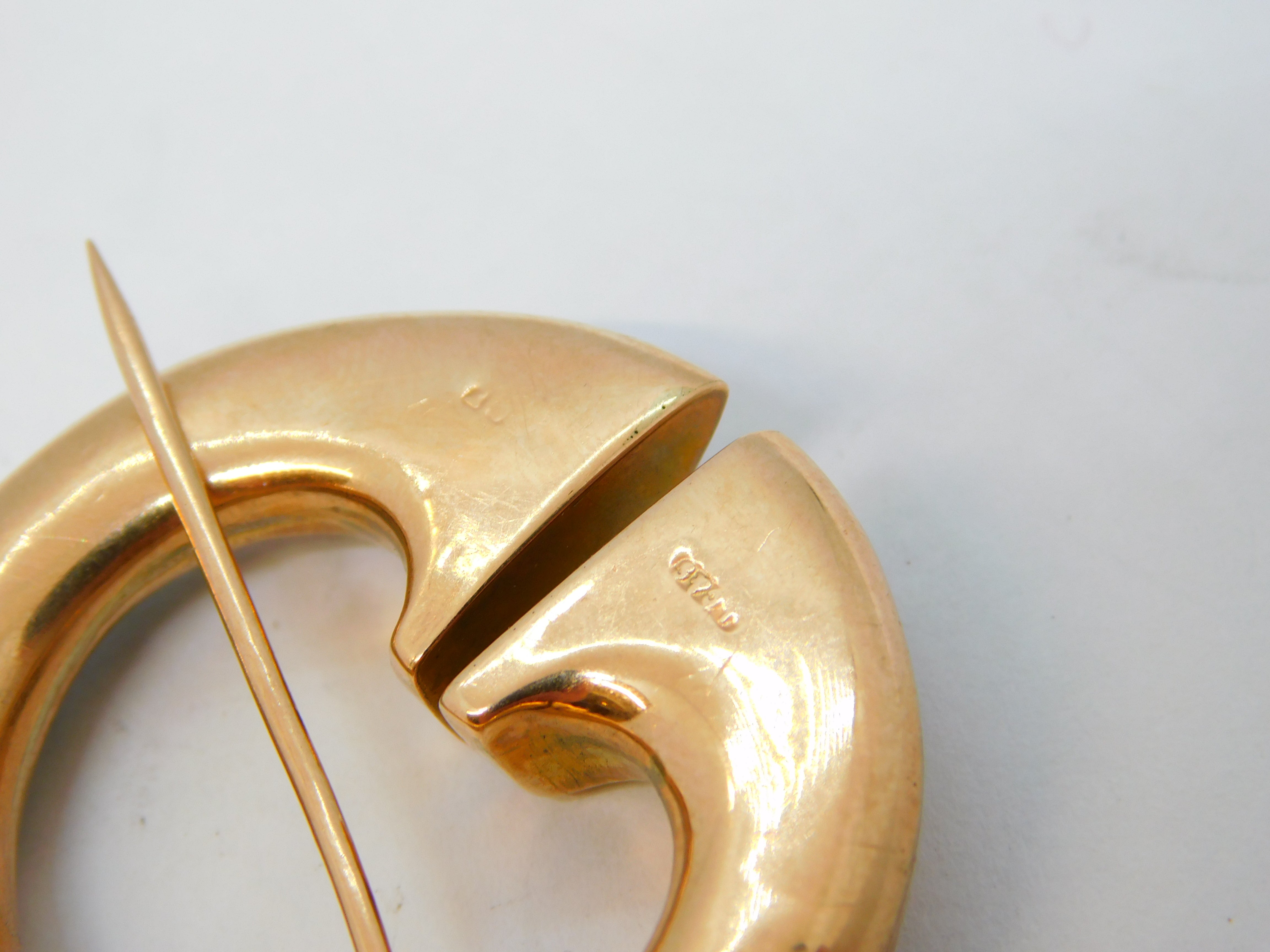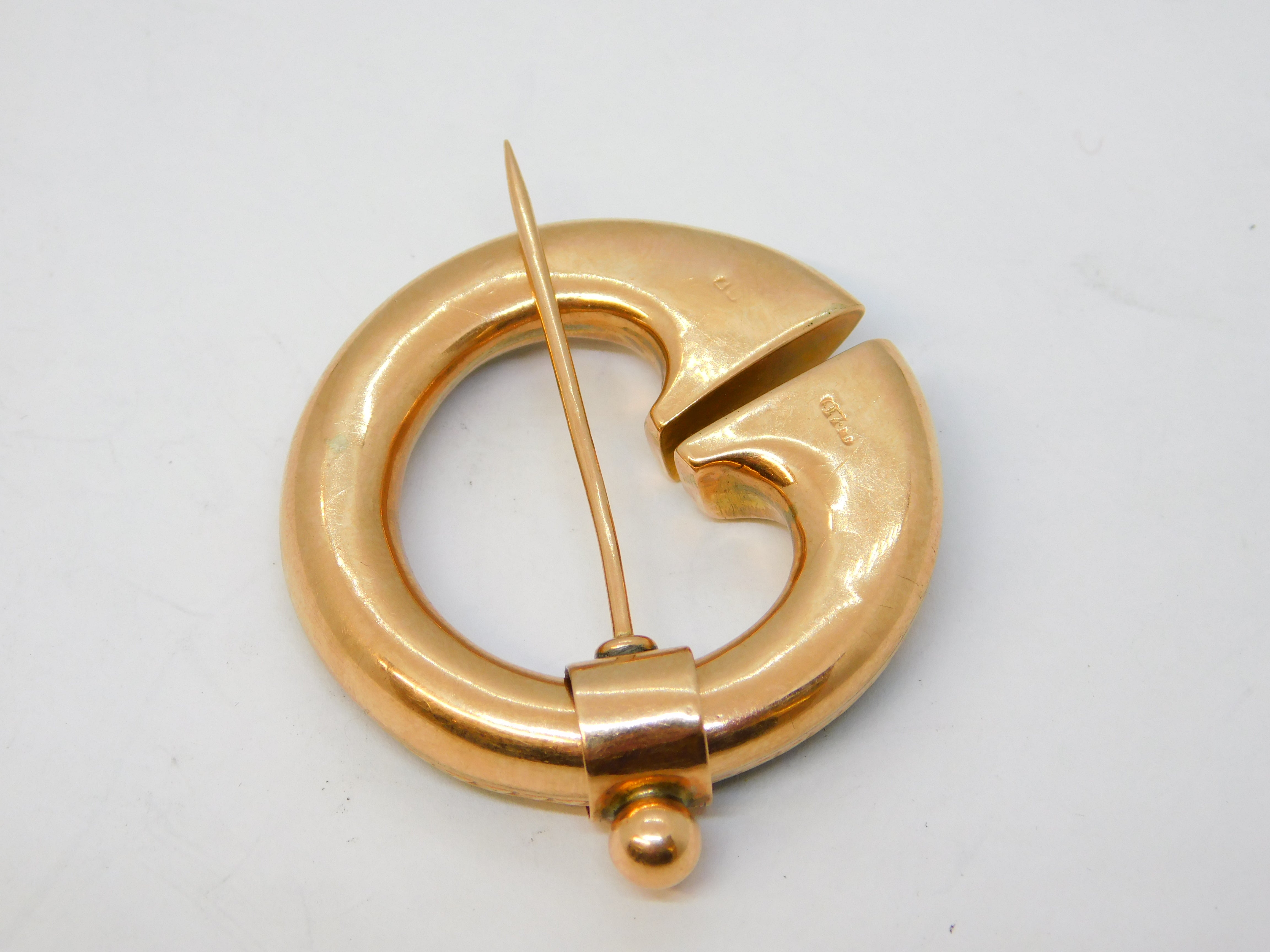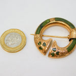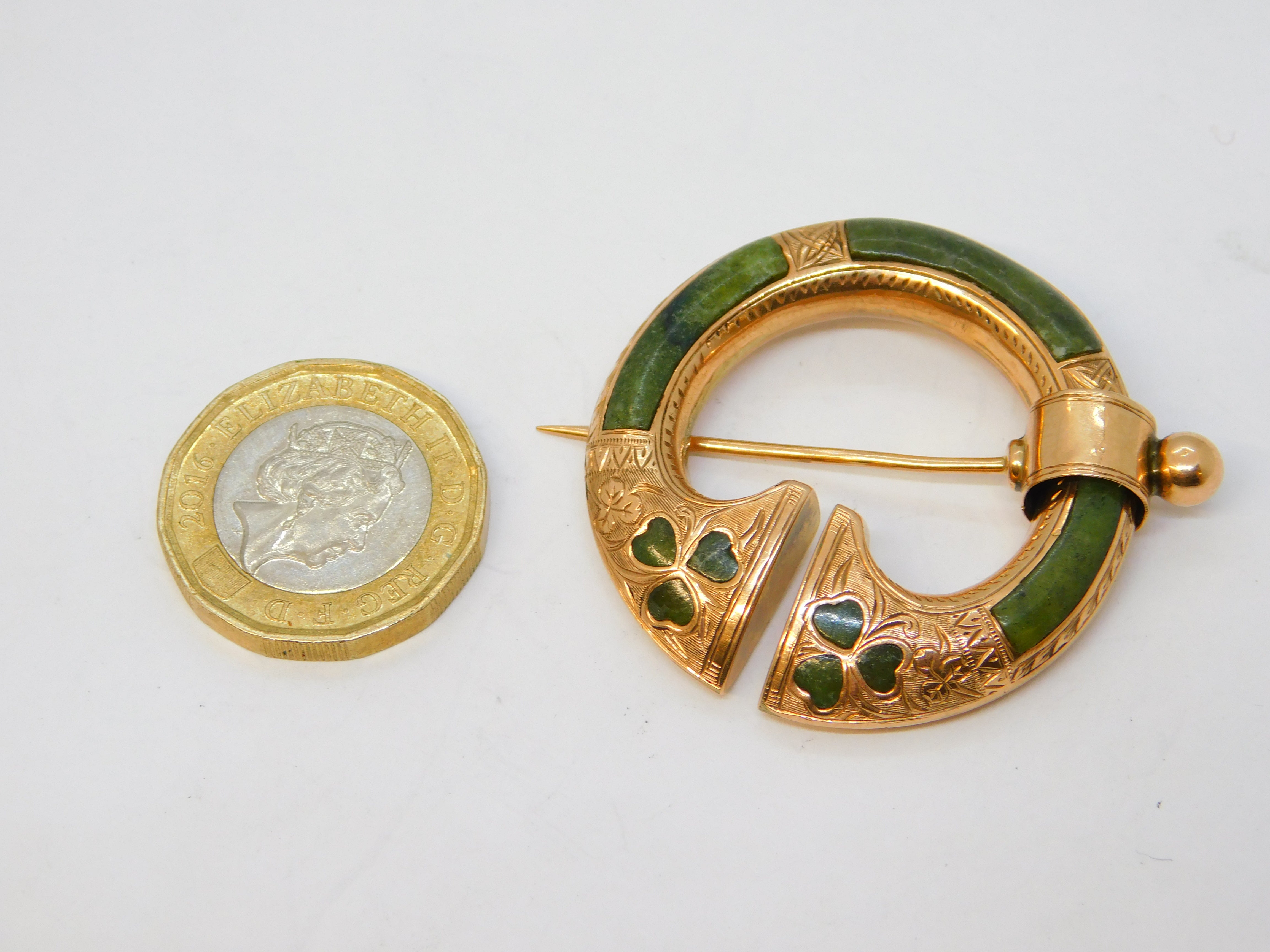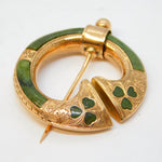 Victorian 9ct Gold & Connemara Marble Penannular Celtic Shamrock Brooch Antique