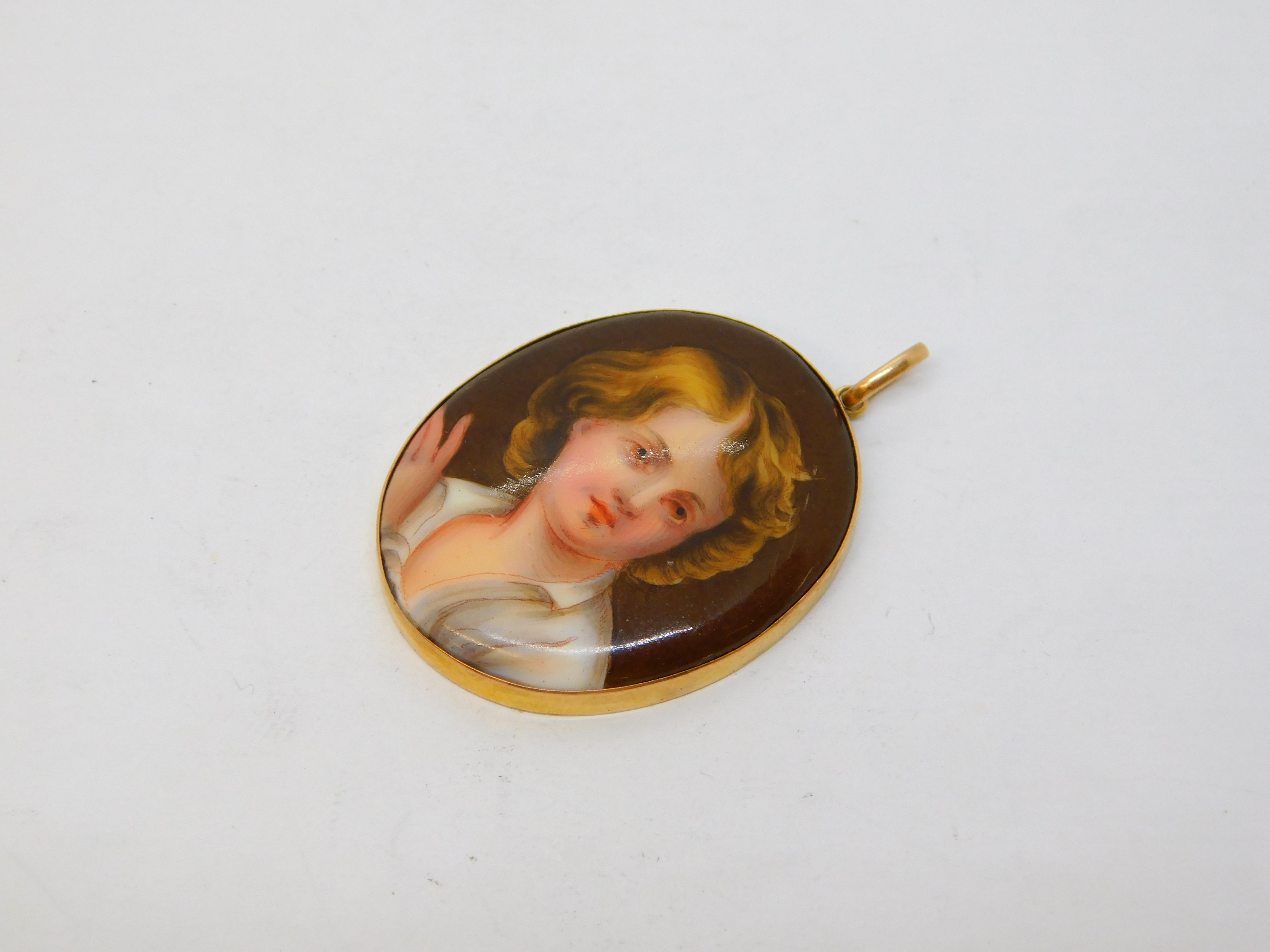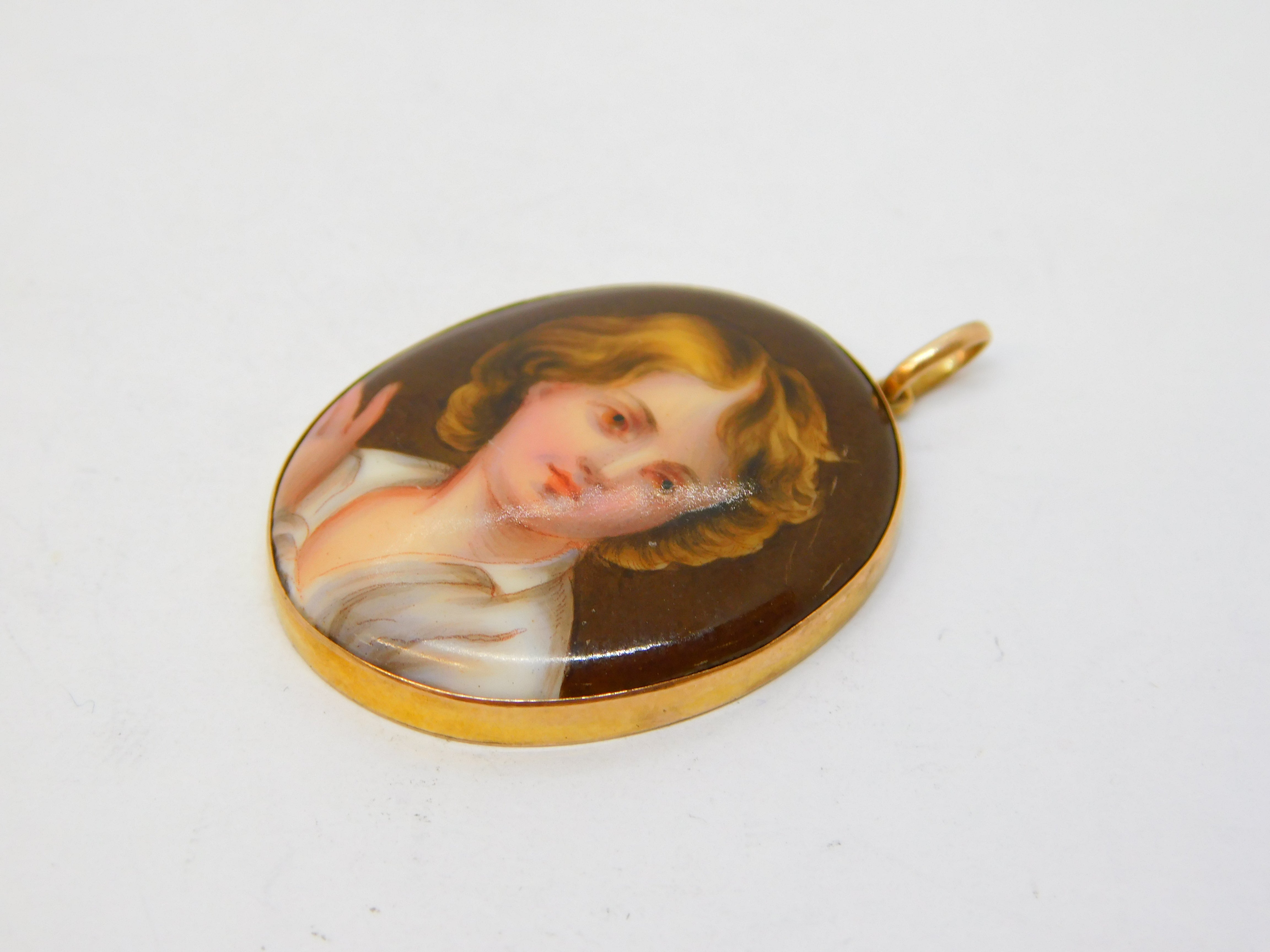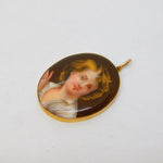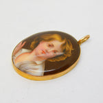 Victorian 9ct Gold Mounted Porcelain Portrait Mourning Locket Pendant Antique