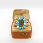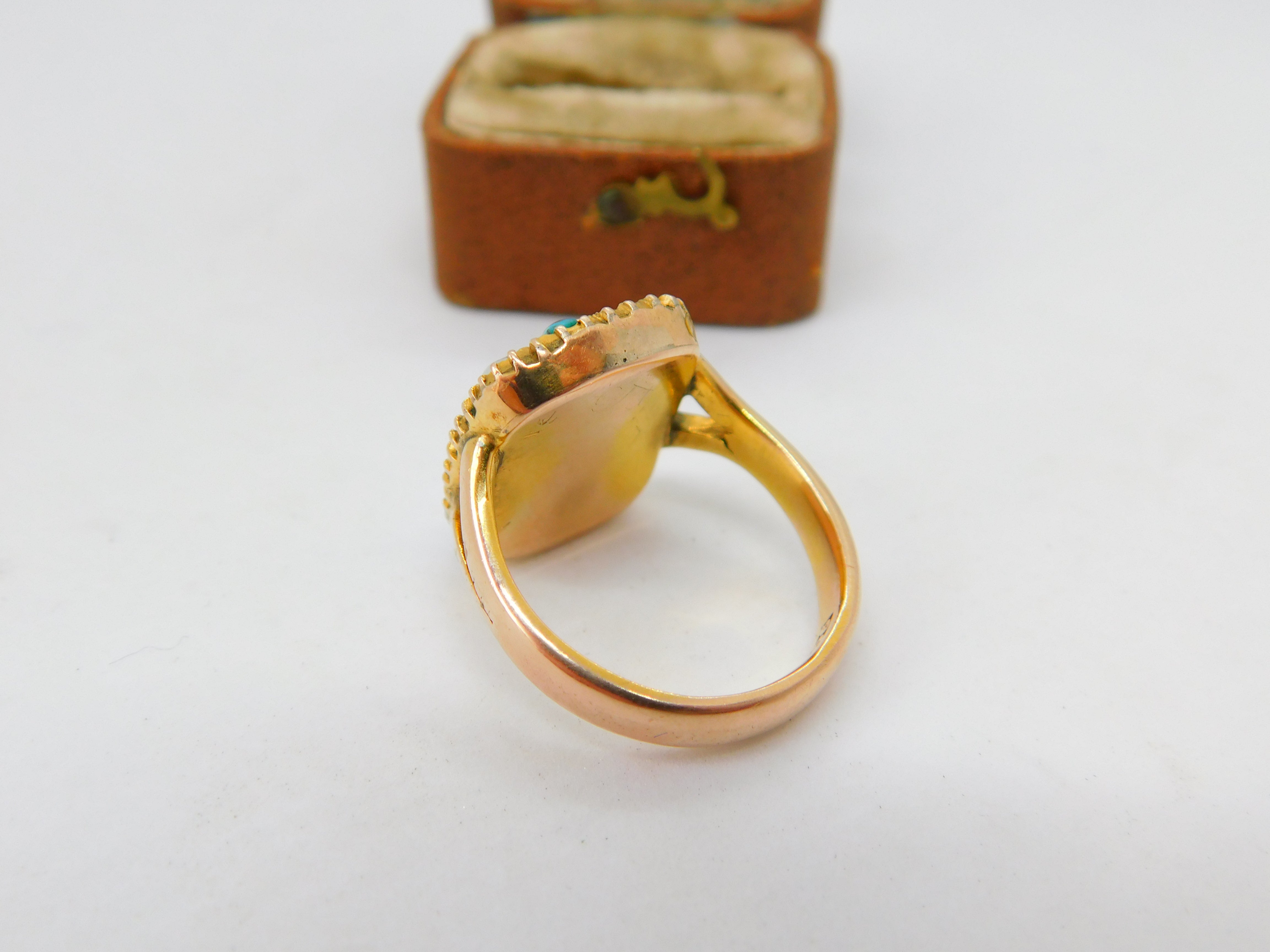 Victorian 9ct Gold, Turquoise & Pearl Hair Set Mourning Ring Antique c1840