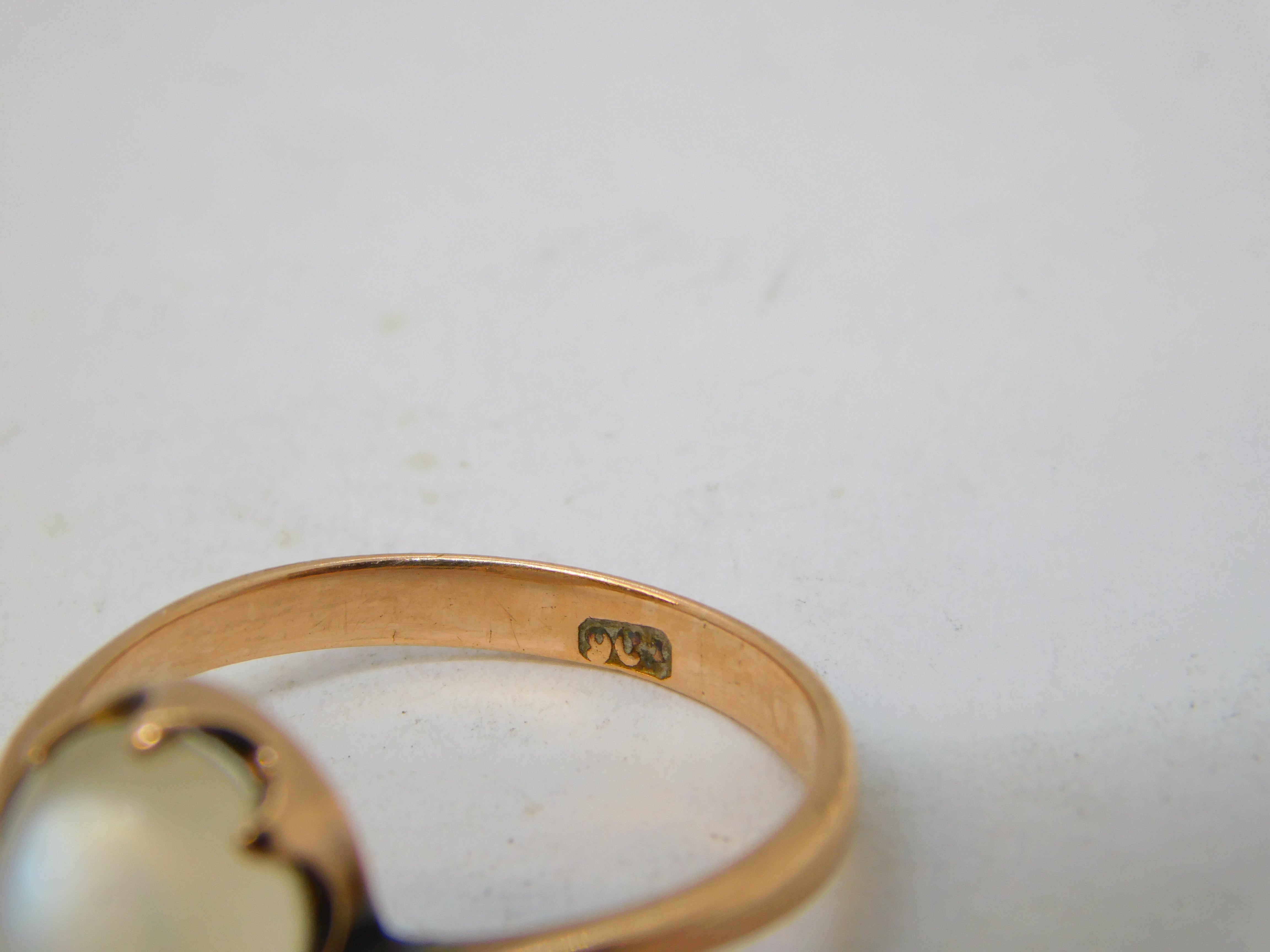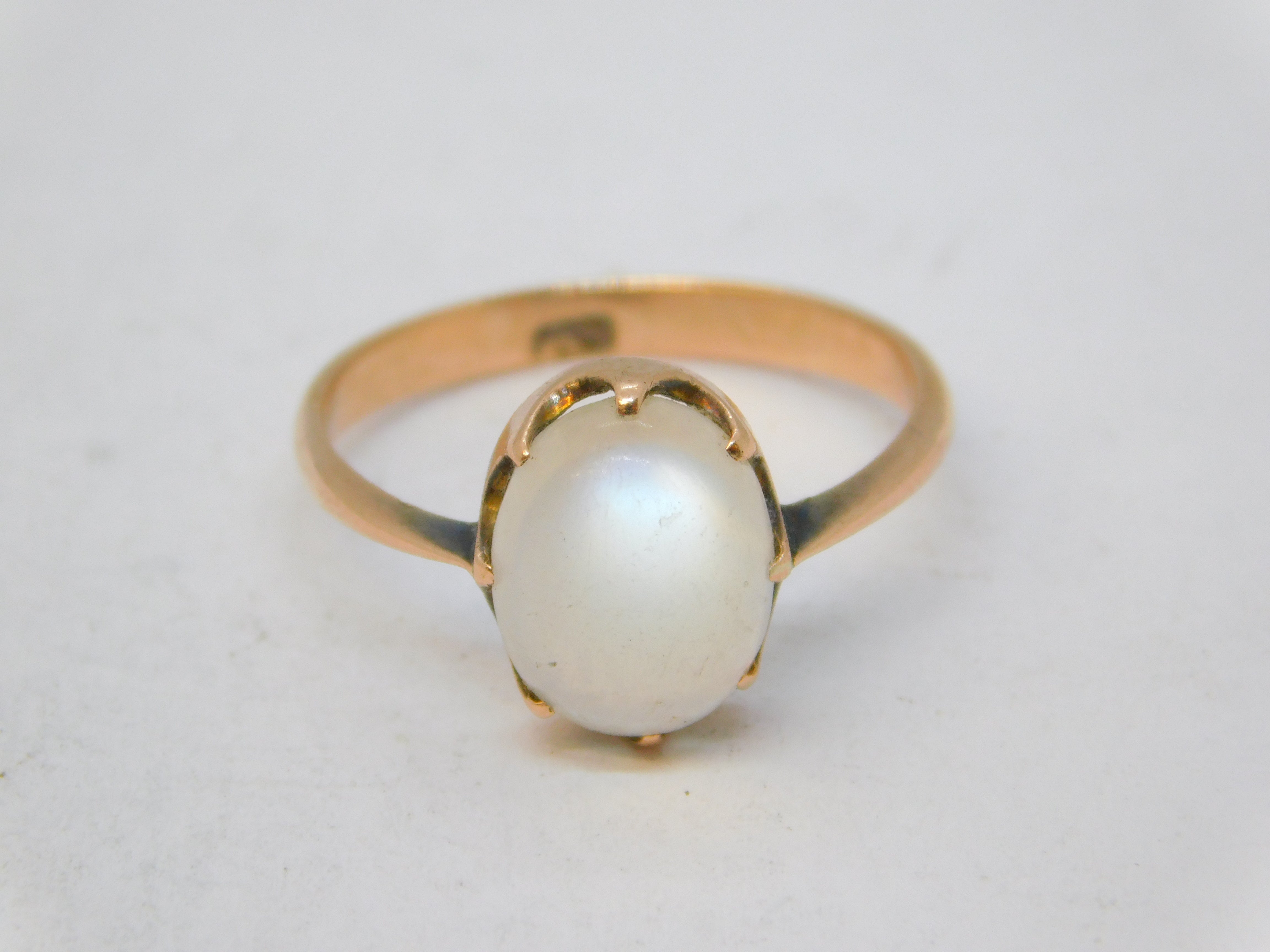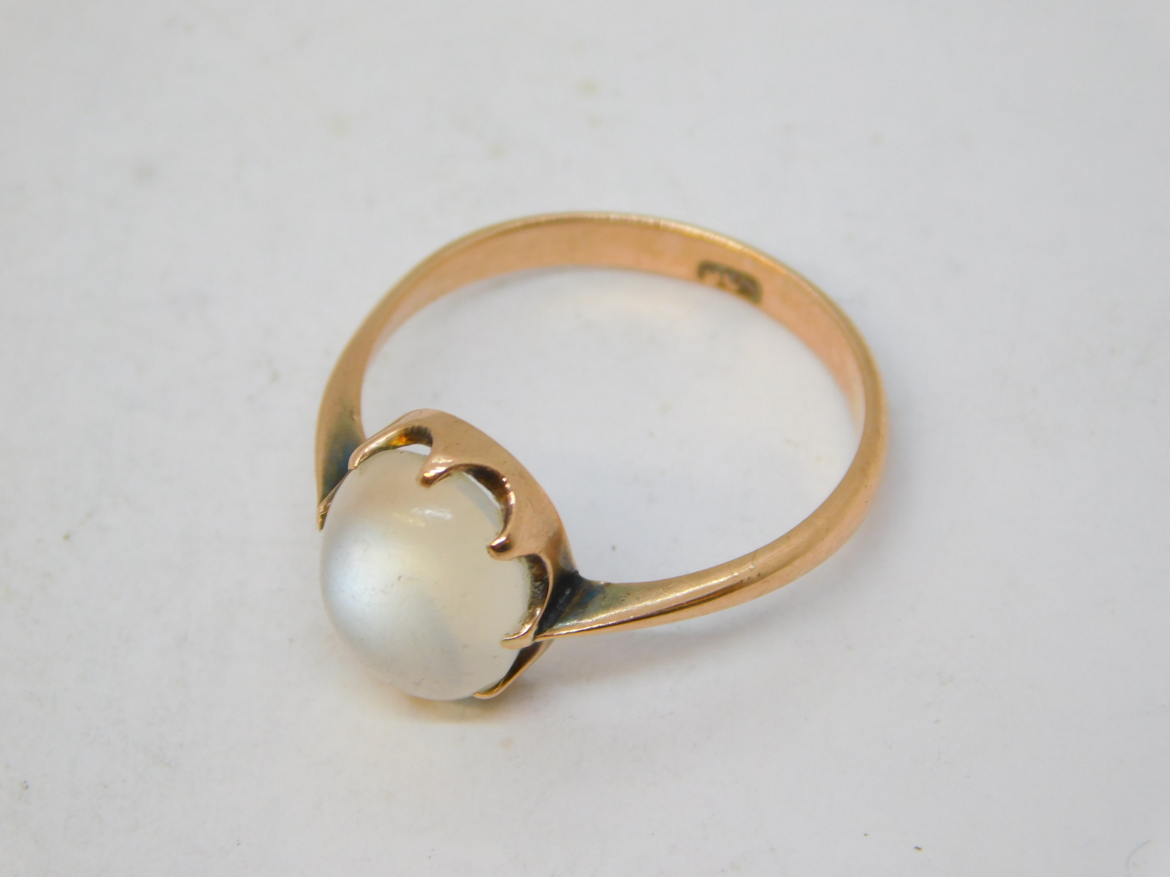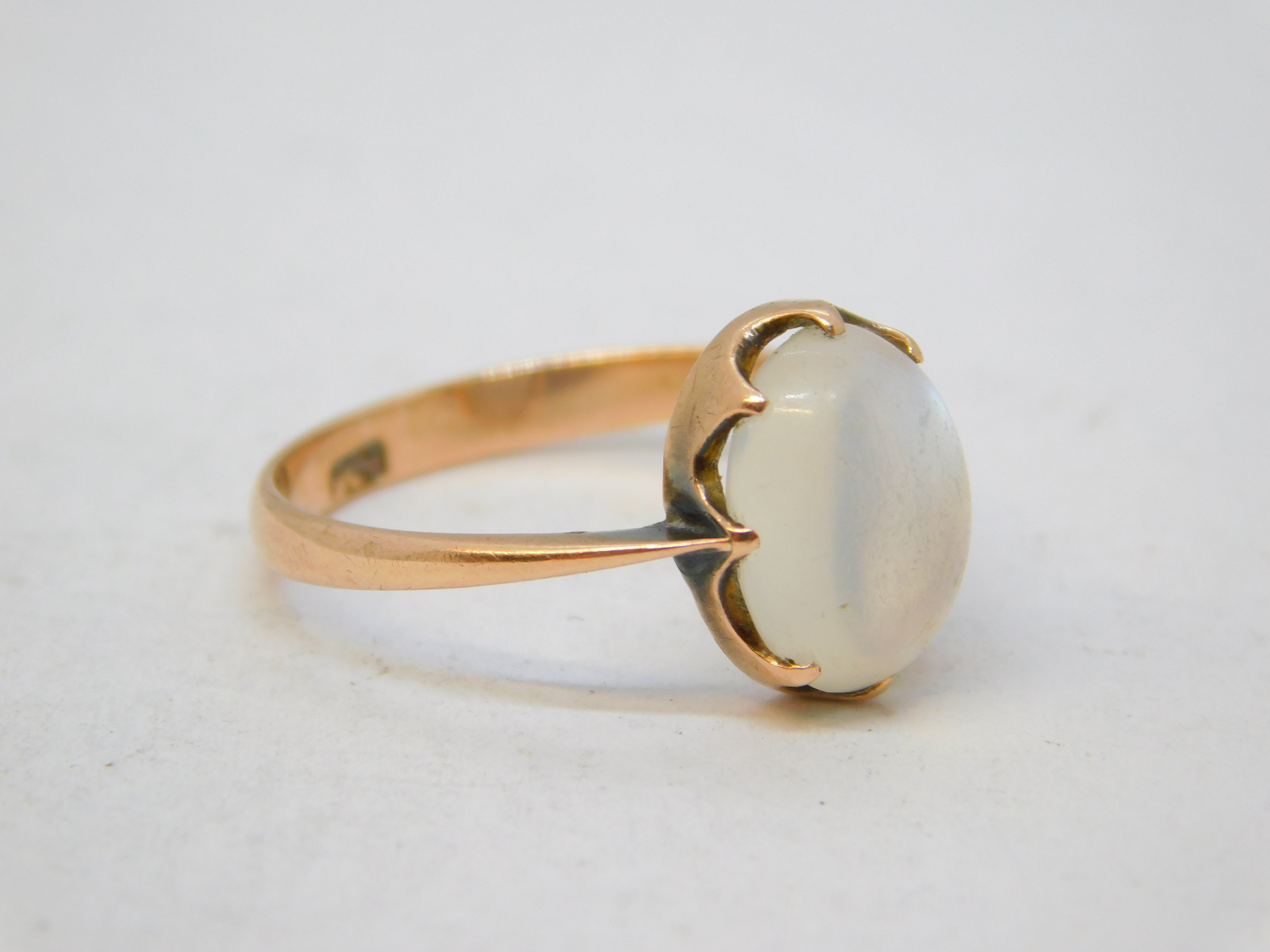 Victorian 9ct Rose Gold Cabochon Moonstone Dress Ring Antique c1880