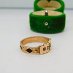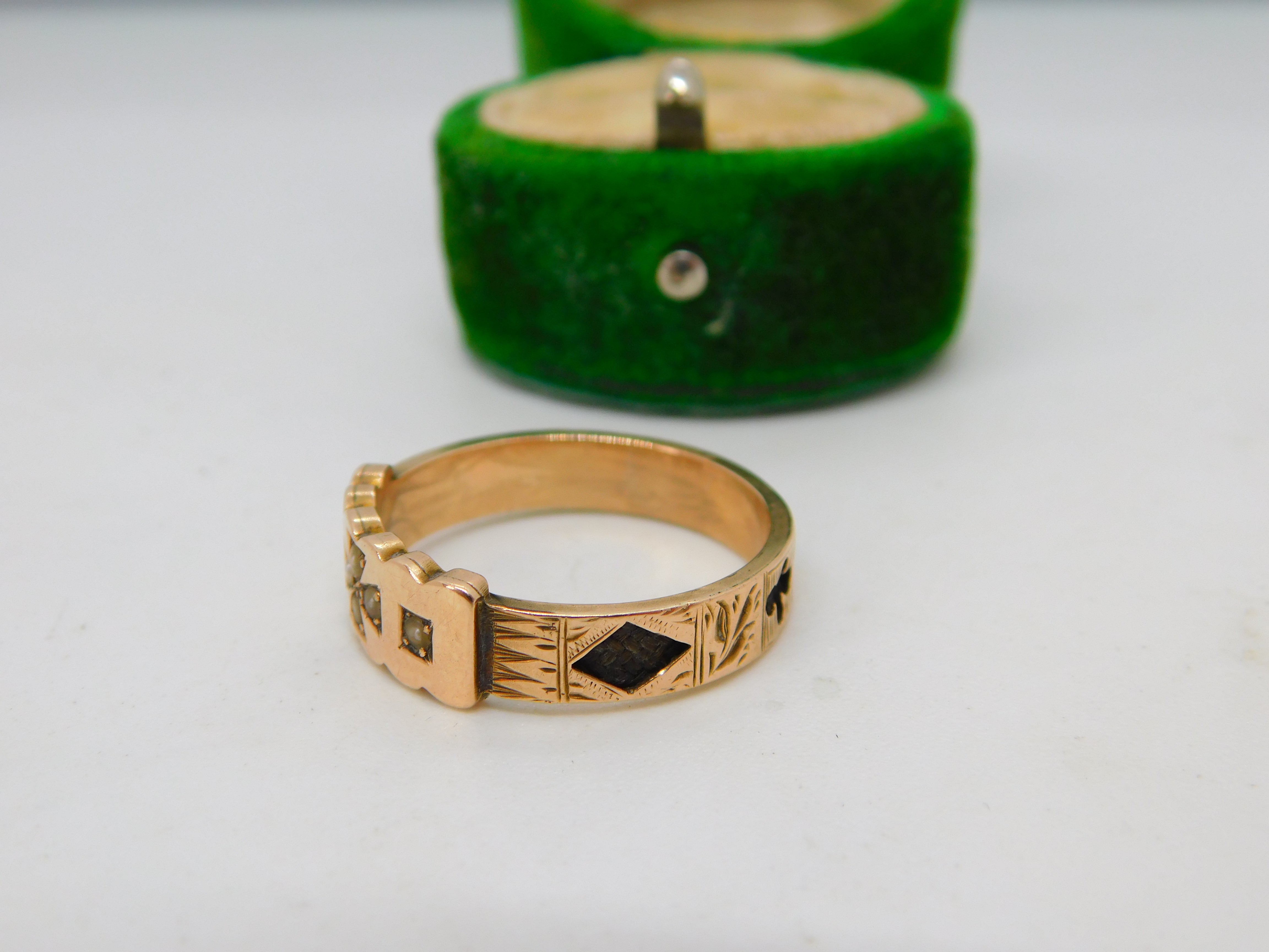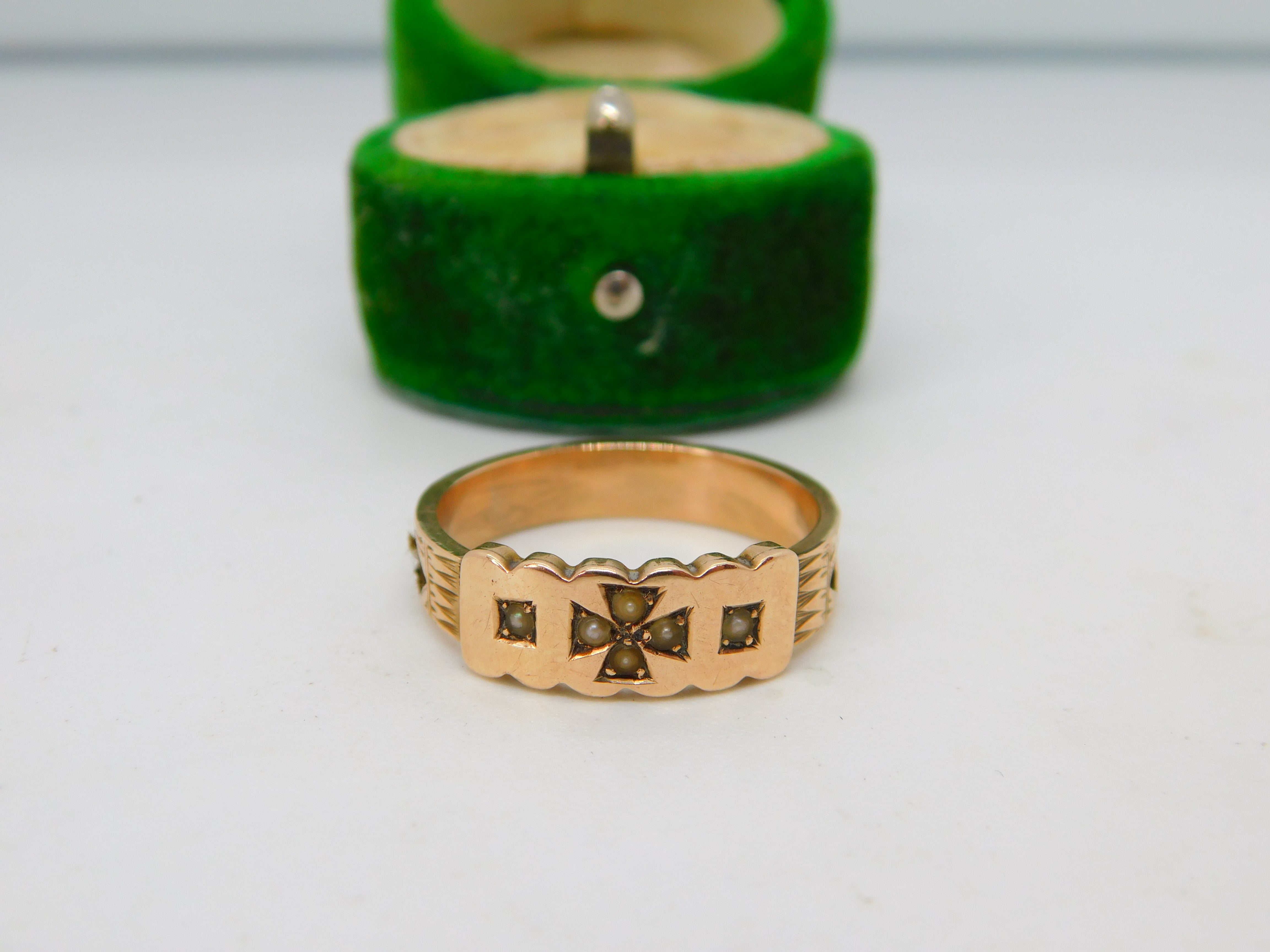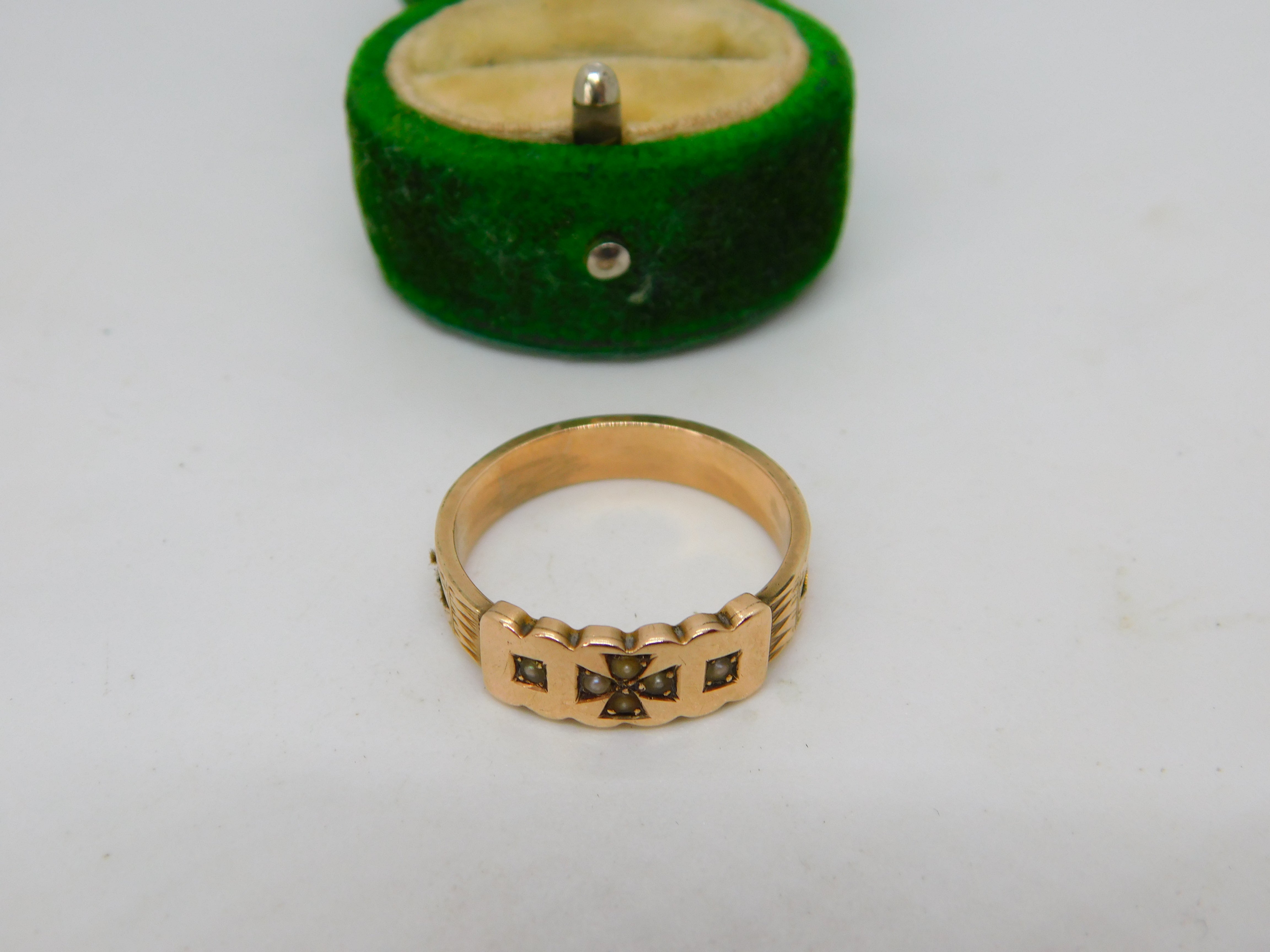 Victorian 9ct Rose Gold Hair Set Maltese Cross Mourning Ring Antique c1860