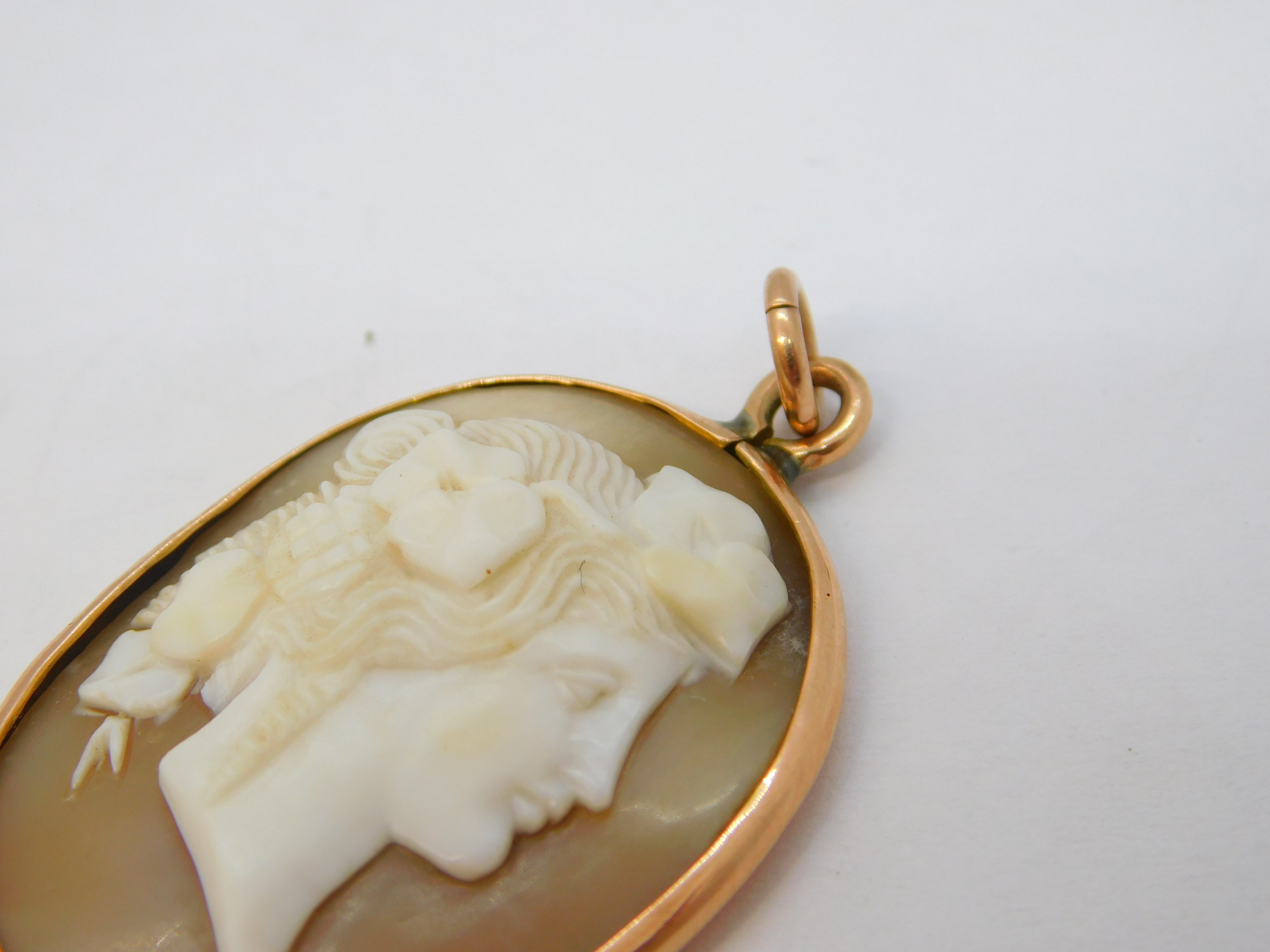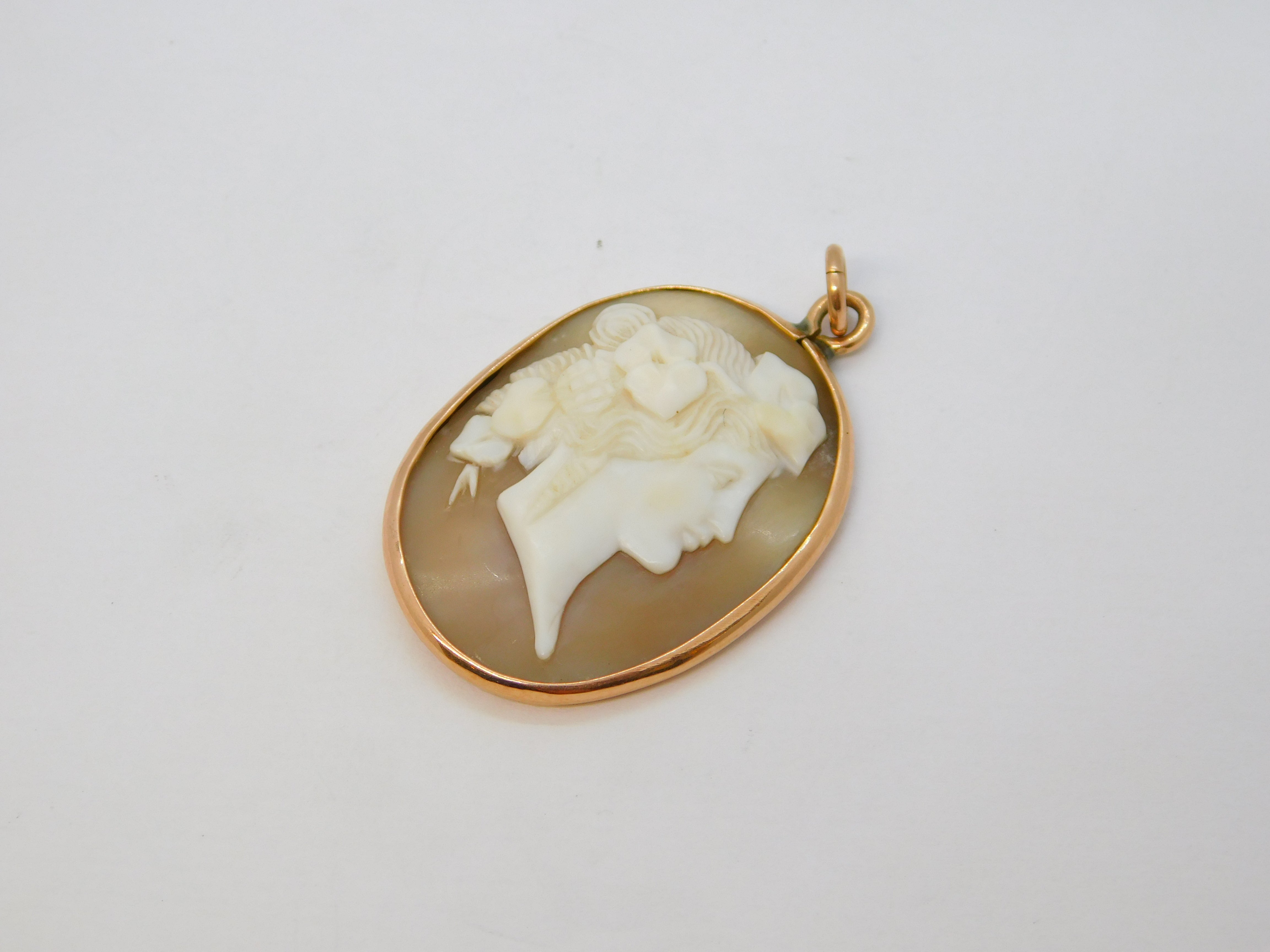 Victorian 9ct Rose Gold Mounted Carved Shell Cameo Pendant Antique c1860