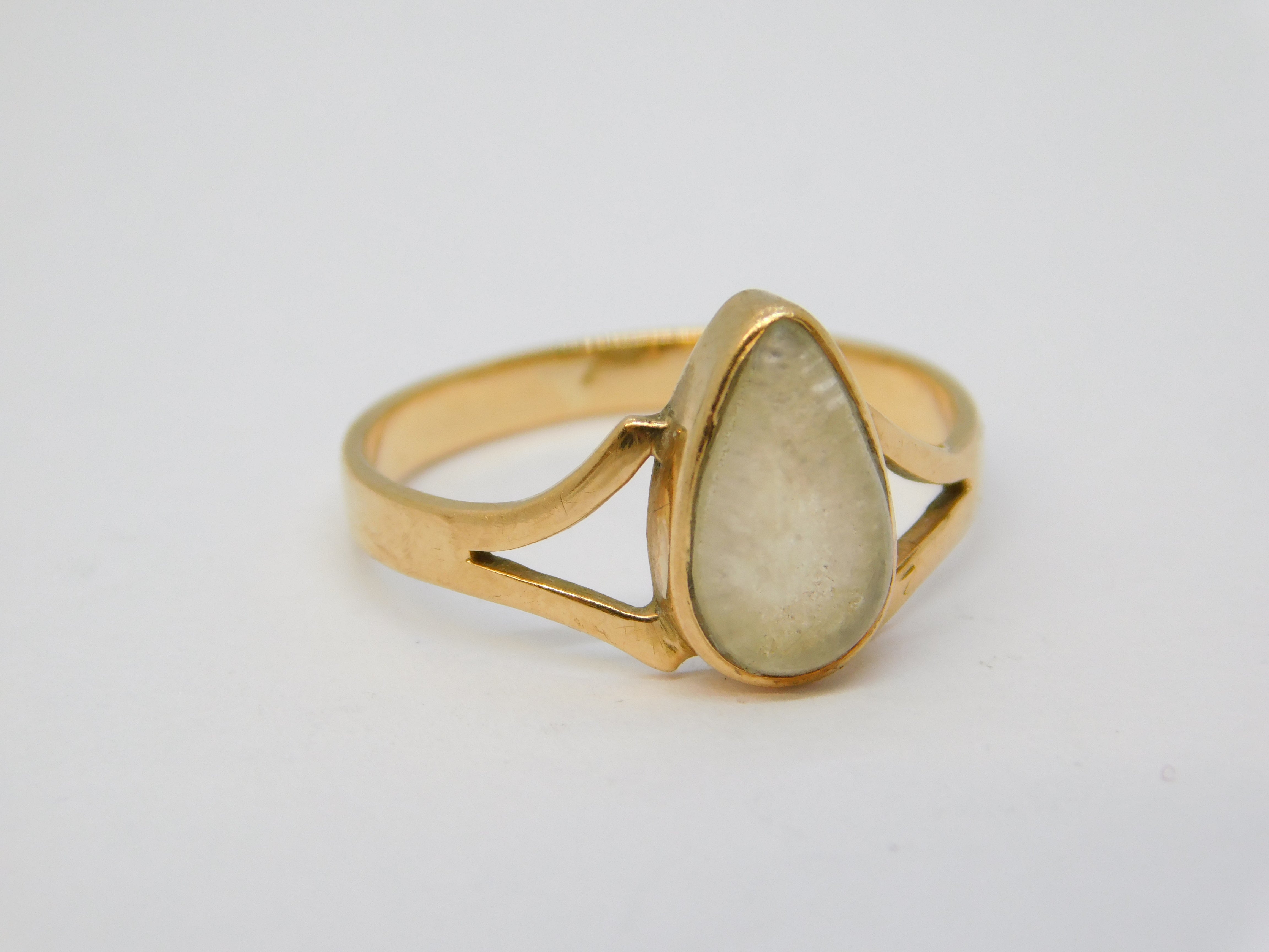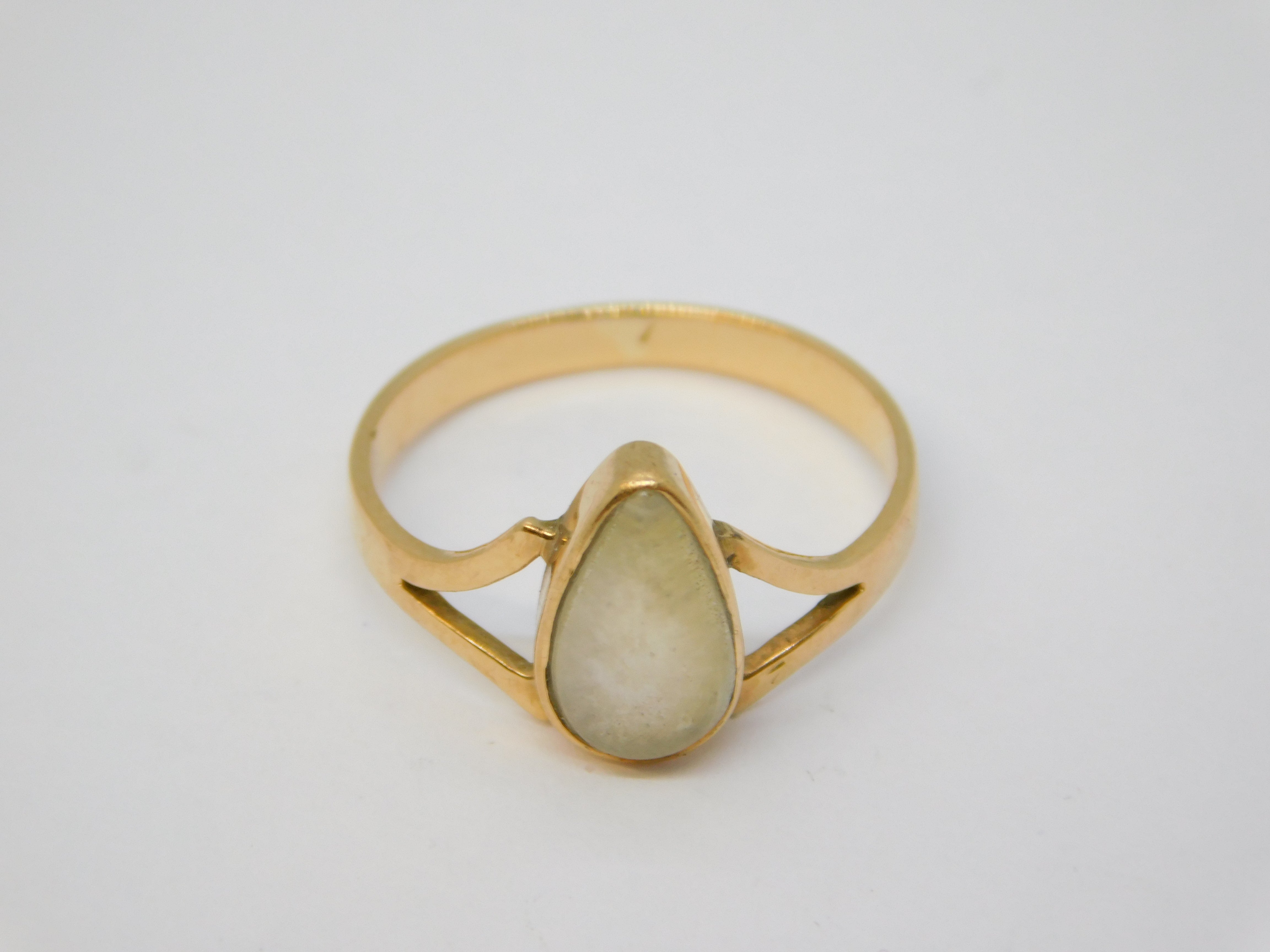 Victorian 9ct Rose Gold Pear-Cut Moonstone Dress Ring Antique c1890