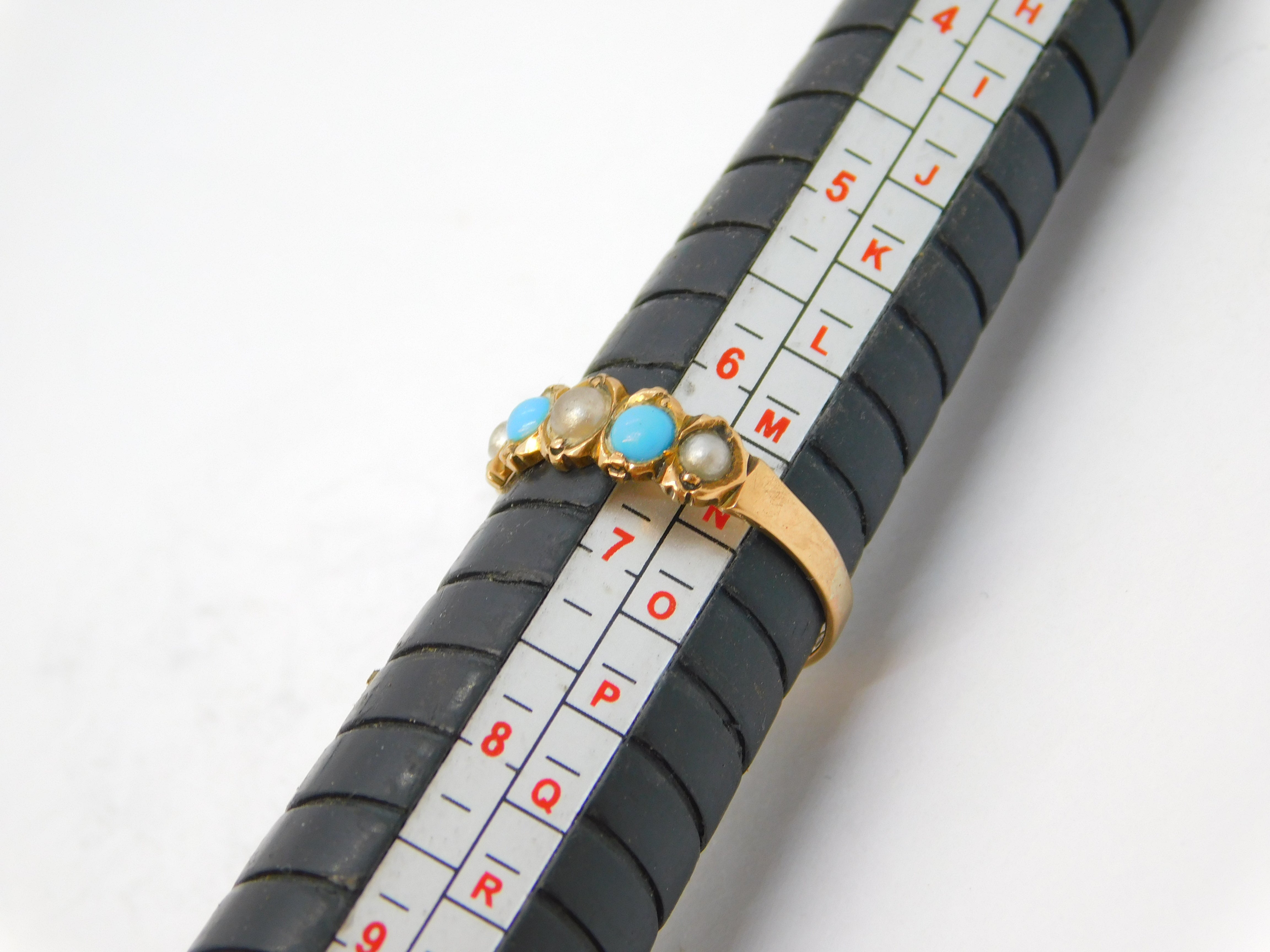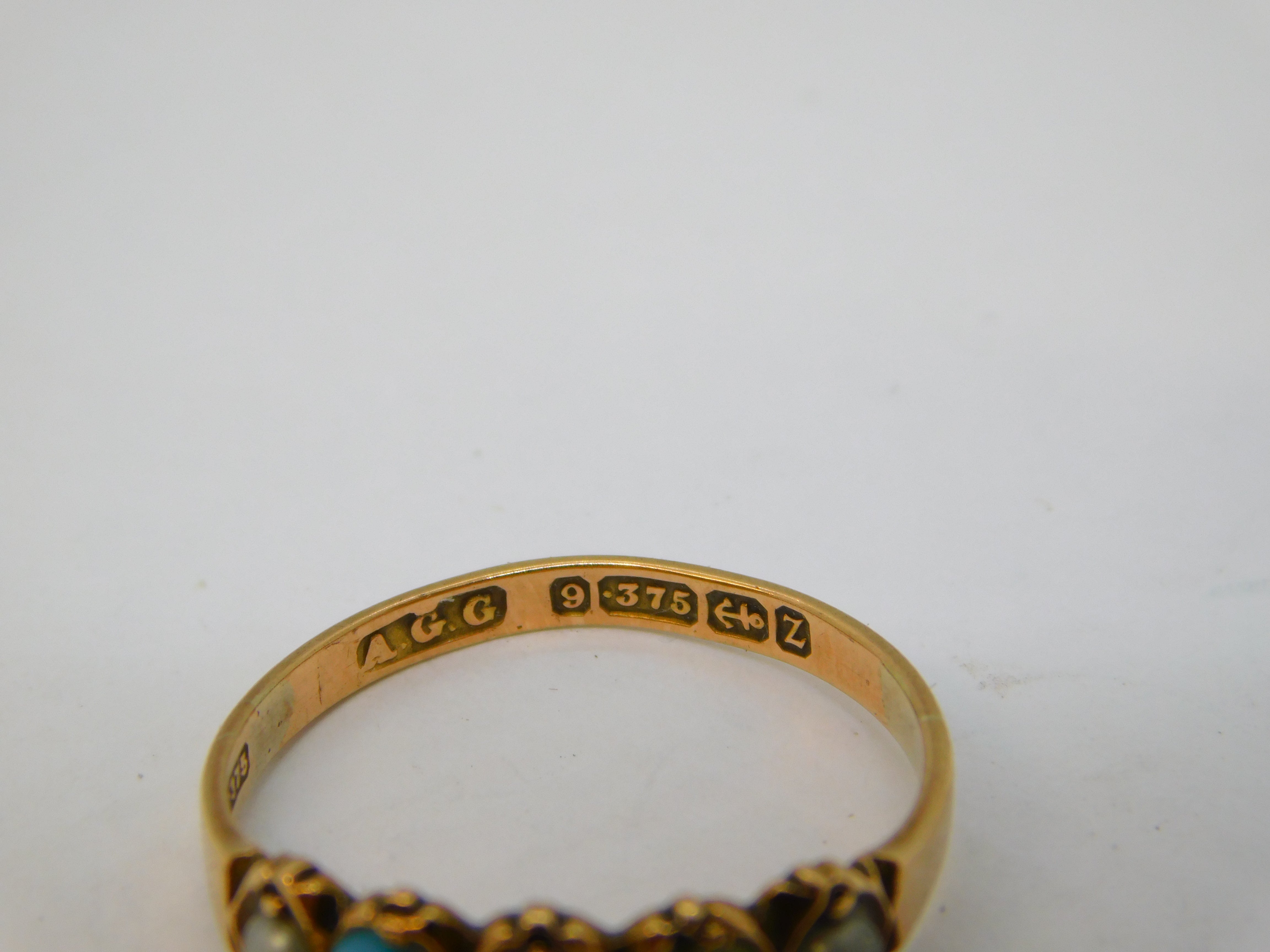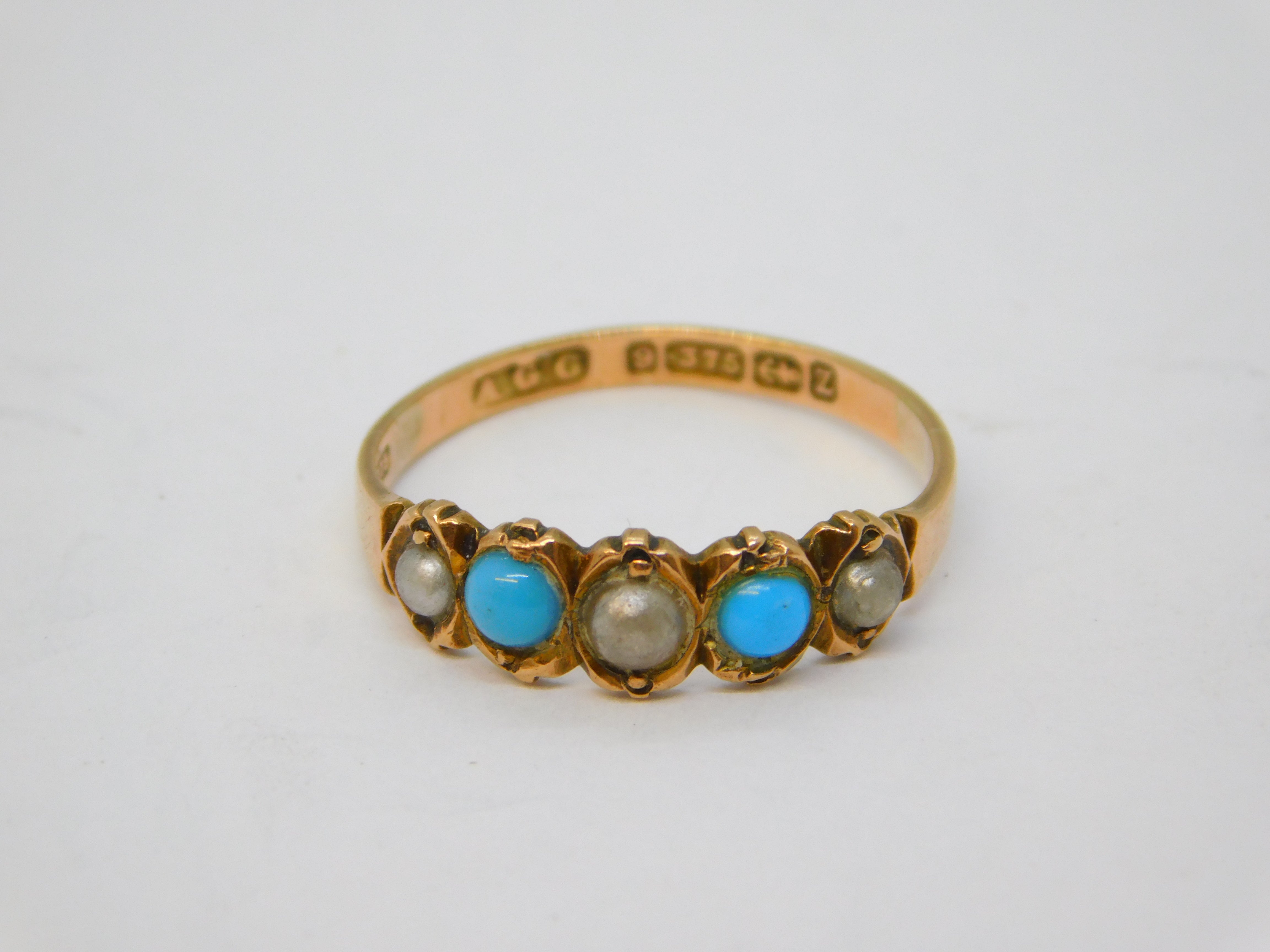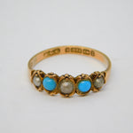 Victorian 9ct Rose Gold, Turquoise & Pearl Dress Ring Antique 1899 Birmingham
