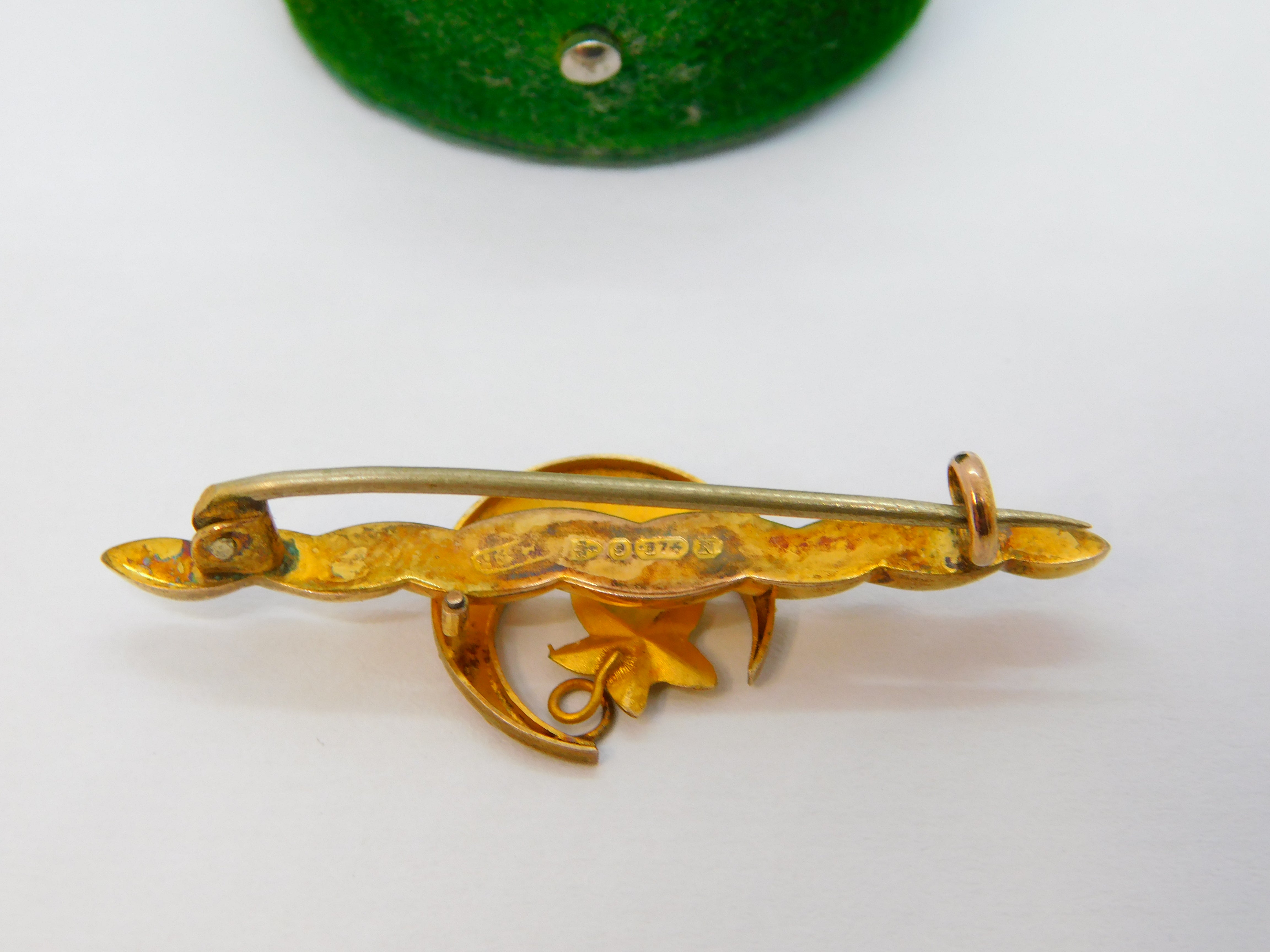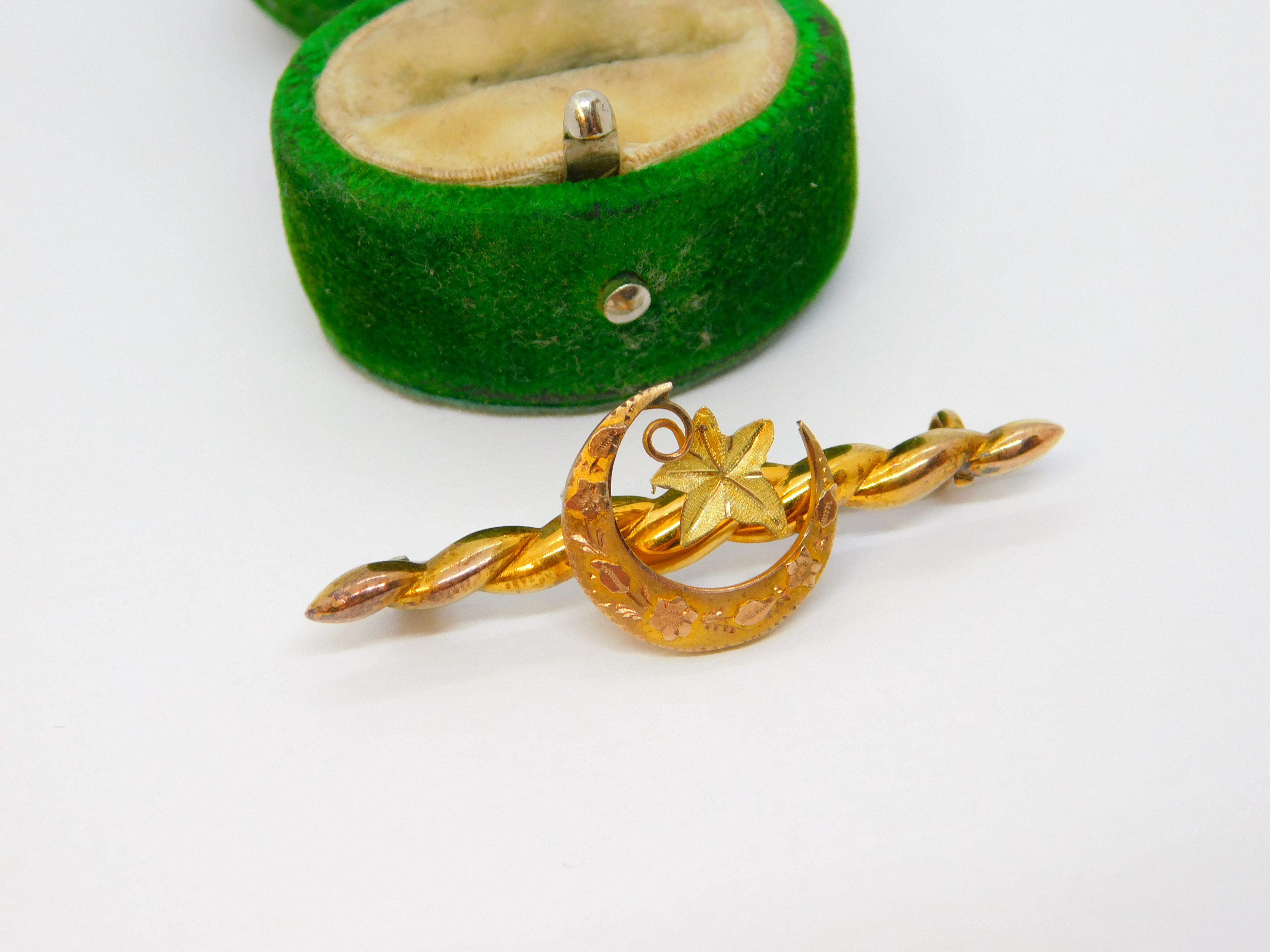 Victorian 9ct Yellow Gold Crescent Form Sweetheart Brooch Antique 1896 Chester