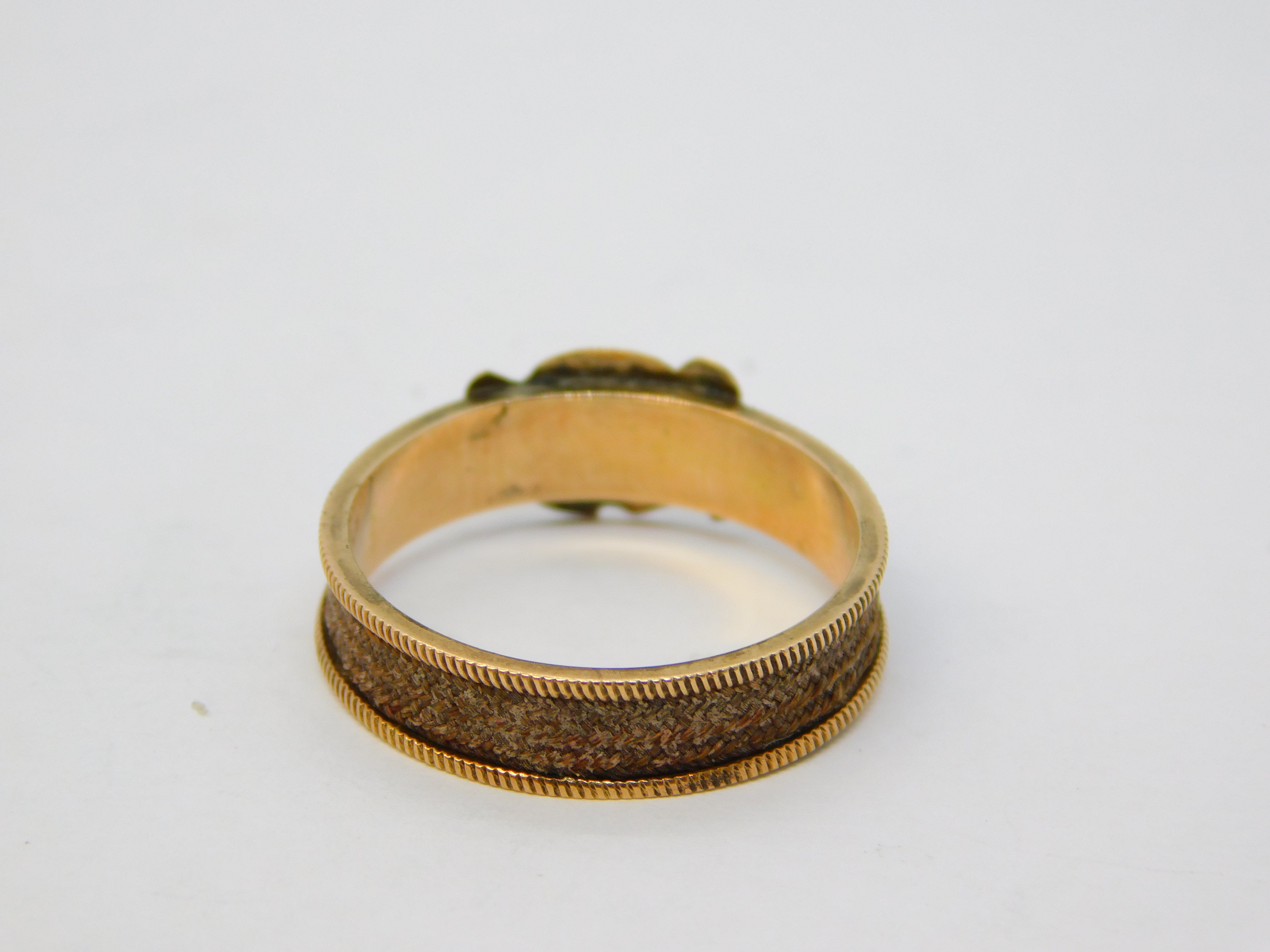 Victorian 9ct Yellow Gold Hair Set Mourning Ring Antique c1840