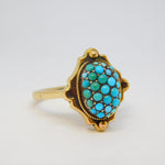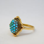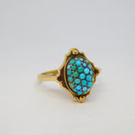 Victorian 9ct Yellow Gold Pave Set Turquoise Dress Ring Antique c1890