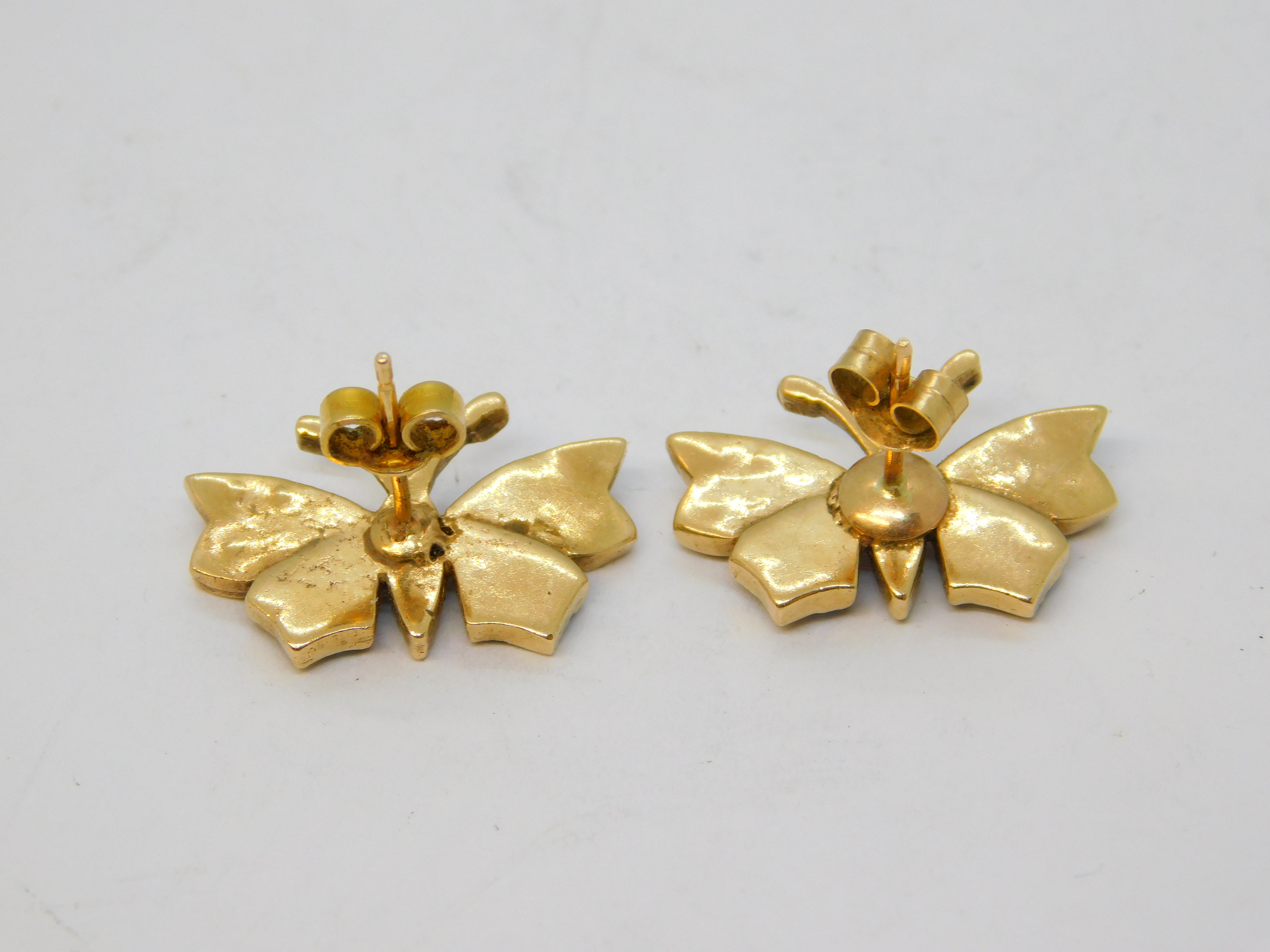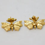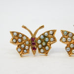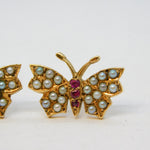 Victorian 9ct Yellow Gold, Seed Pearl & Ruby Butterfly Stud Earrings Antique