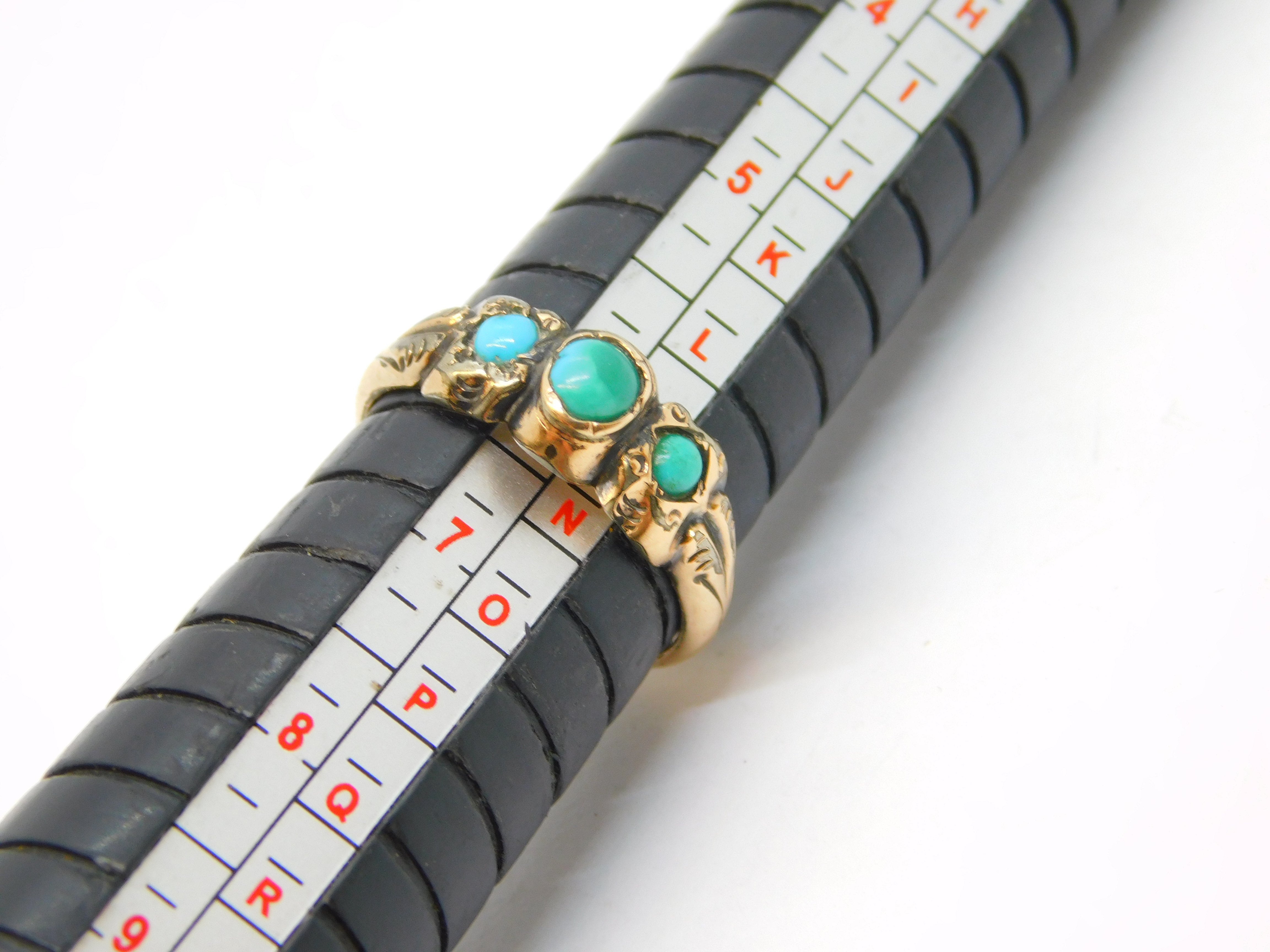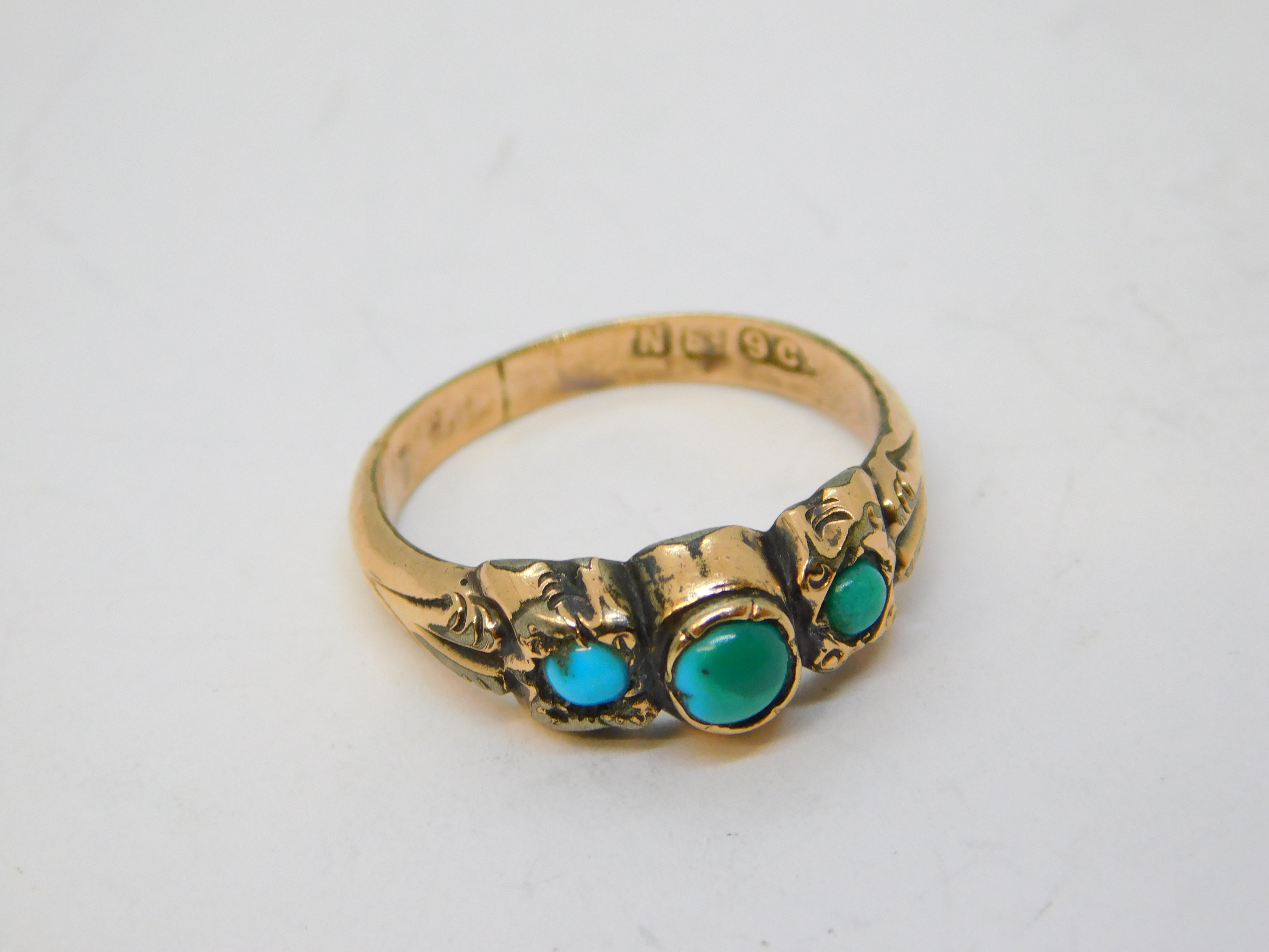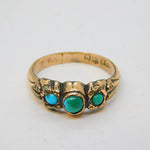 Victorian 9ct Yellow Gold & Three-Stone Turquoise Dress Ring Antique c1890