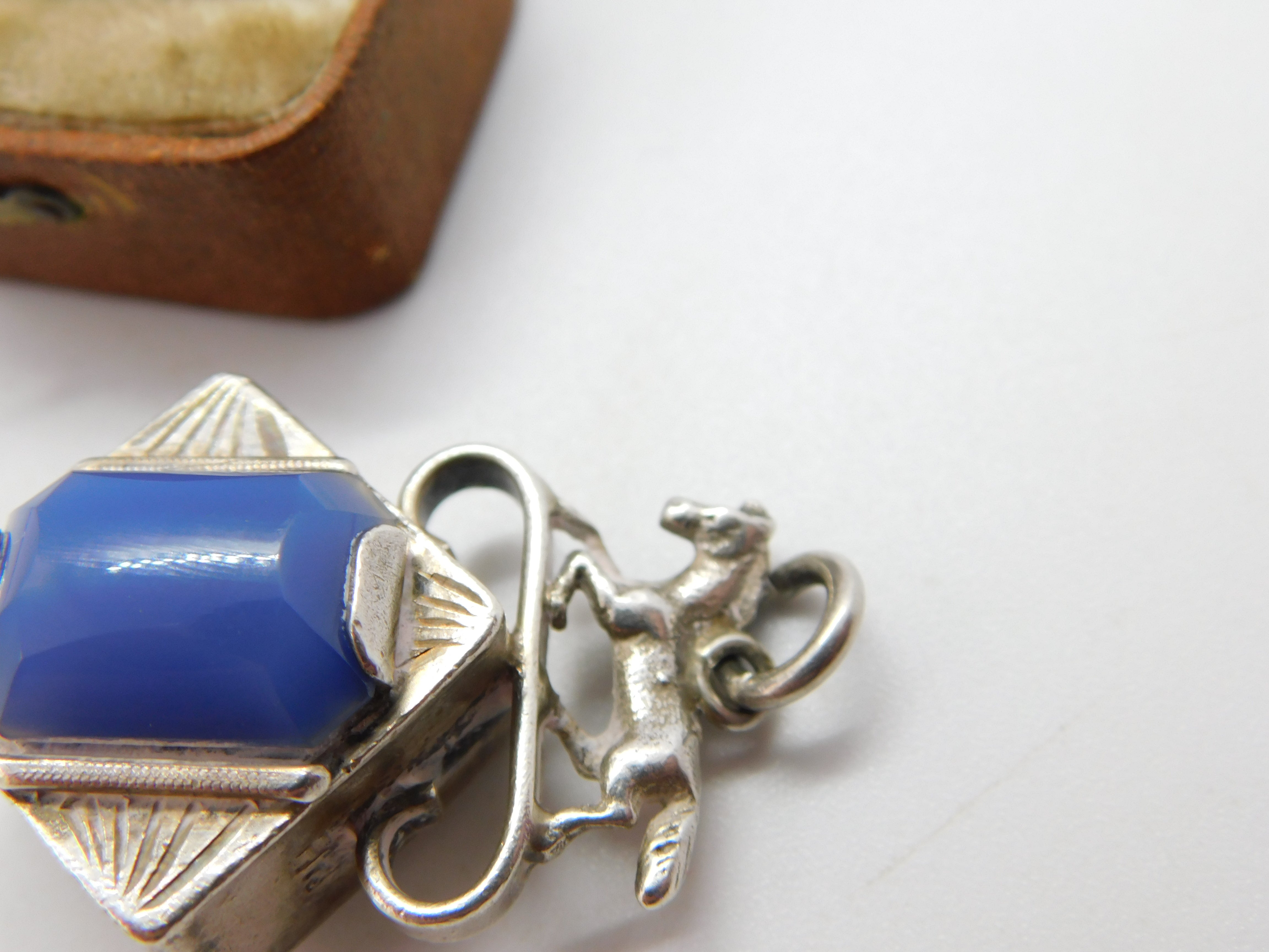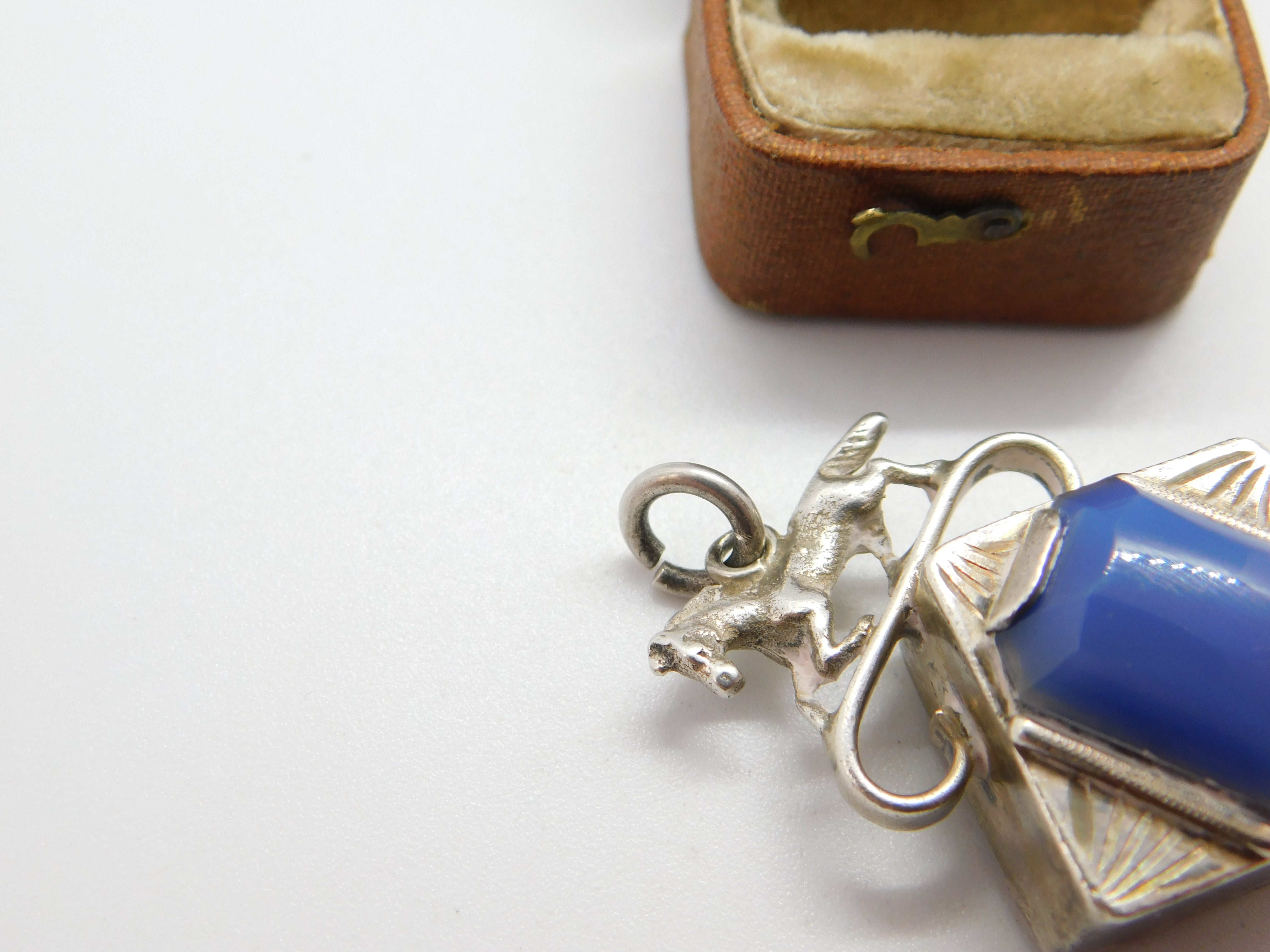 Victorian Australian Large Sterling Silver Horse & Blue Hardstone Pendant c1890