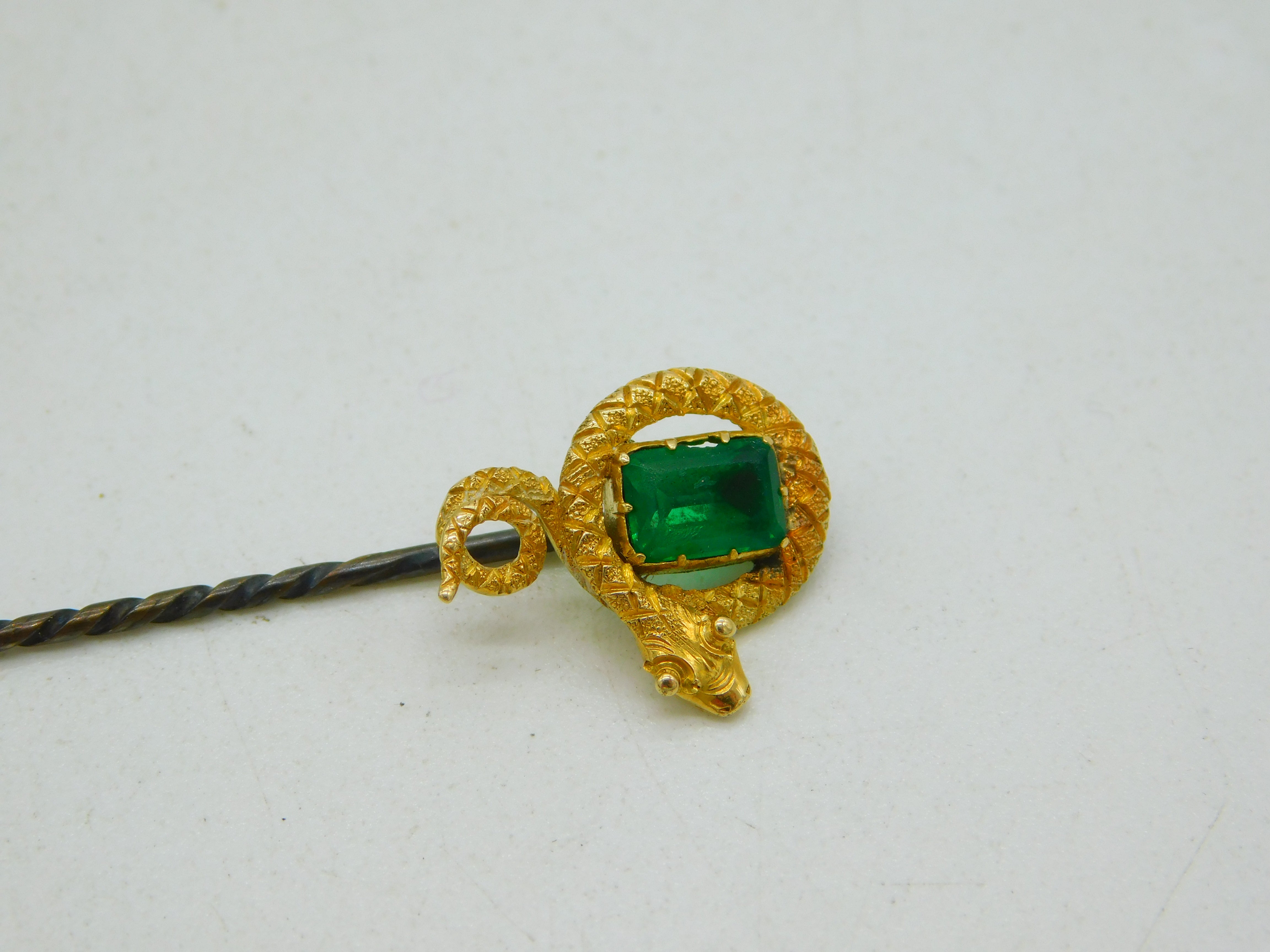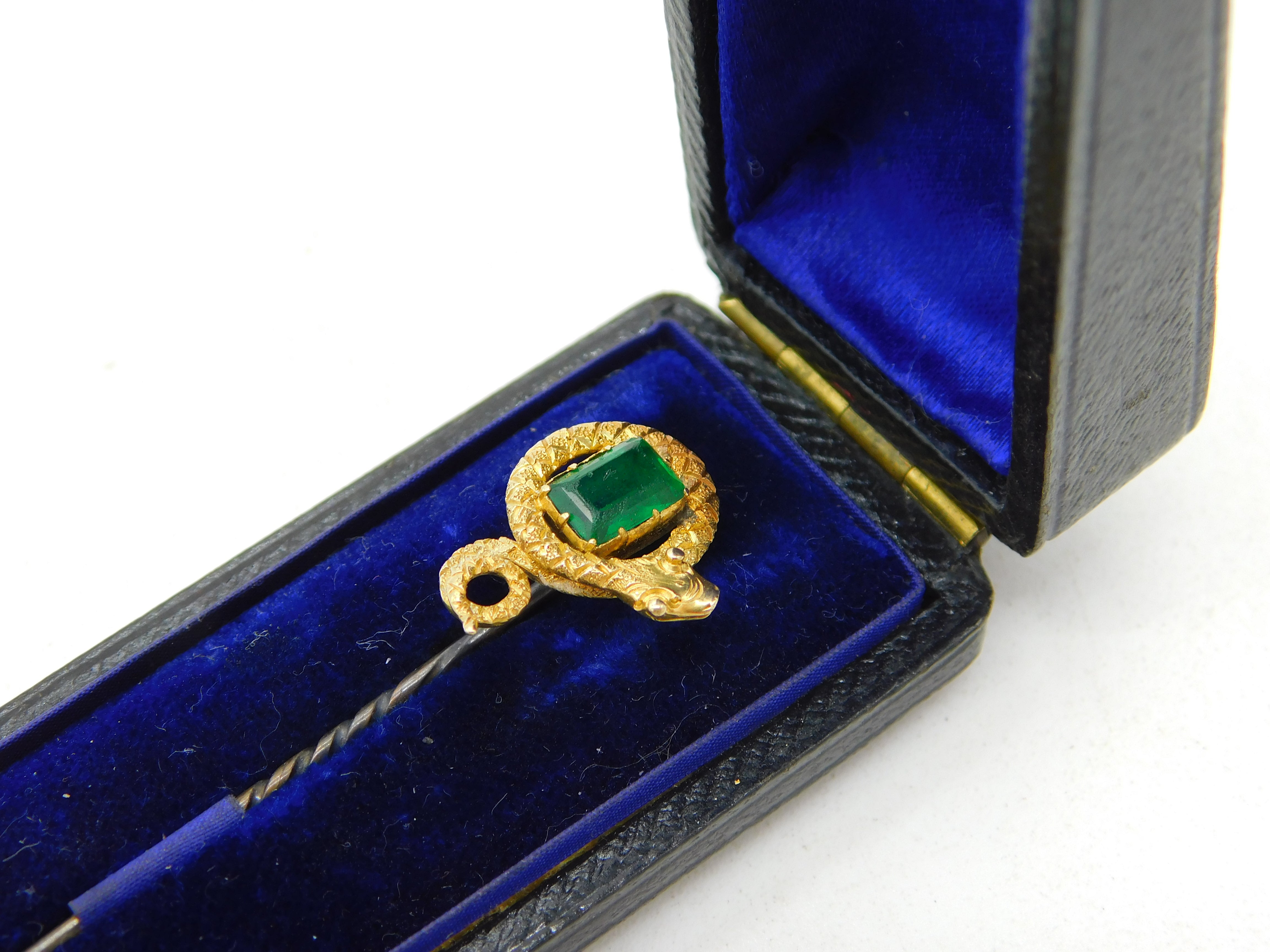 Victorian 18ct Gold Emerald Snake Stick Pin Jewellery