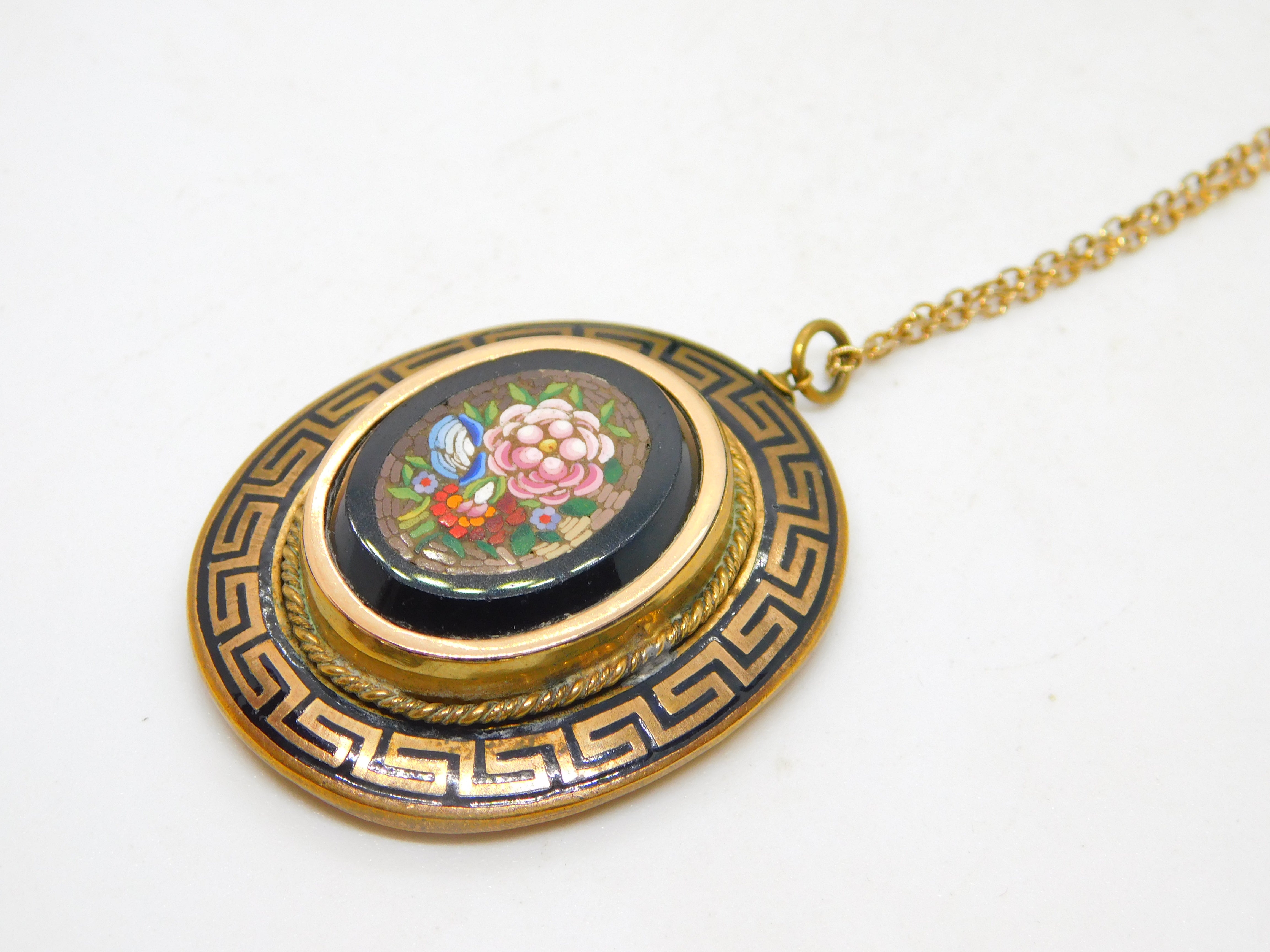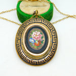 Victorian Pinchbeck Micro-Mosaic Floral Mourning Pendant Necklace Antique c1860