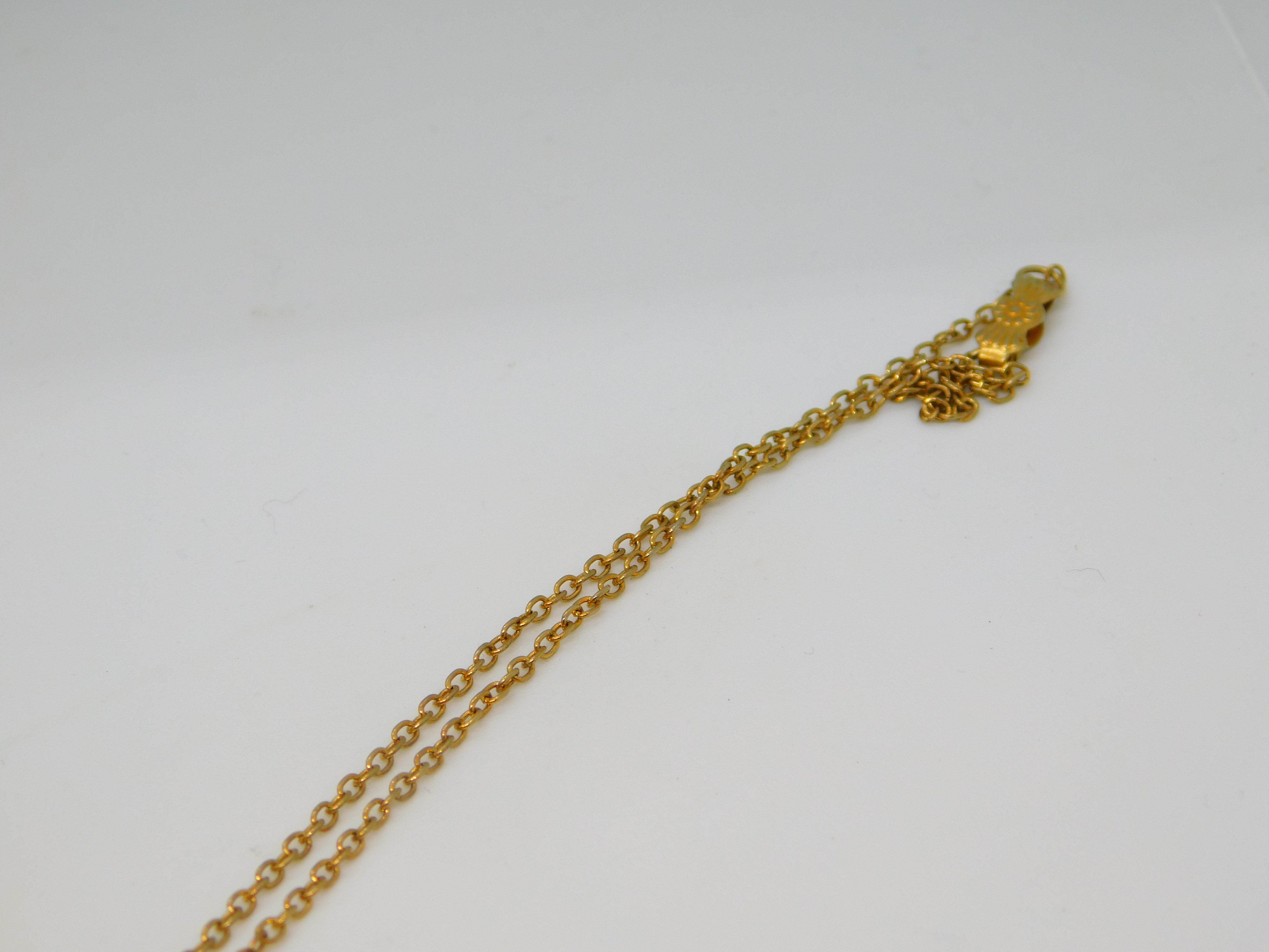 Dimensions of Pendant: 5 cm  (length)  x 3.6 cm (width). 38 cm (chain length).