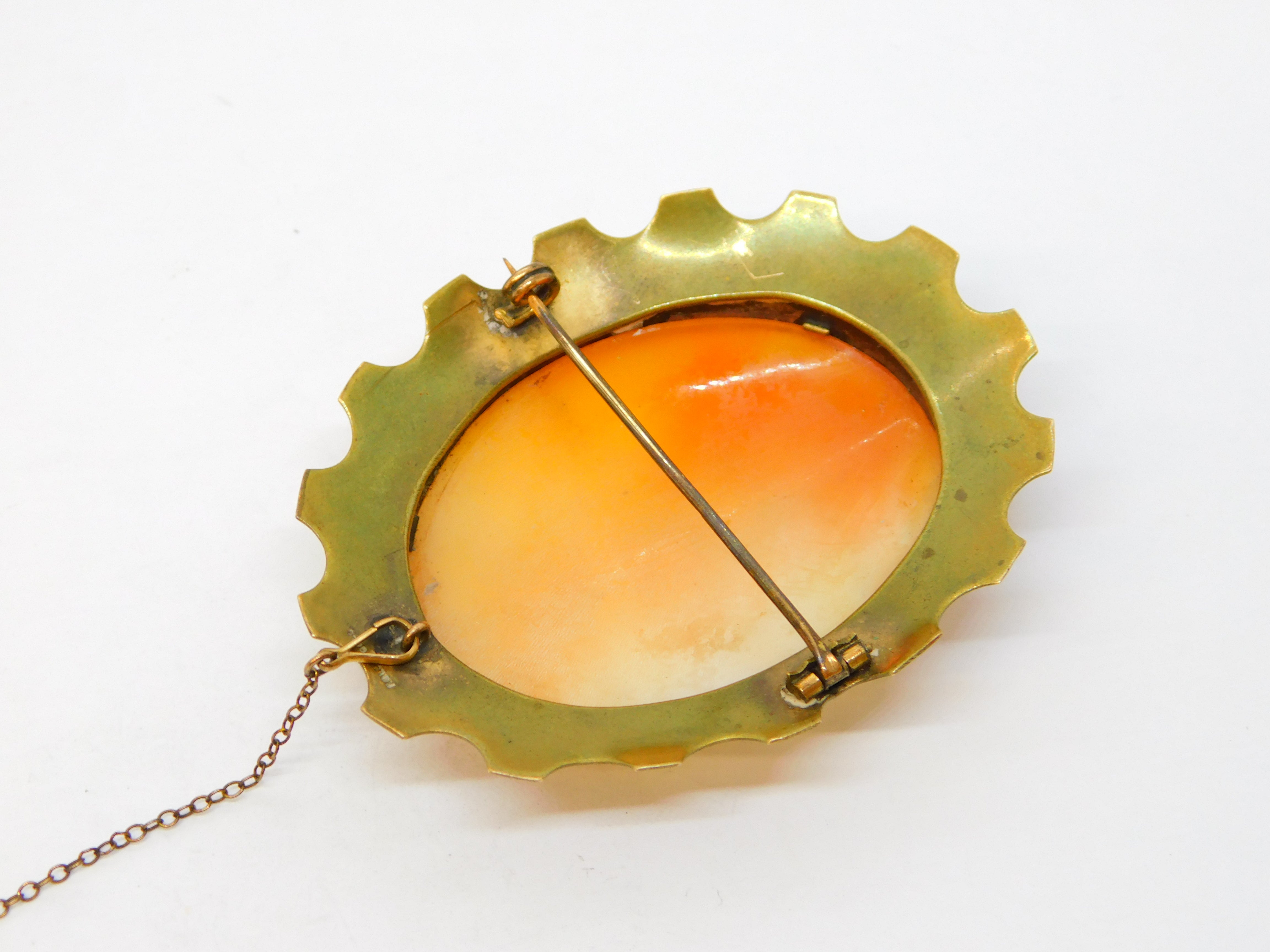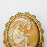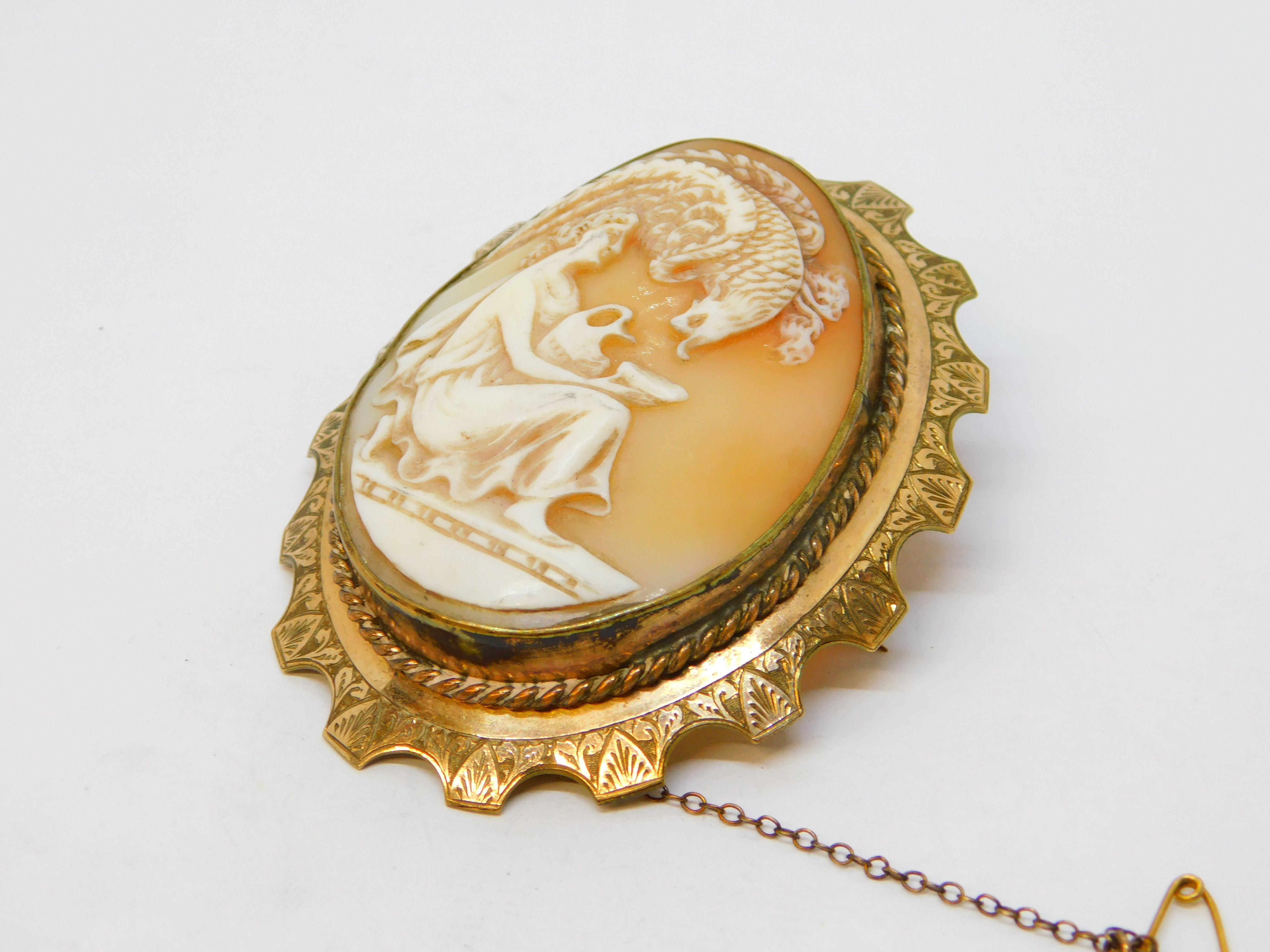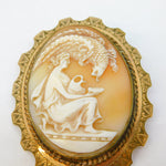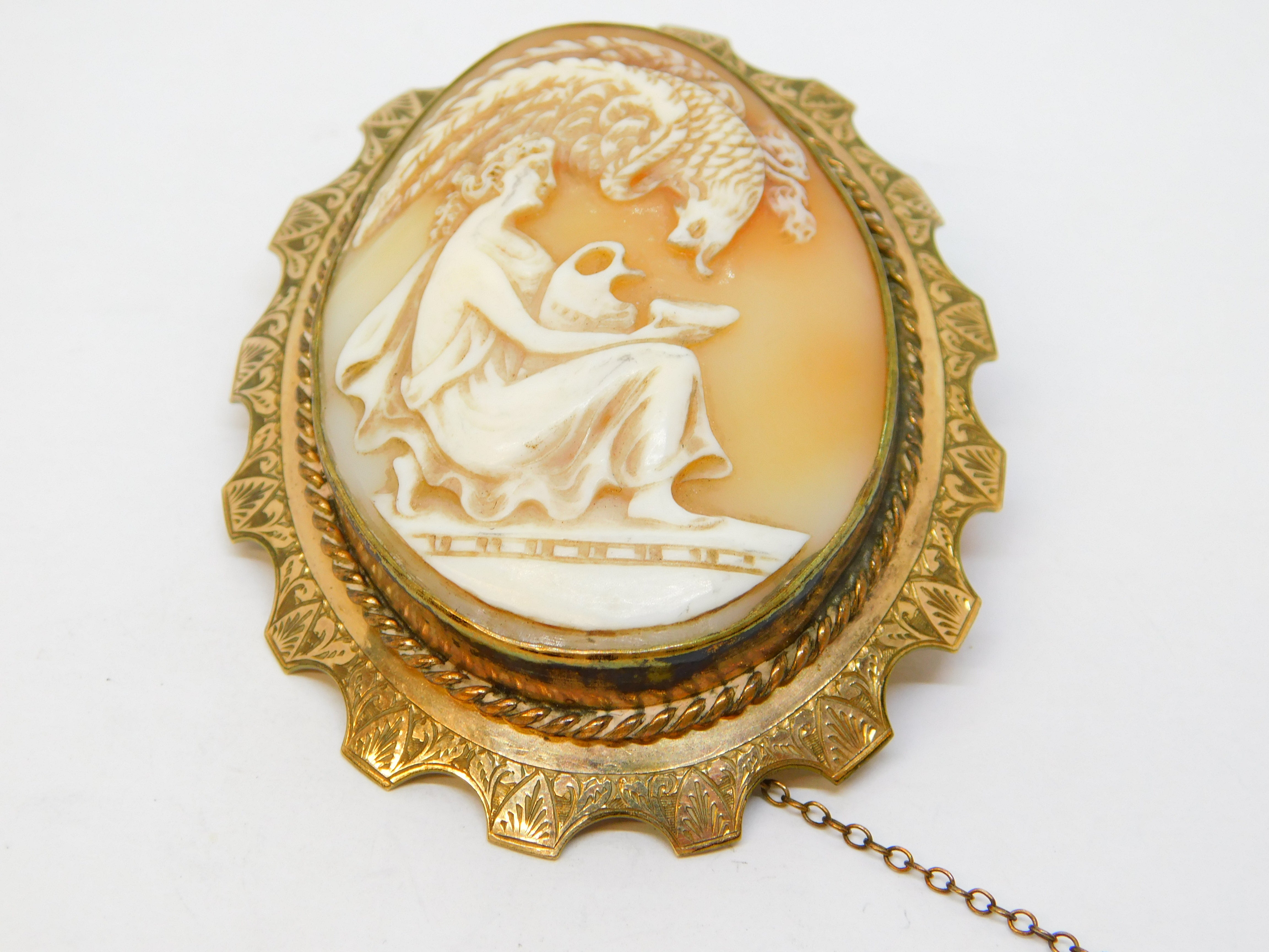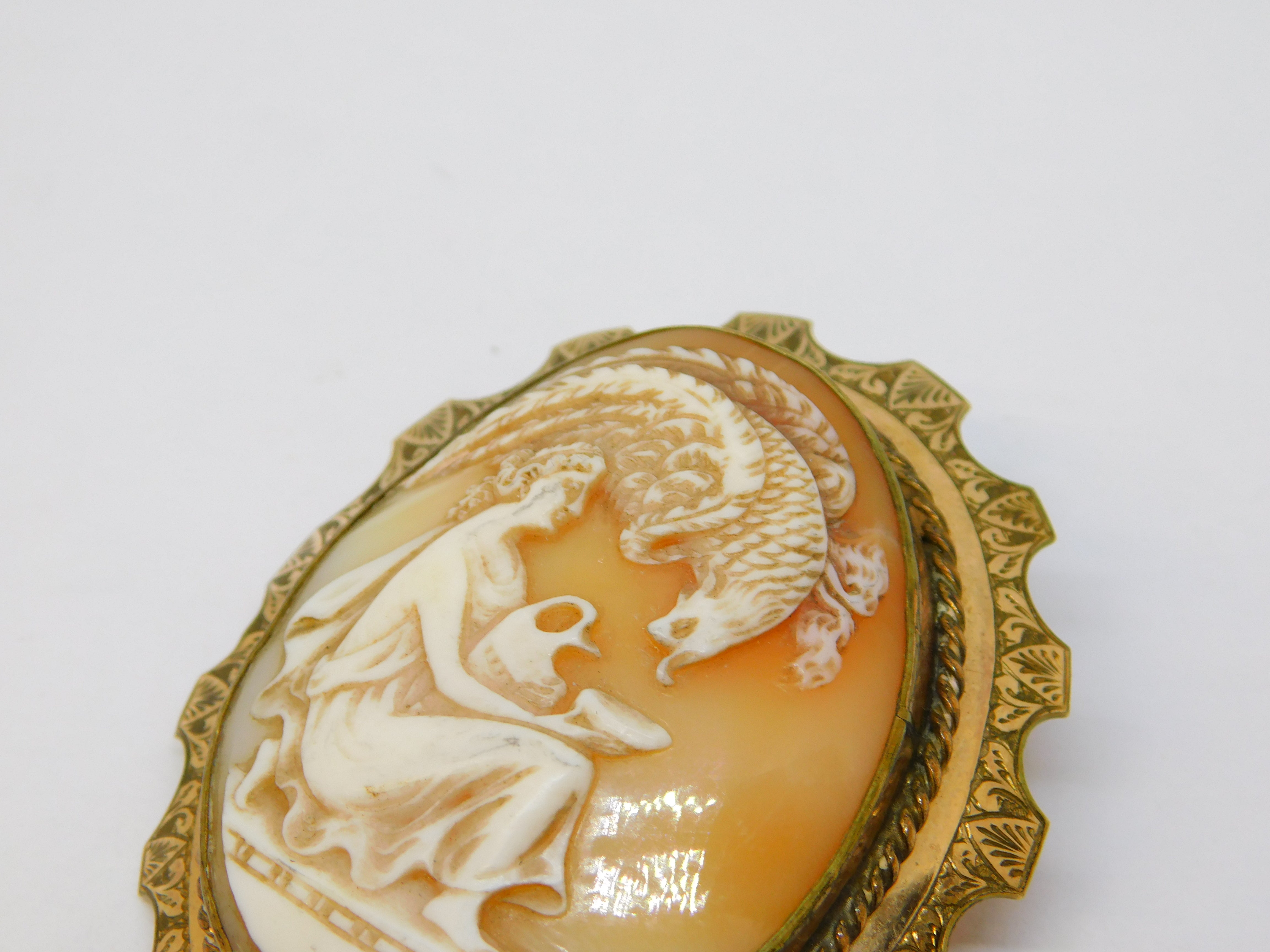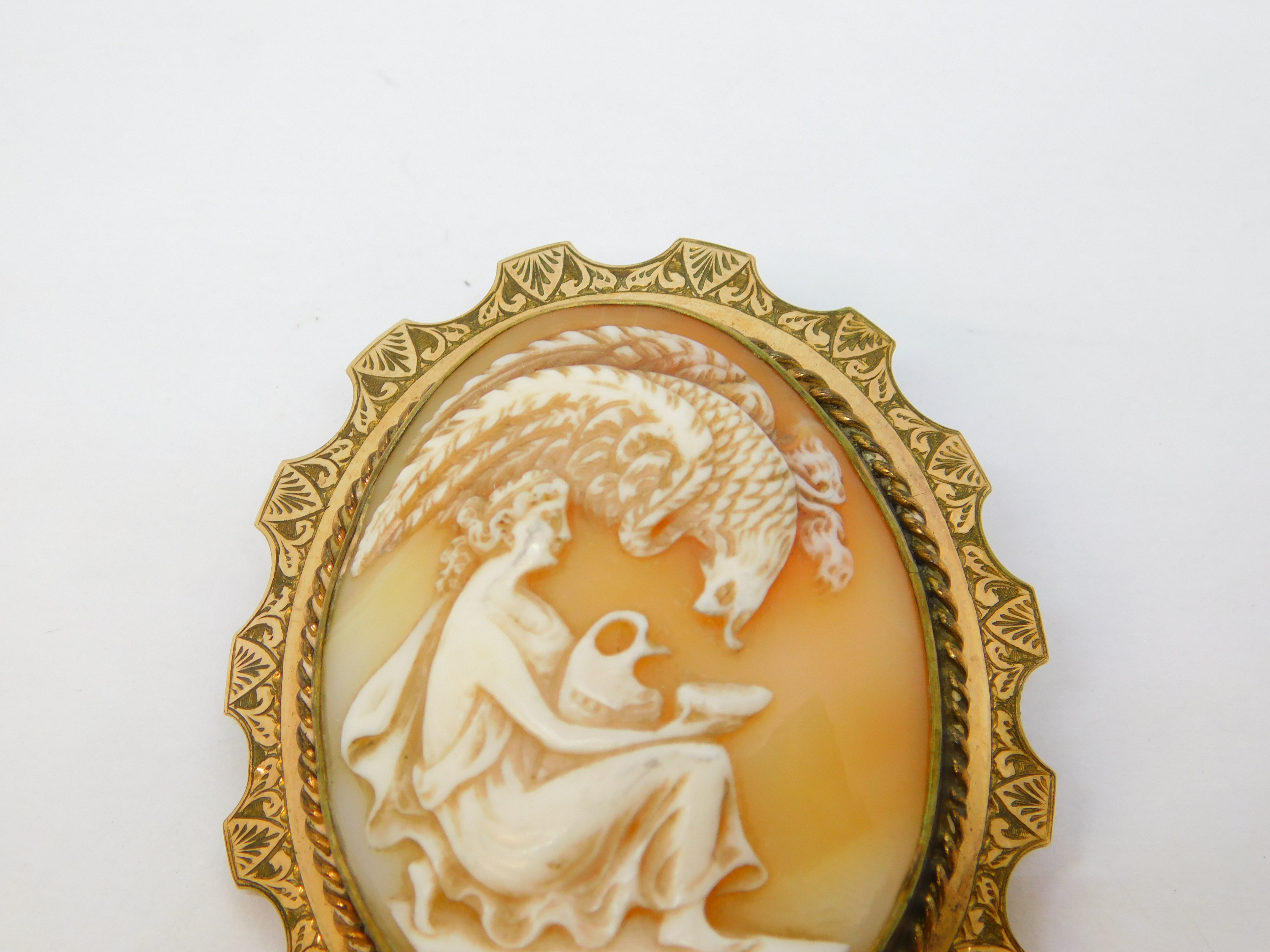 Victorian Rolled Gold Carved Shell Hebe & the Eagle Cameo Brooch Antique c1860