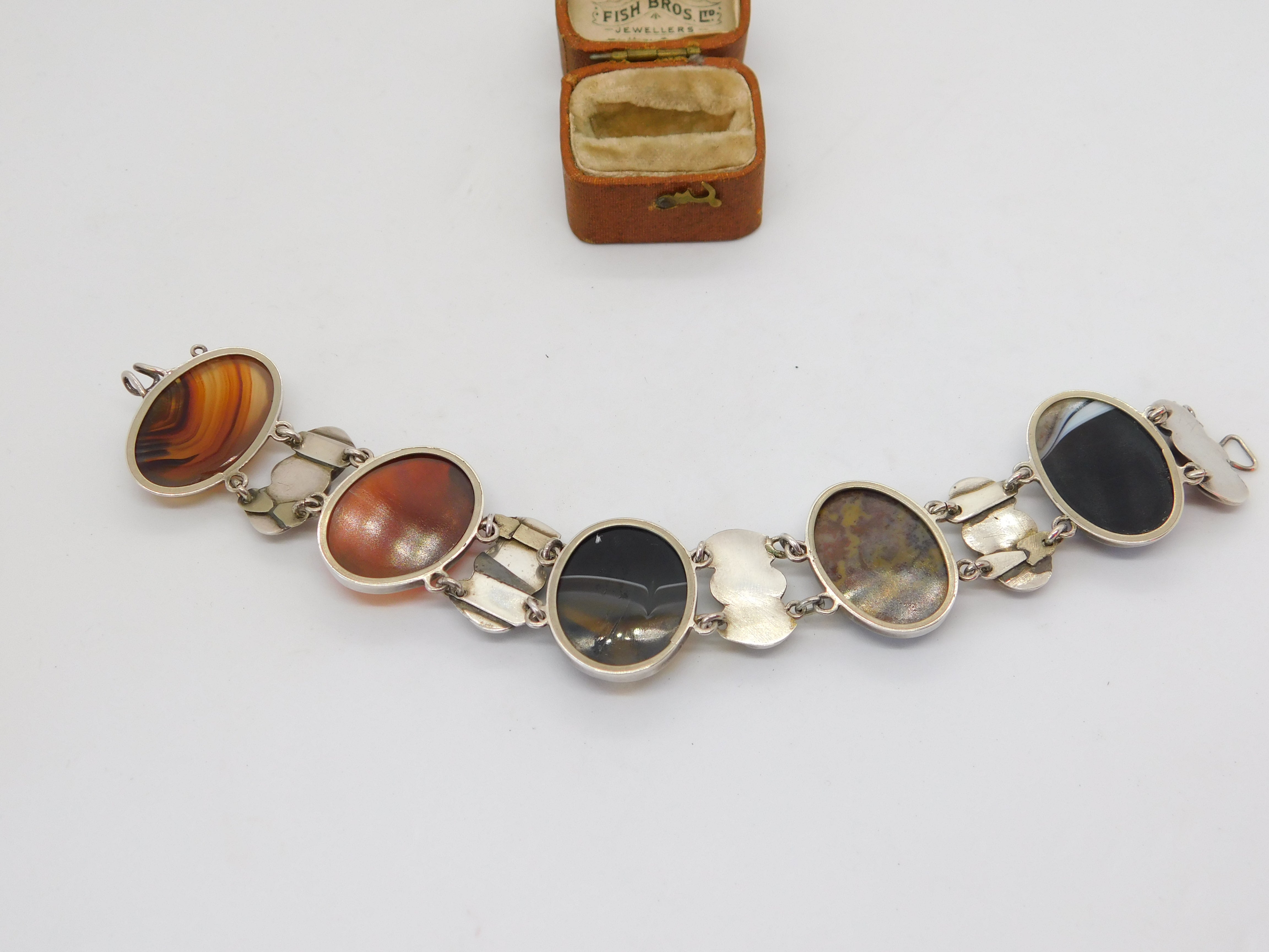 Victorian Scottish Sterling Silver Cabochon Agate Panel Bracelet c1860 Antique
