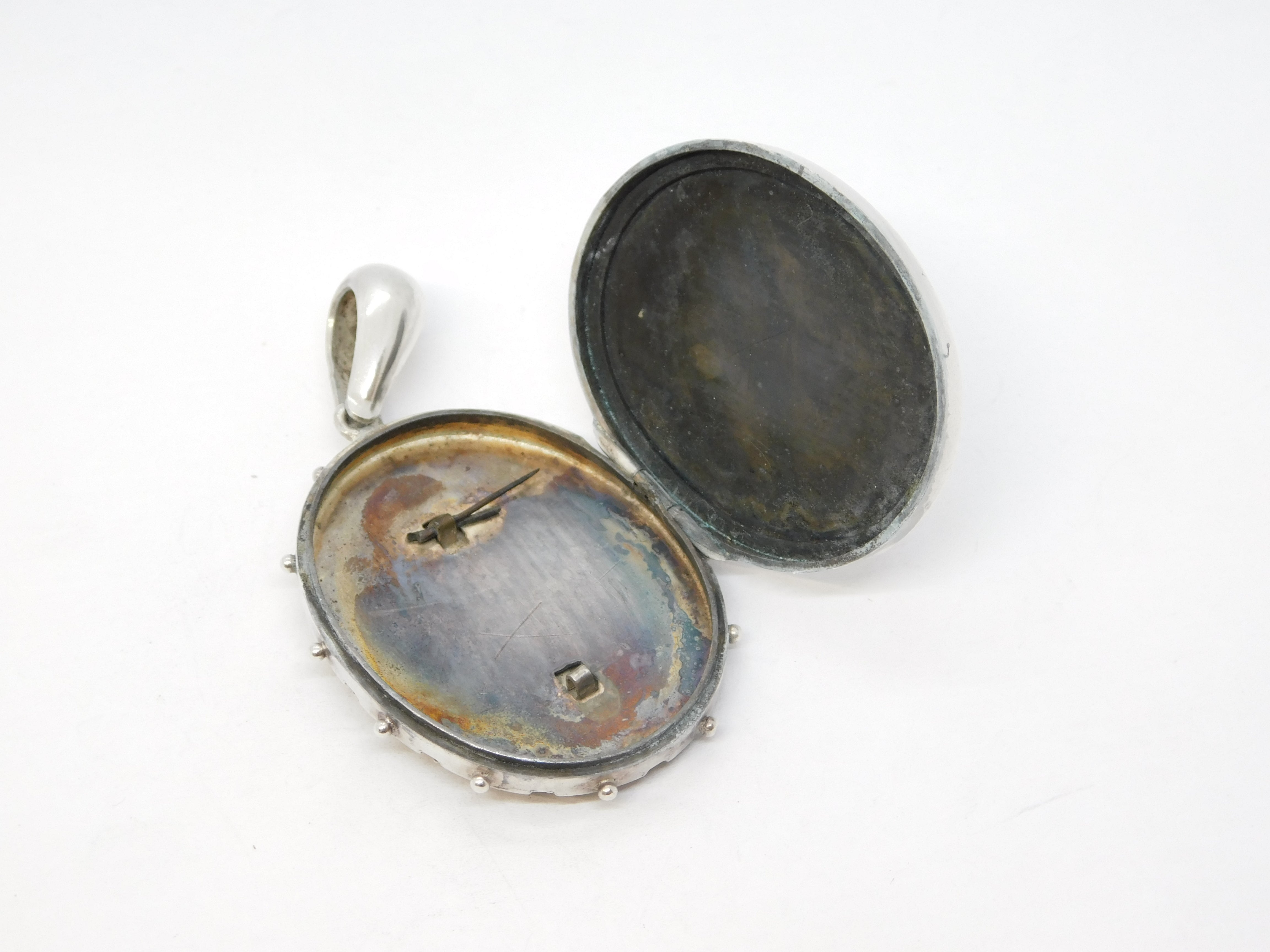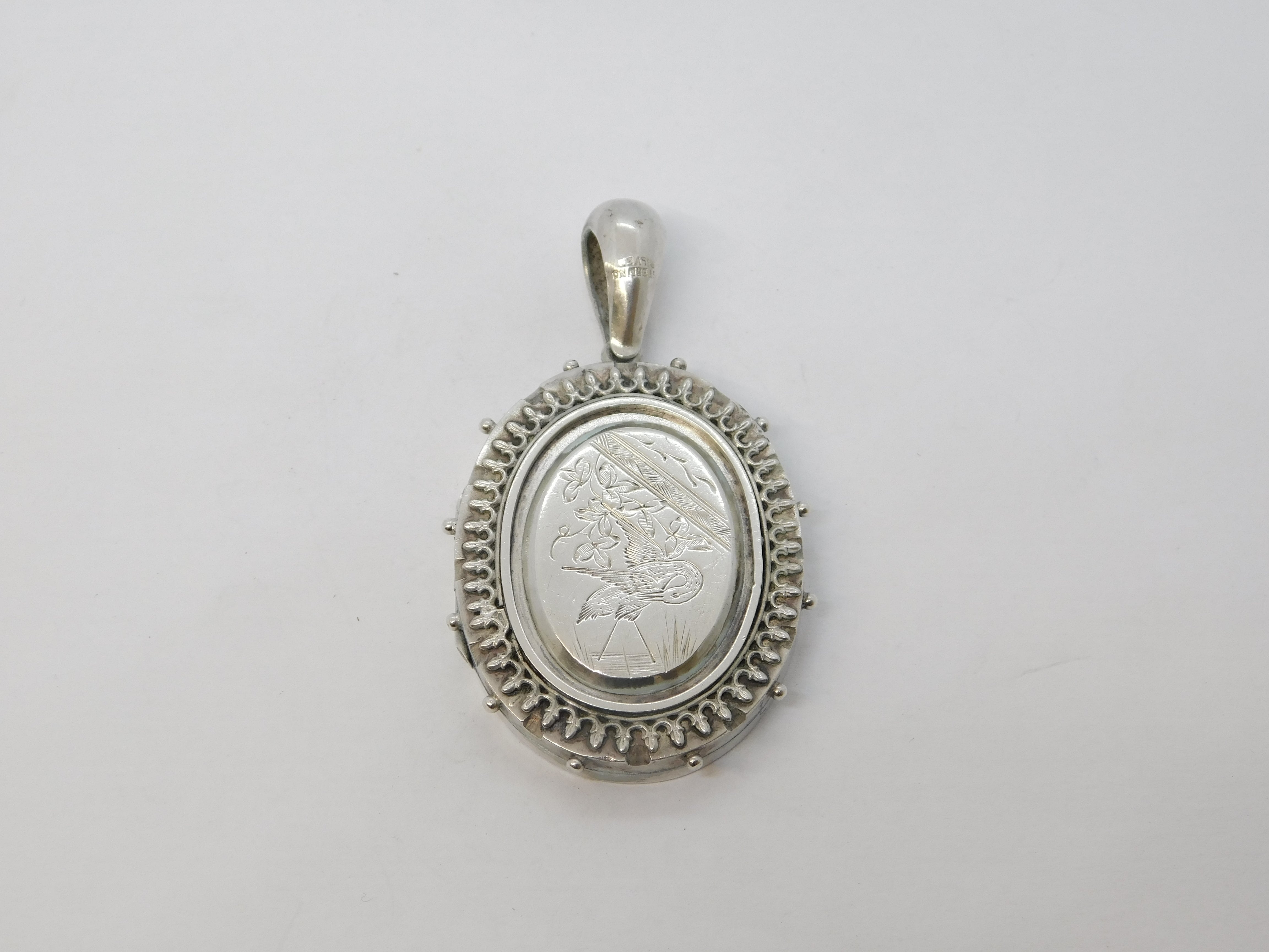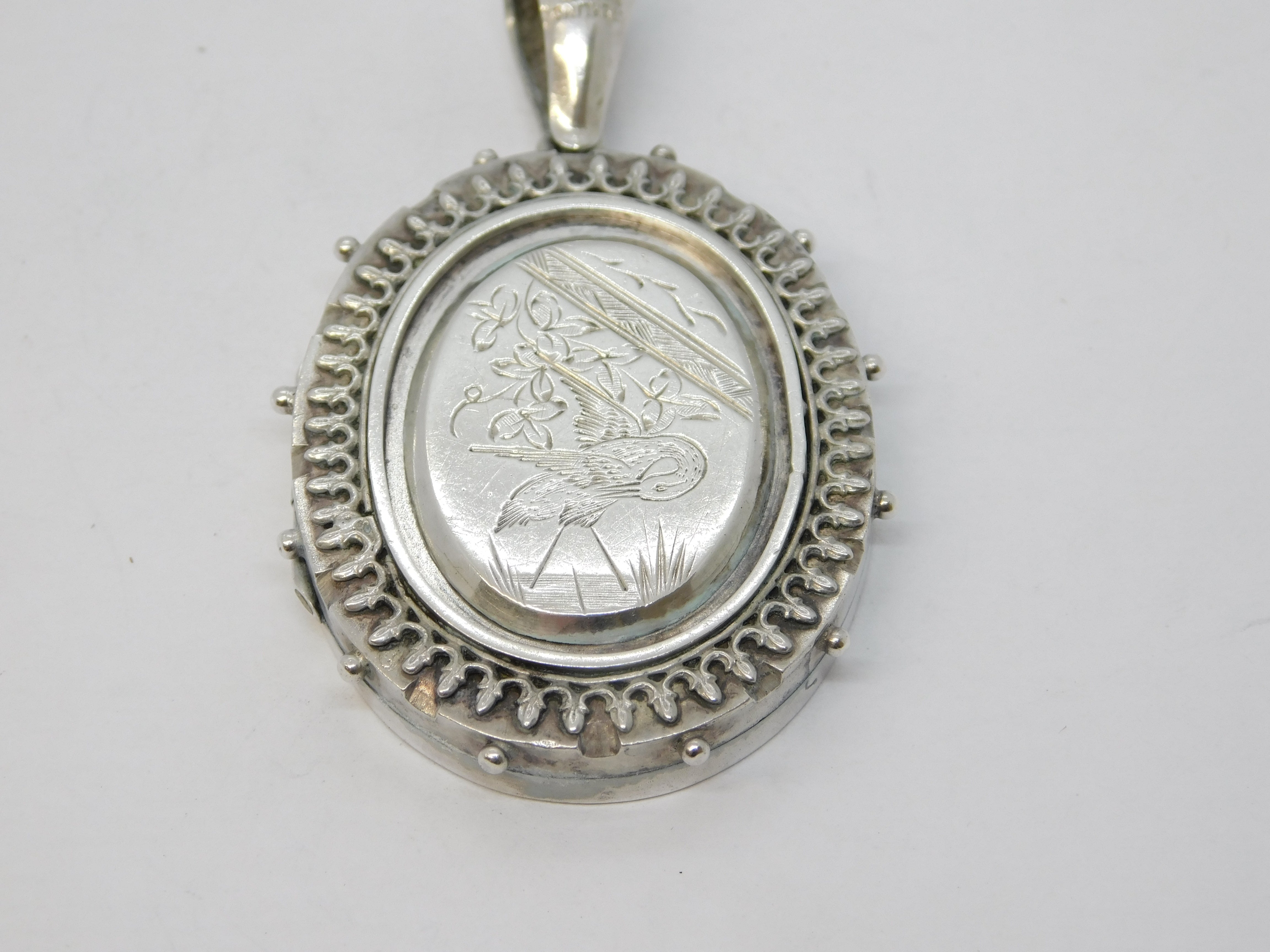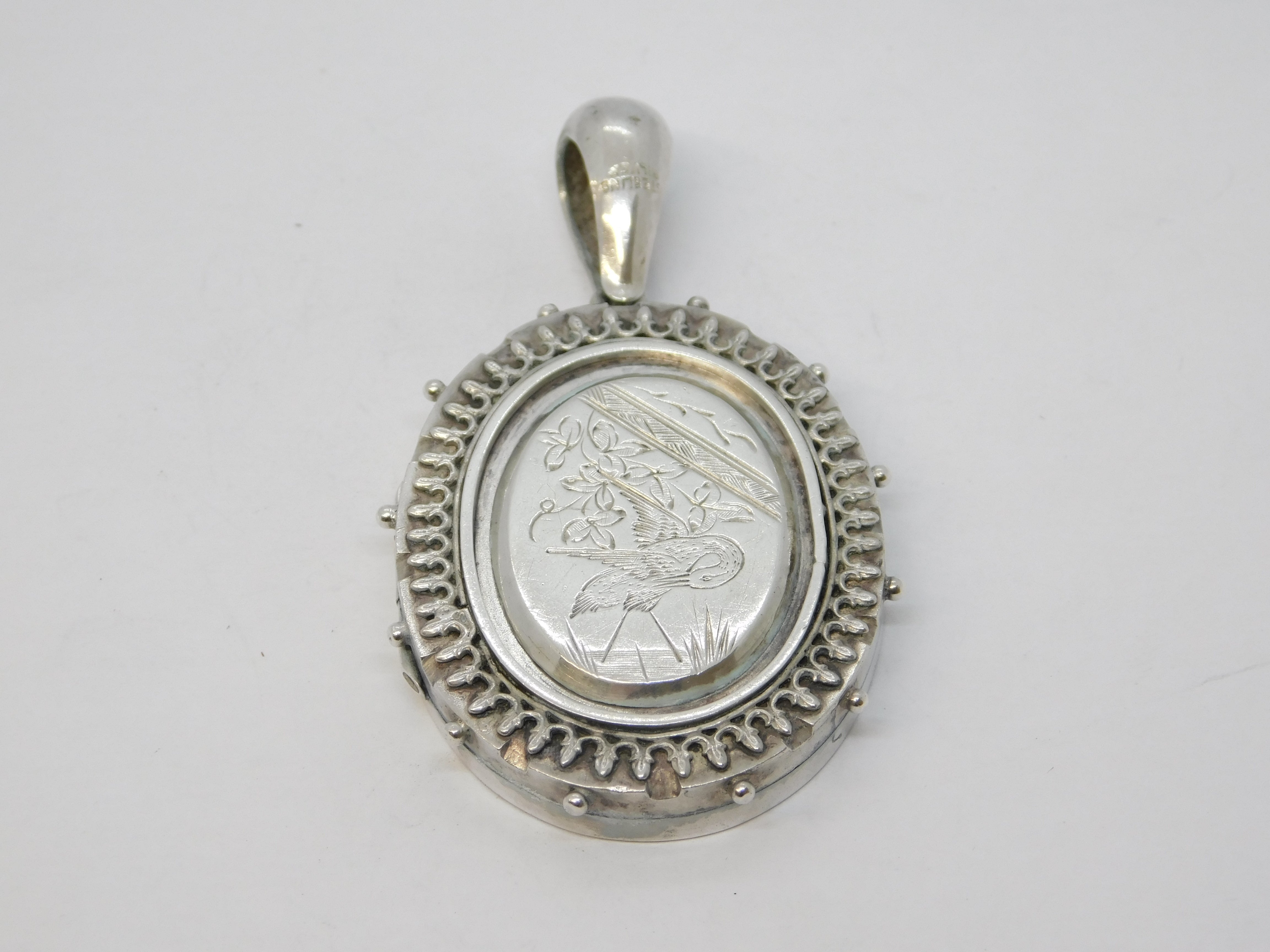 Victorian Sterling Silver Aesthetic Leaf & Crane Sweetheart Locket Antique c1880