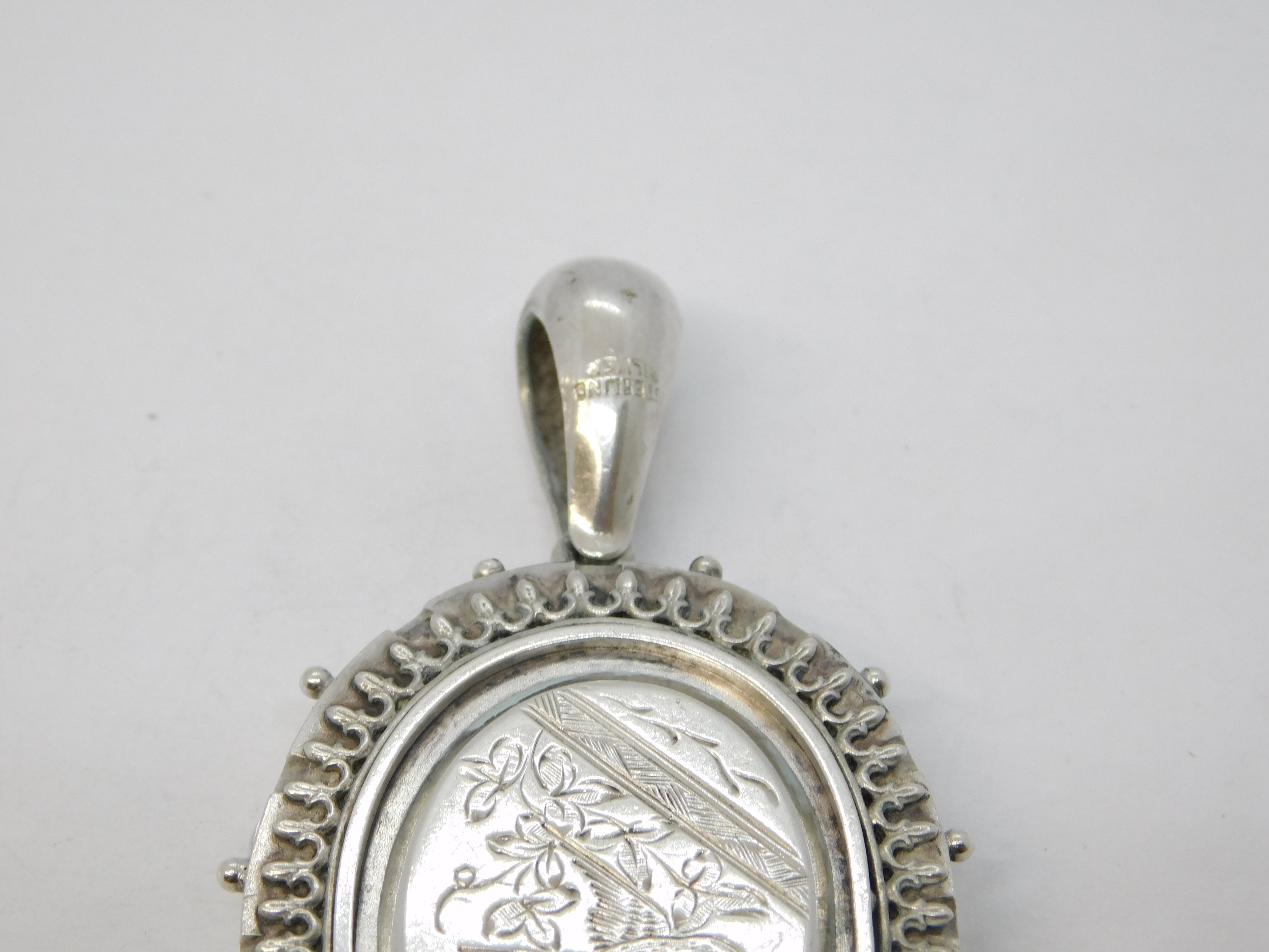 Details: A fantastic and wonderfully designed antique Victorian aesthetic movement sterling silver sweetheart locket with ivy leaf & crane patterns engraved to the reverse and dated c1880, the silver is marked to the bale and has been tested. This is a wonderful item that would make a perfect gift or addition to any collection. The BOX pictured is for PRESENTATION ONLY and is NOT included in the listings but used to frame the pictures unless specifically stated otherwise.