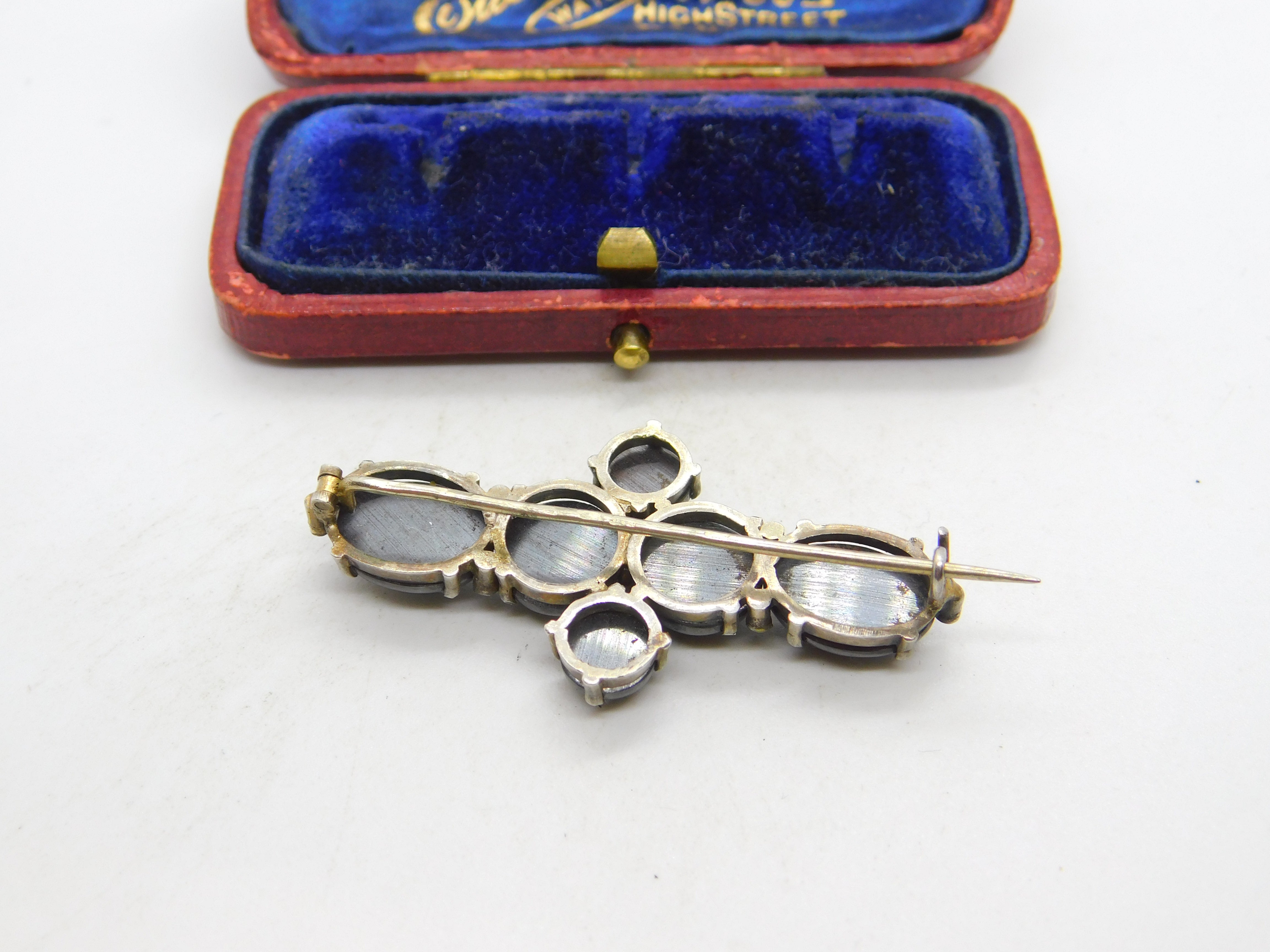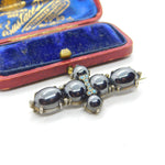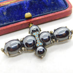 Victorian Sterling Silver Cabochon Haematite & Turquoise Cross Brooch c1890