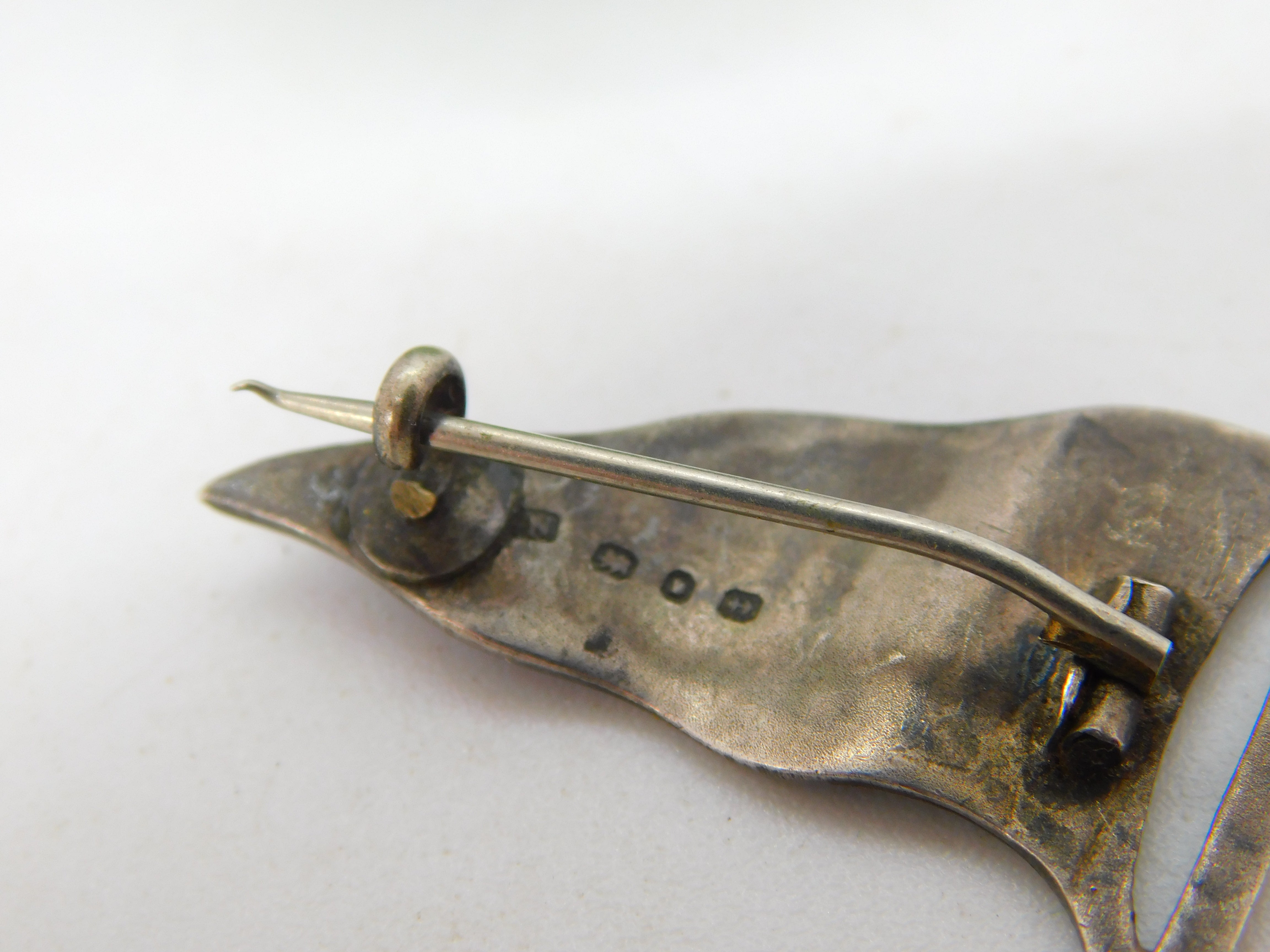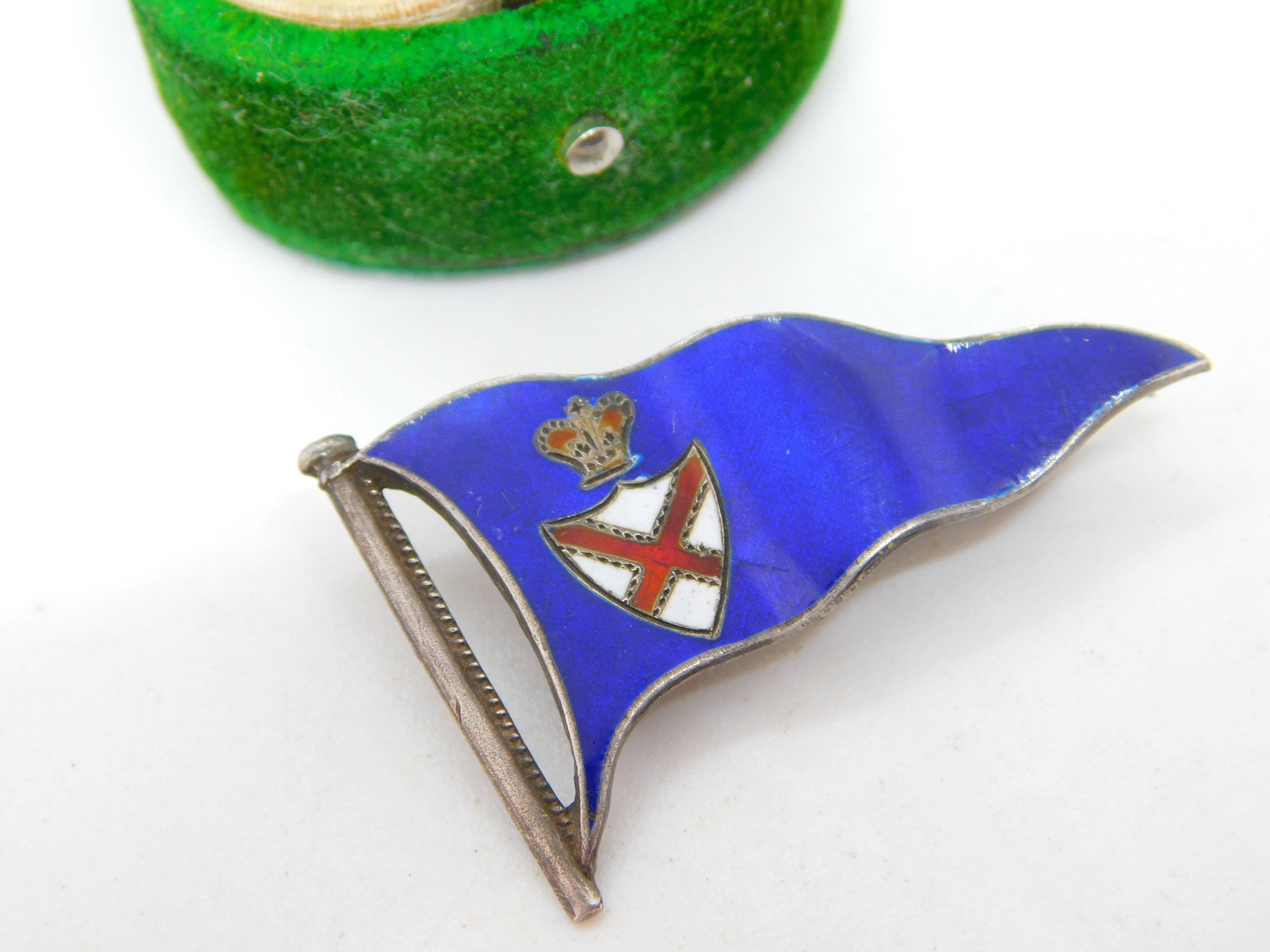 Victorian Sterling Silver & Enamel Sailing Flag Brooch Antique 1876 Birmingham